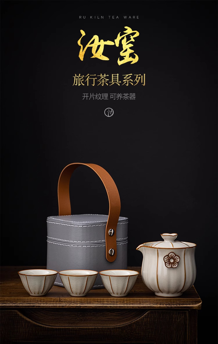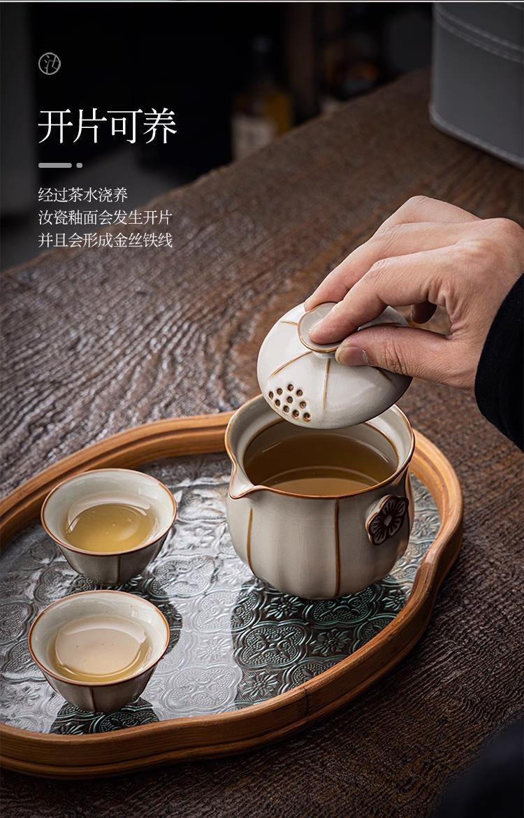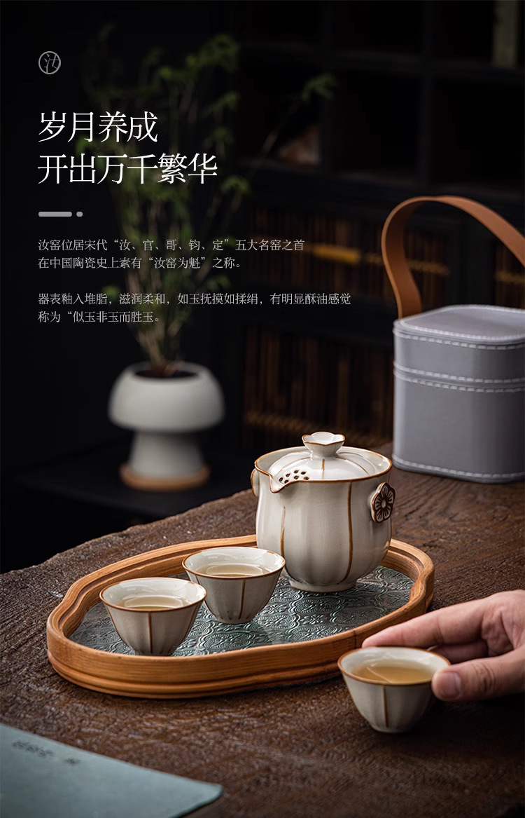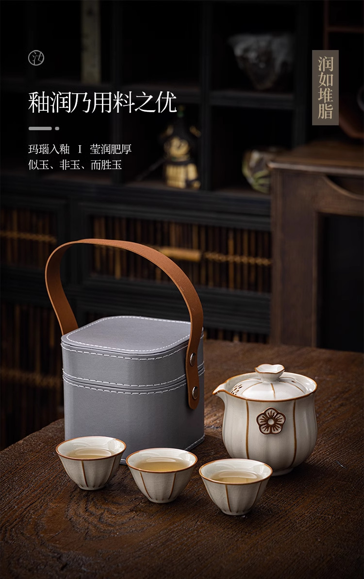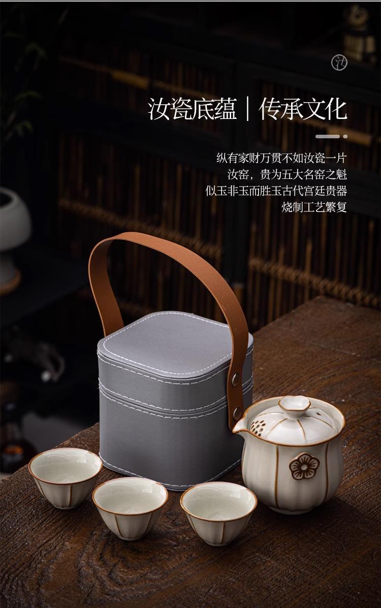 - Bộ trà du lịch Daji Mi Huang Ru Kiln Bộ trà nhỏ cầm tay pha trà ngoài trời một ấm ba cốc nhanh Bộ trà Kung Fu