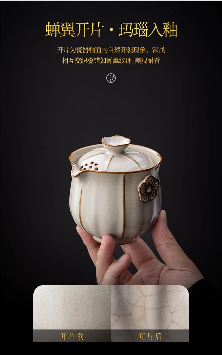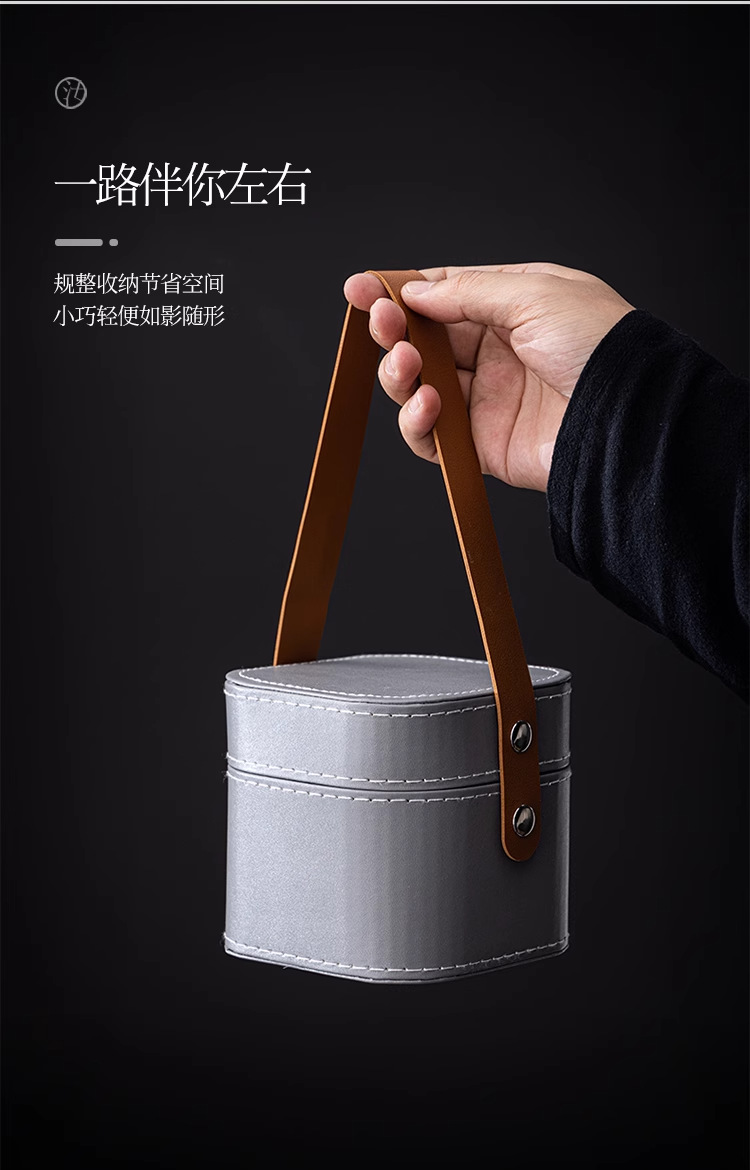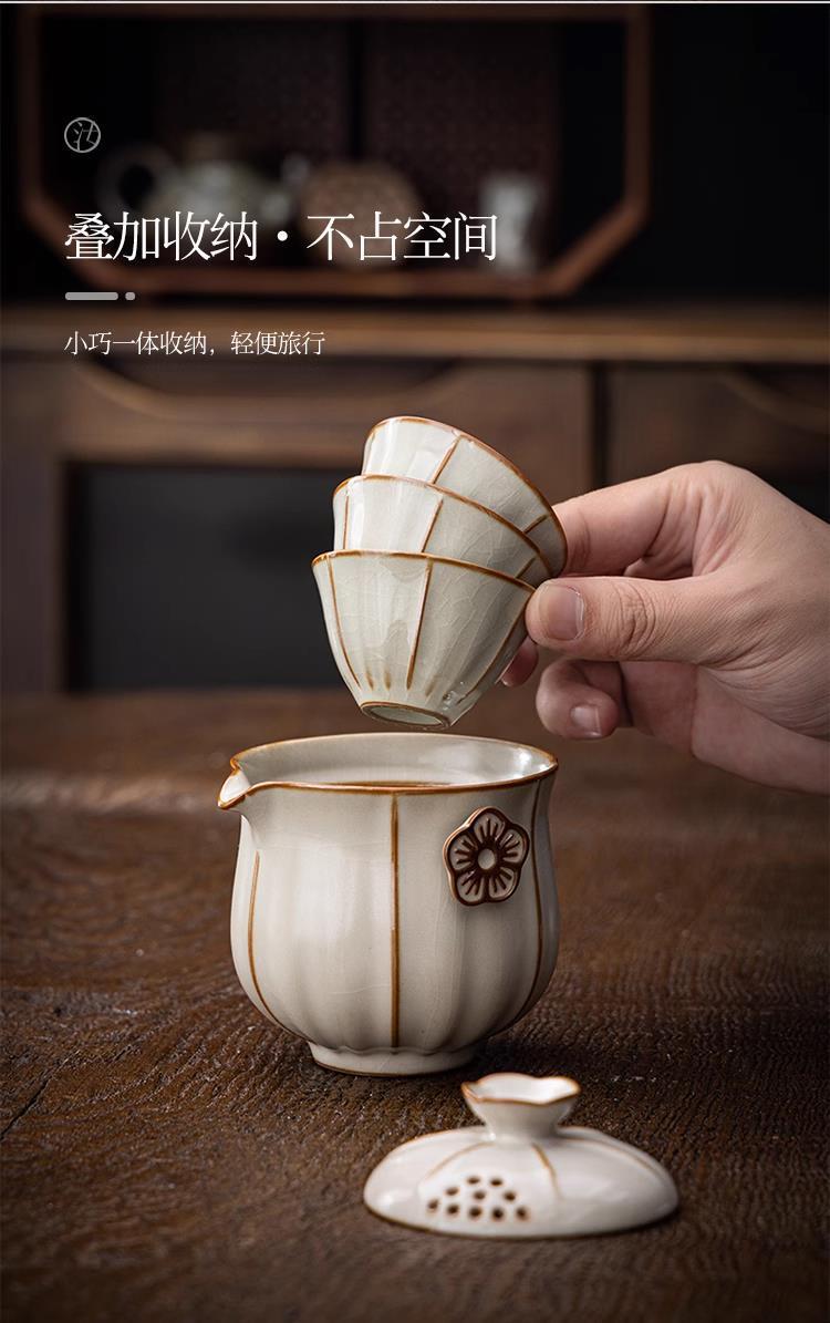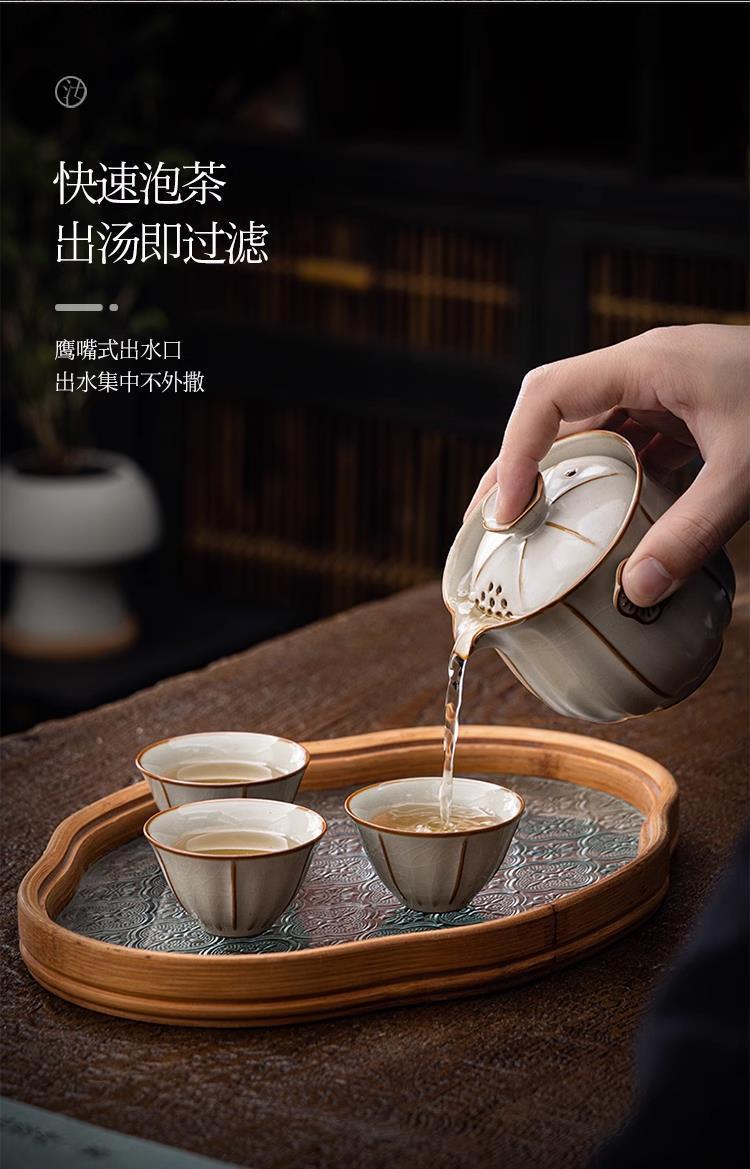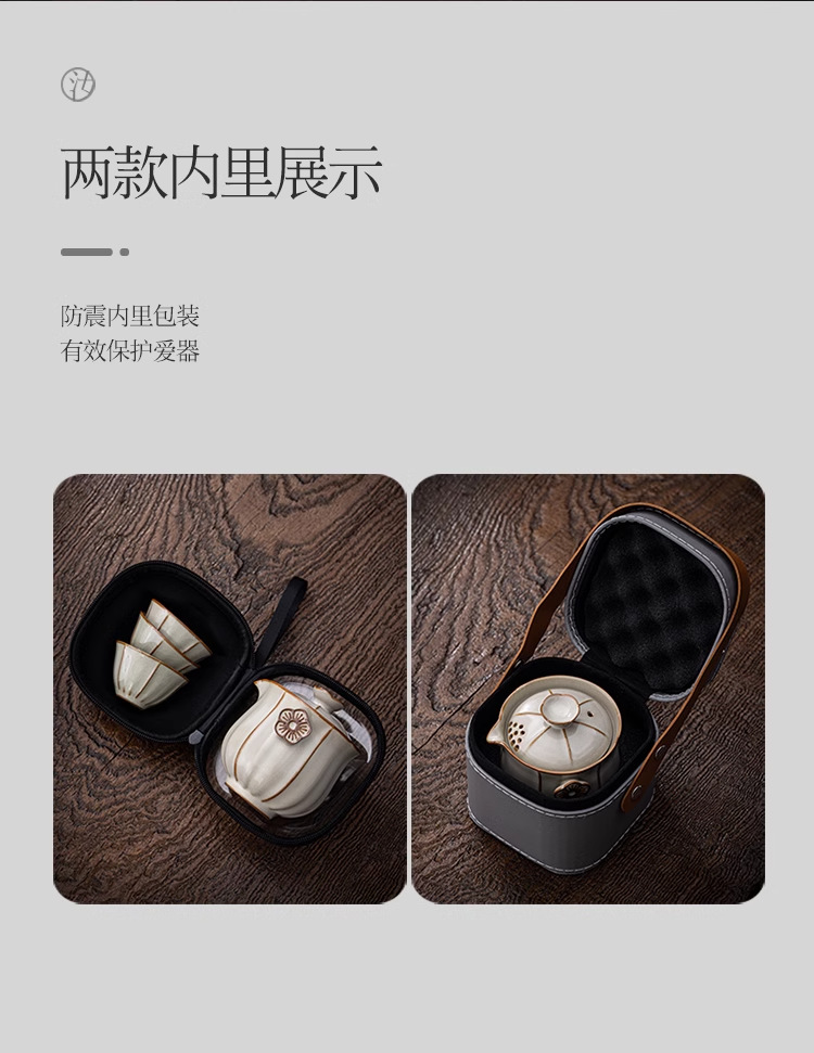 - Bộ trà du lịch Daji Mi Huang Ru Kiln Bộ trà nhỏ cầm tay pha trà ngoài trời một ấm ba cốc nhanh Bộ trà Kung Fu