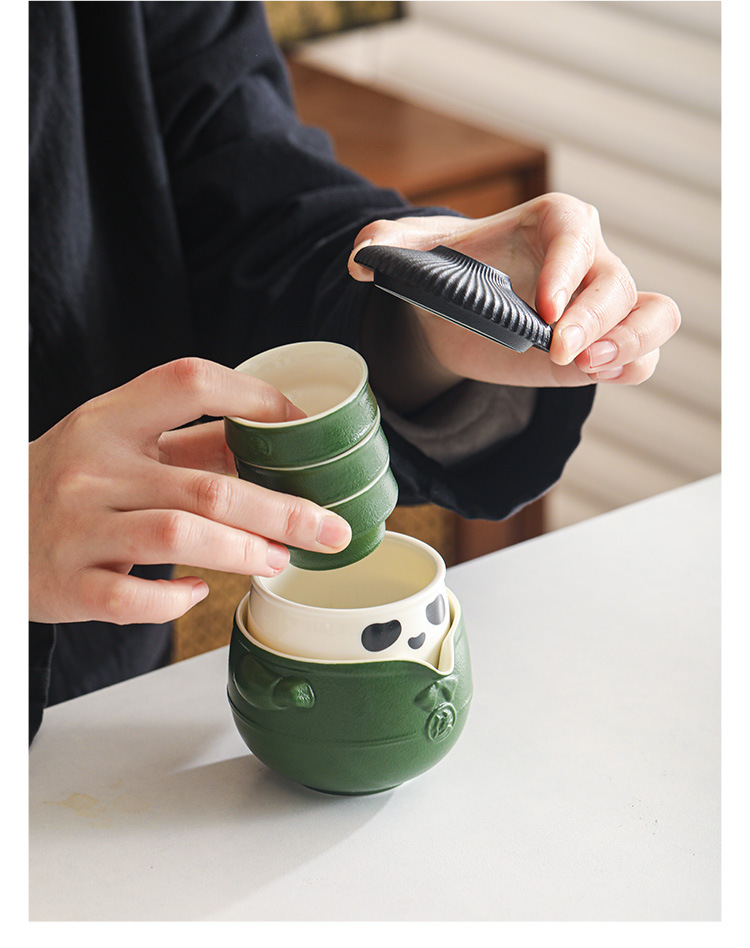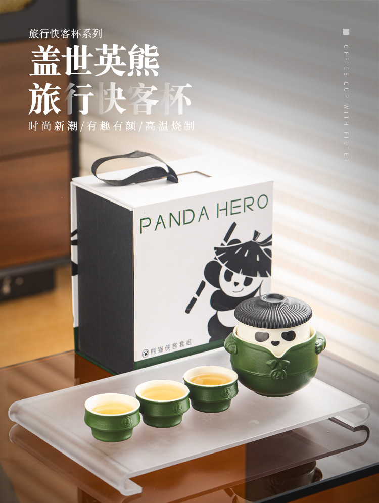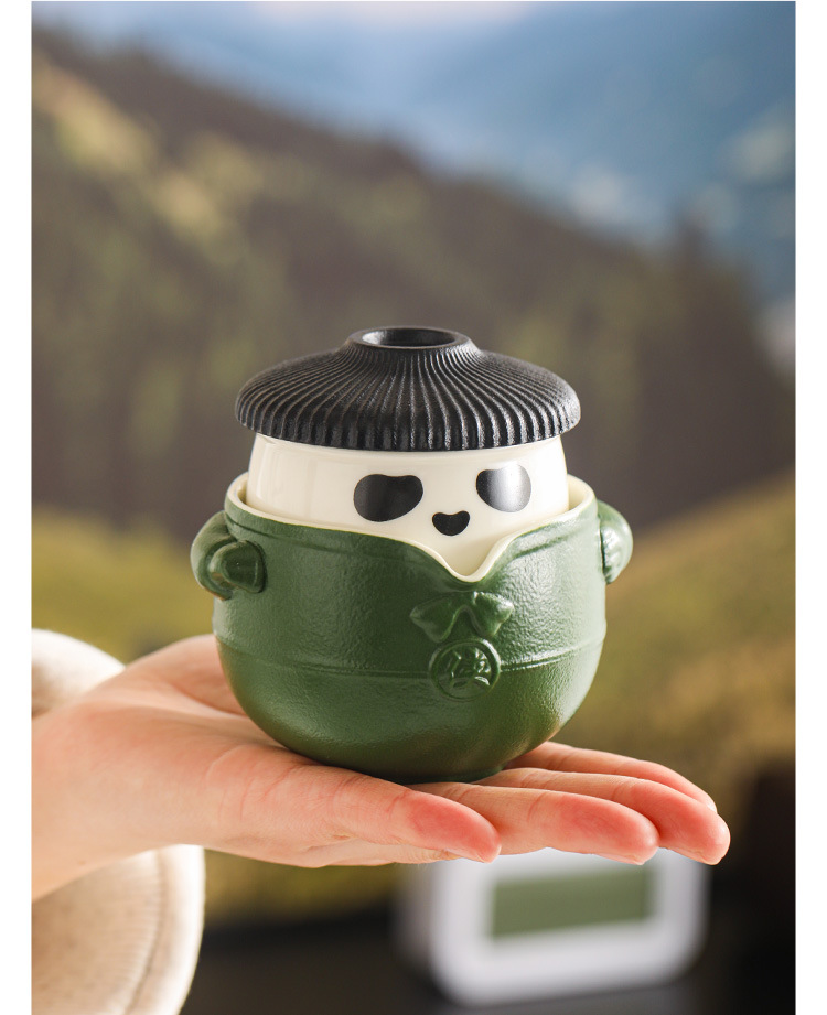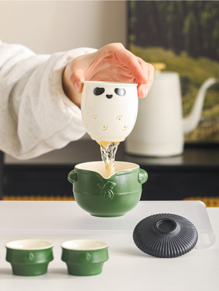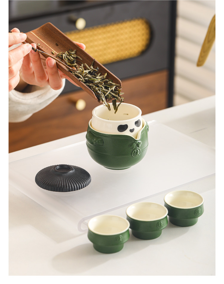 Bộ trà du lịch gấu trúc hộp quà tặng bộ trà nữ uống một người xách tay cốc pha trà ngoài trời