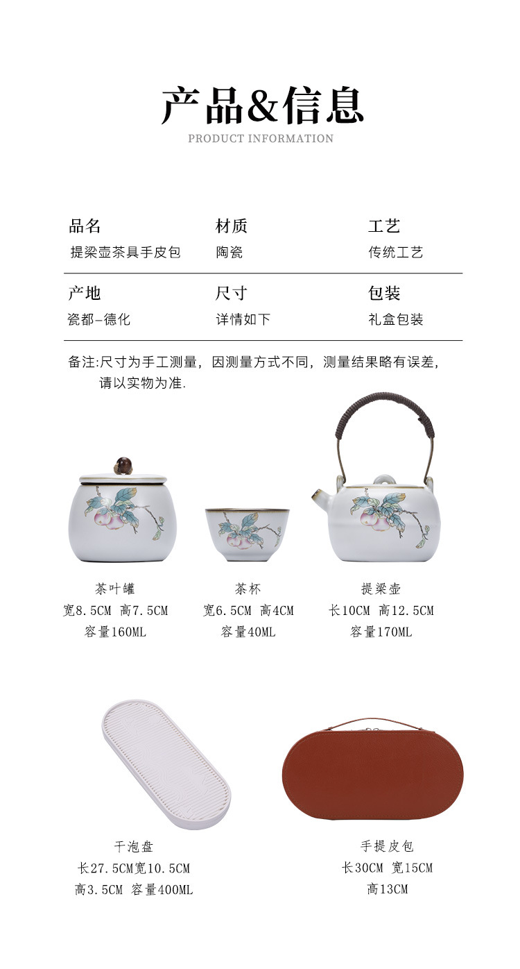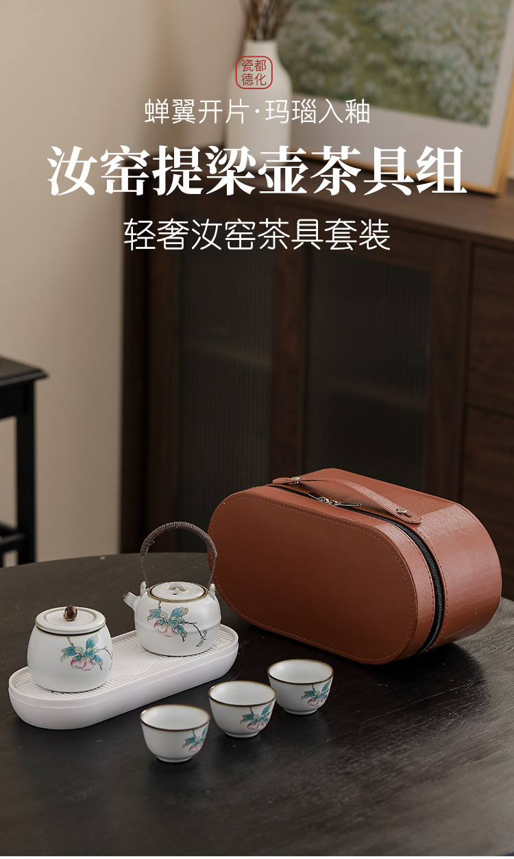 - Bộ trà du lịch gốm sứ Bộ trà Kung Fu di động cắm trại ngoài trời một ấm ba cốc