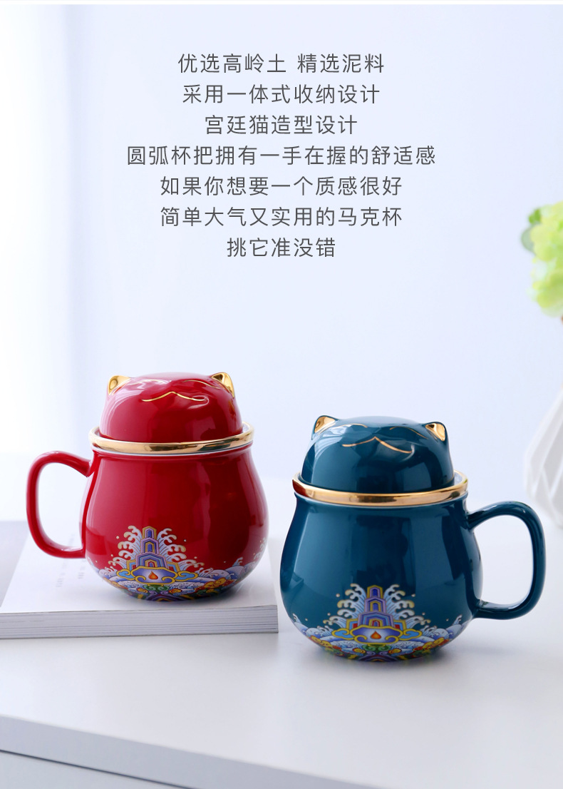 - Bộ trà du lịch gốm sứ Di động tách nước trà có nắp đậy cốc pha trà lọc văn phòng gia dụng cốc trà mèo
