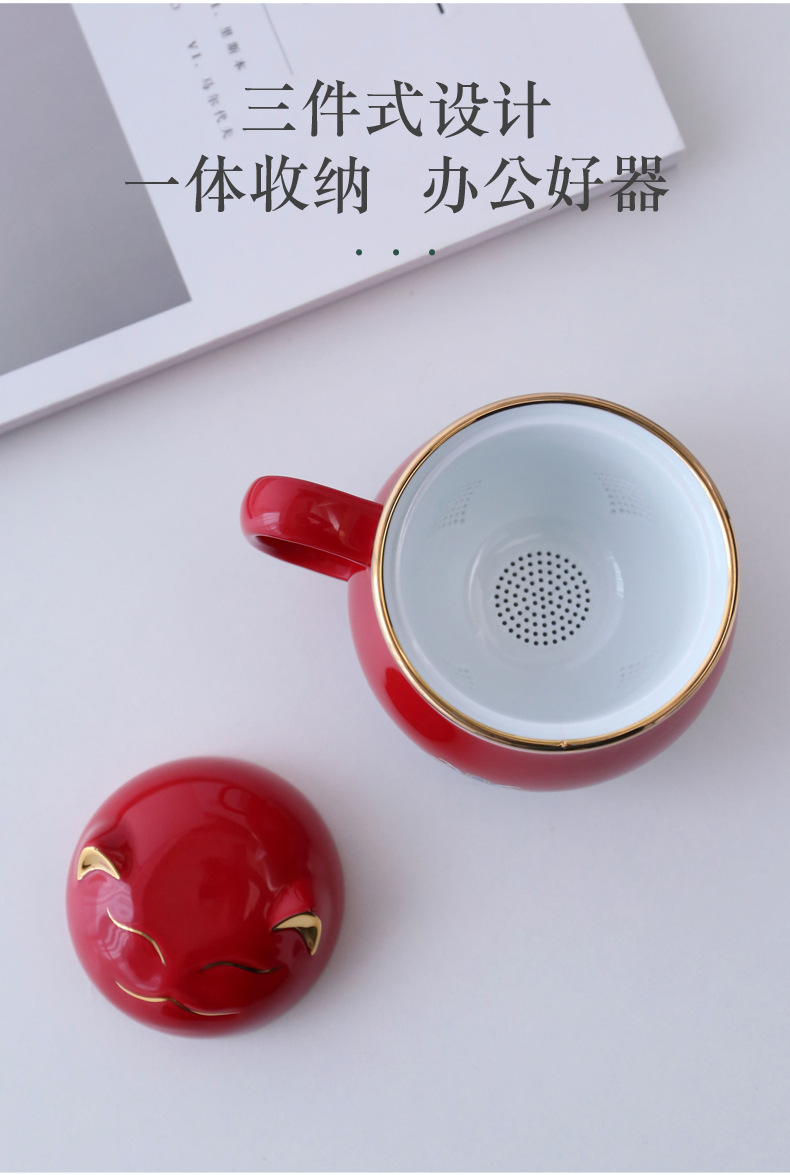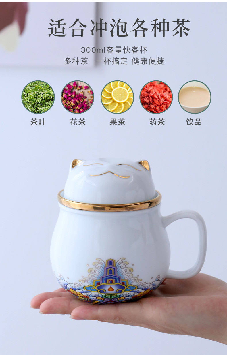 Bộ trà du lịch gốm sứ Di động tách nước trà có nắp đậy cốc pha trà lọc văn phòng gia dụng cốc trà mèo