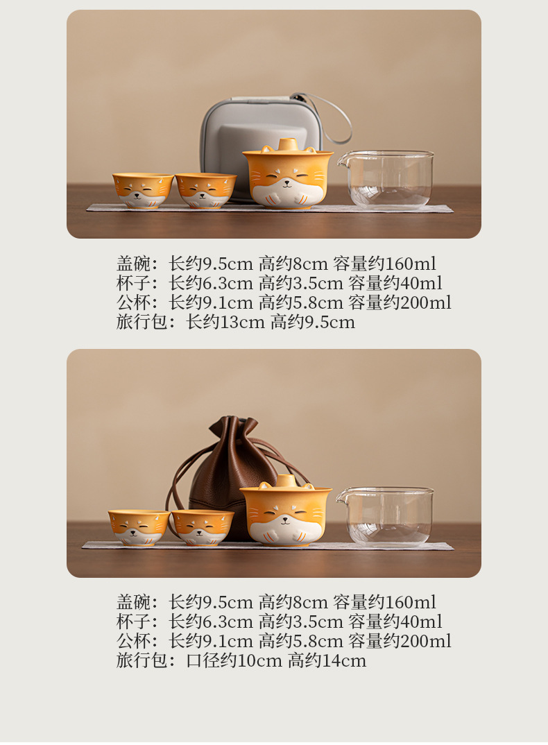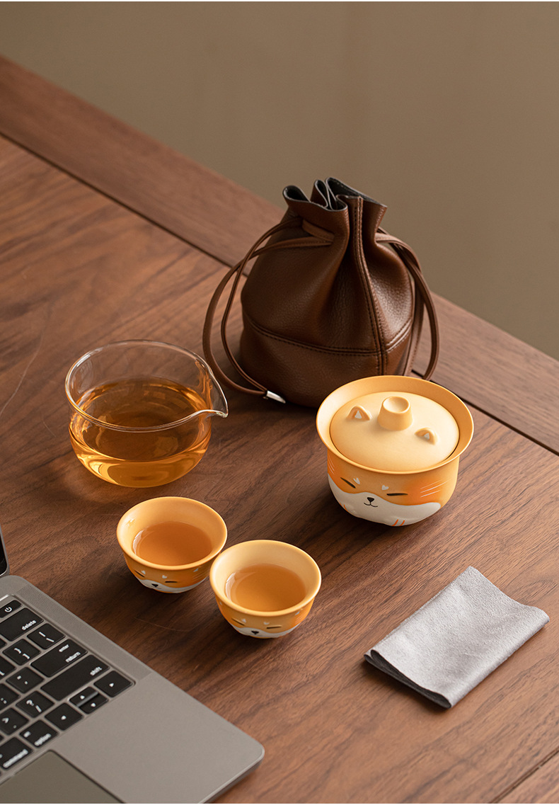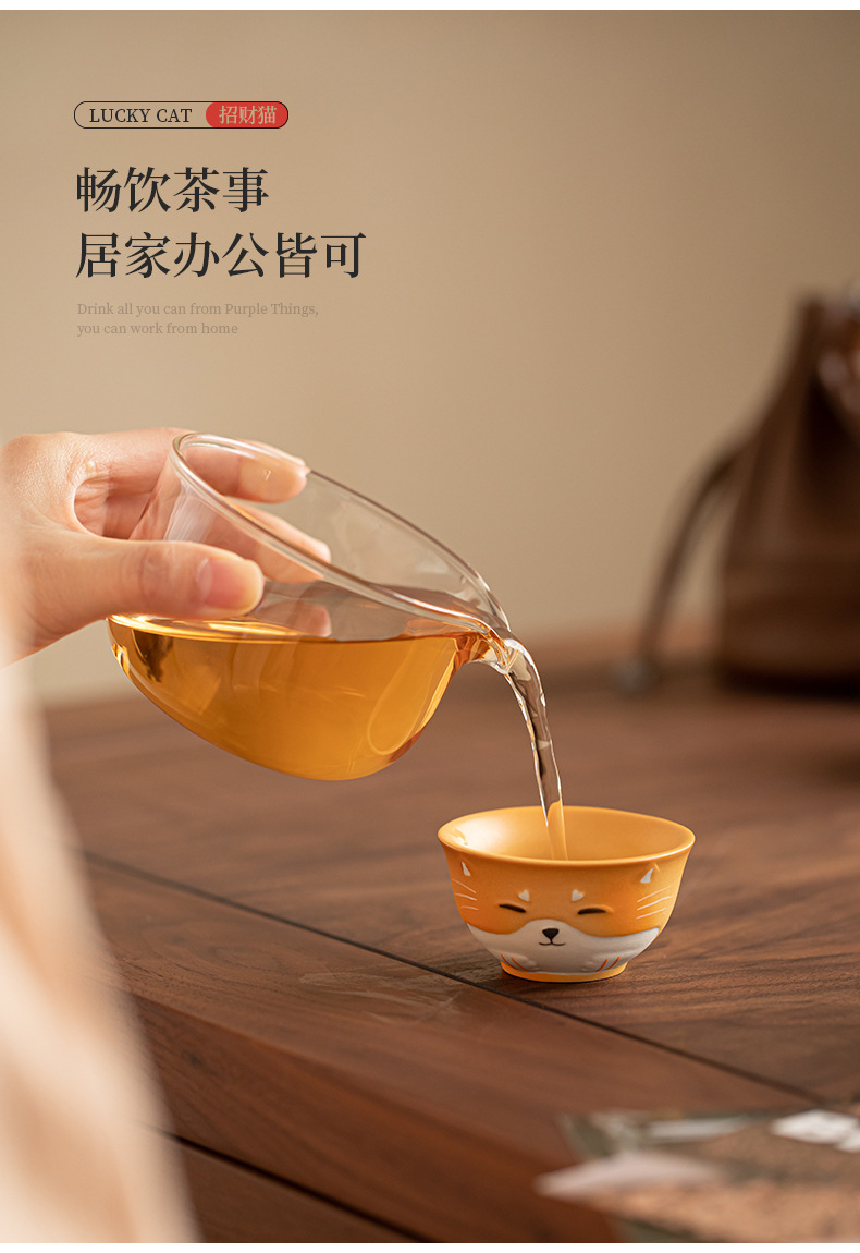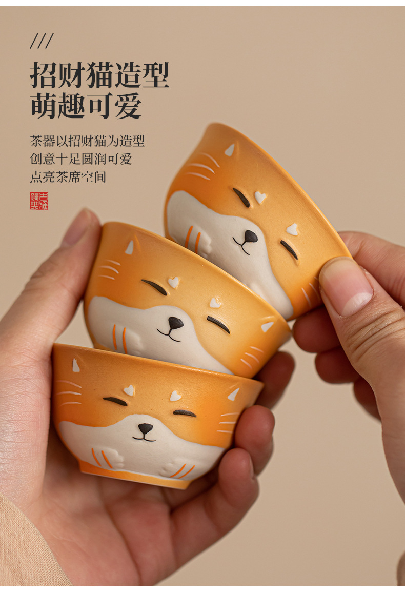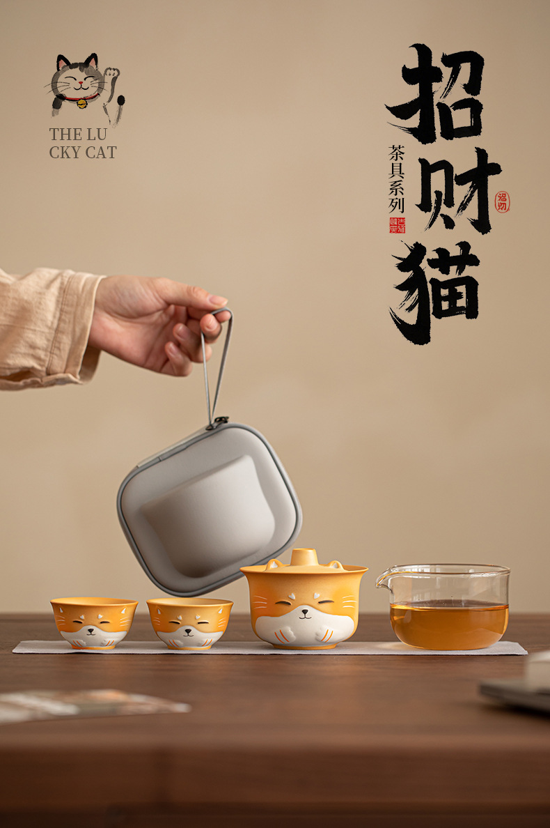 - Bộ trà du lịch gốm sứ mèo may mắn