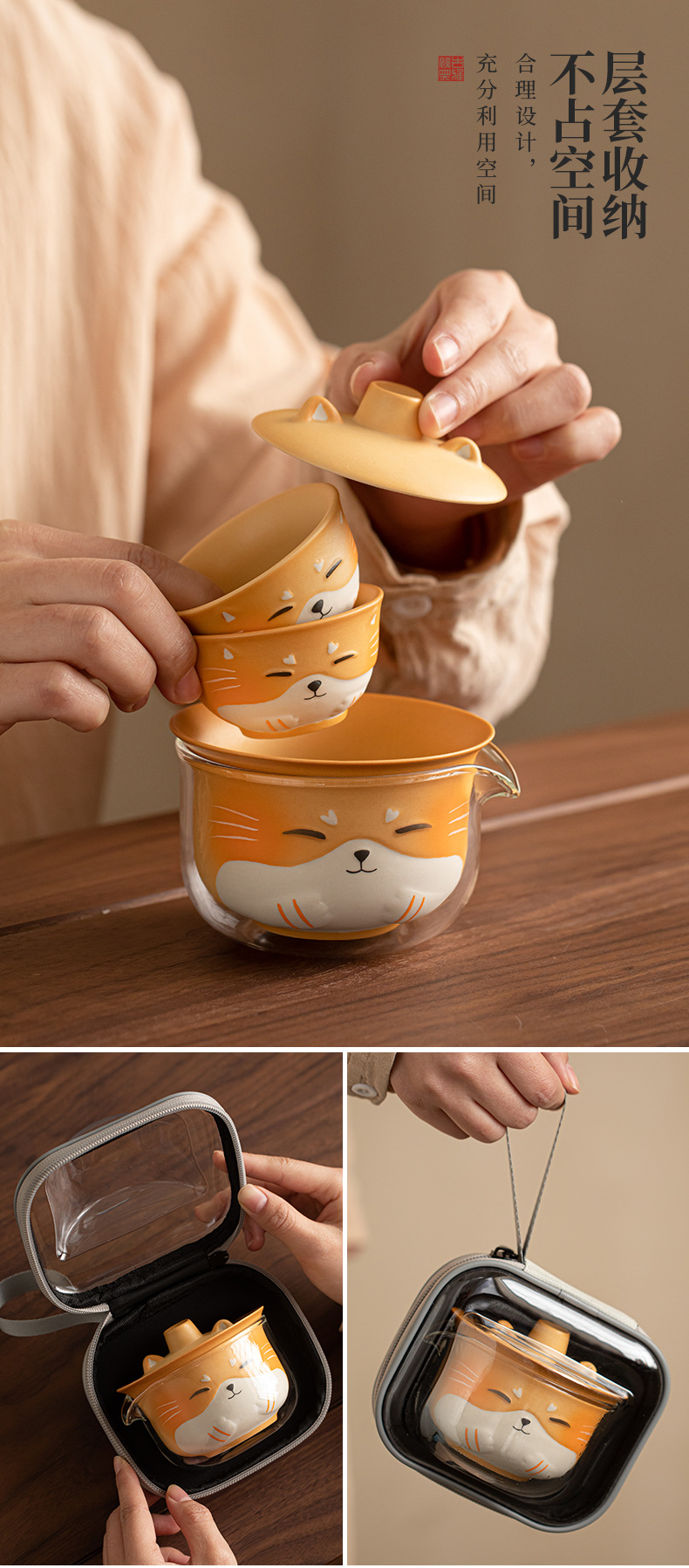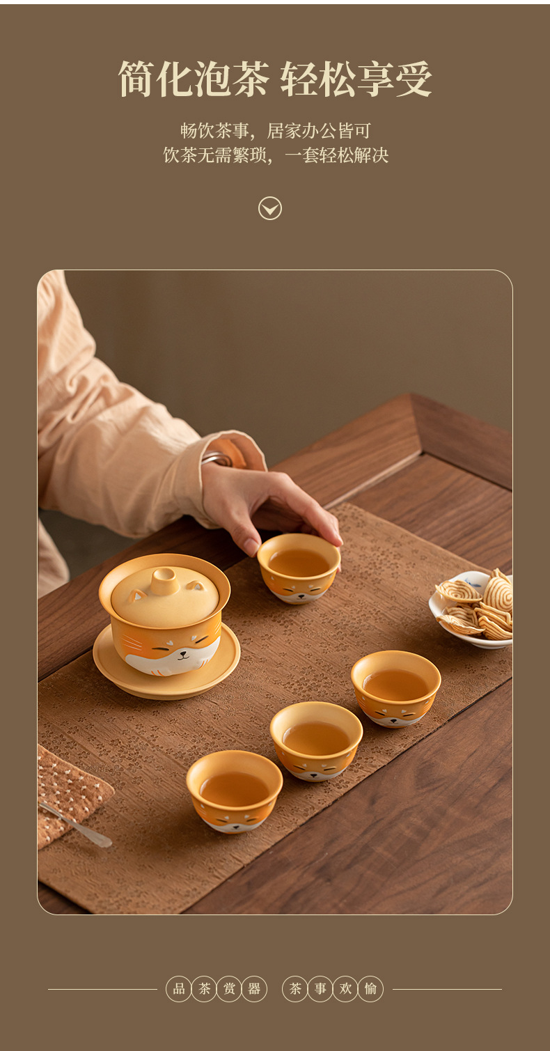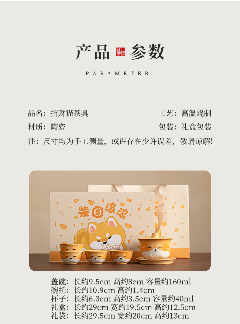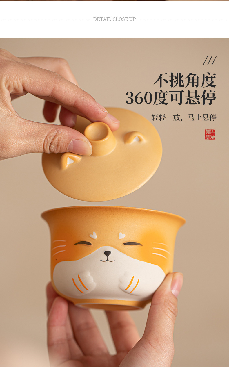 - Bộ trà du lịch gốm sứ mèo may mắn