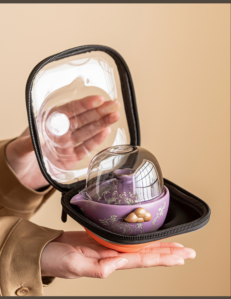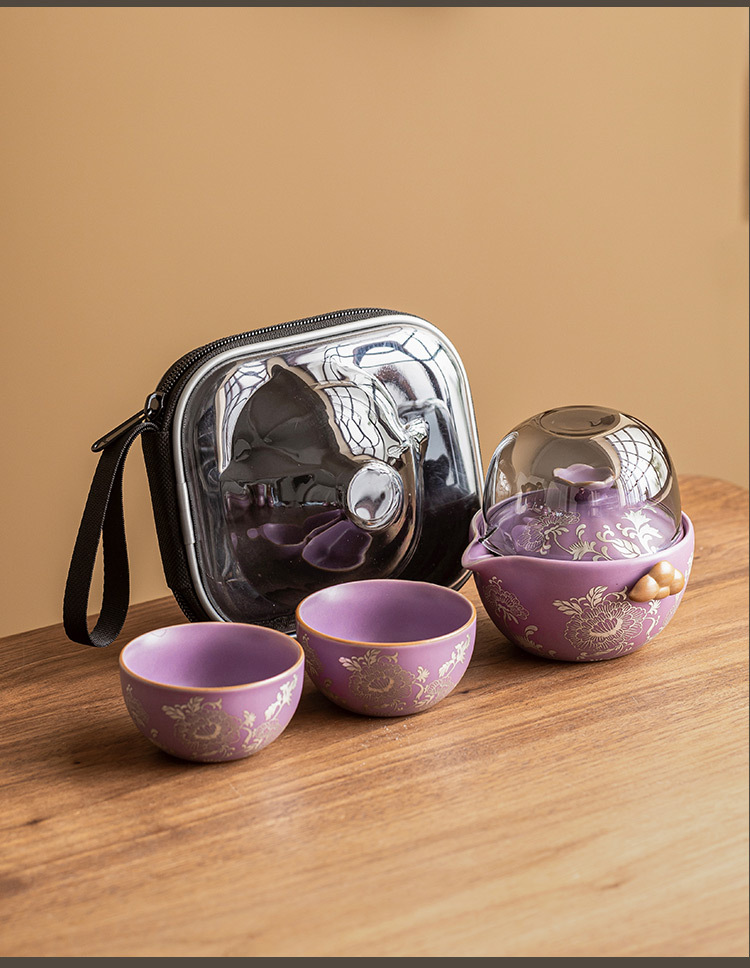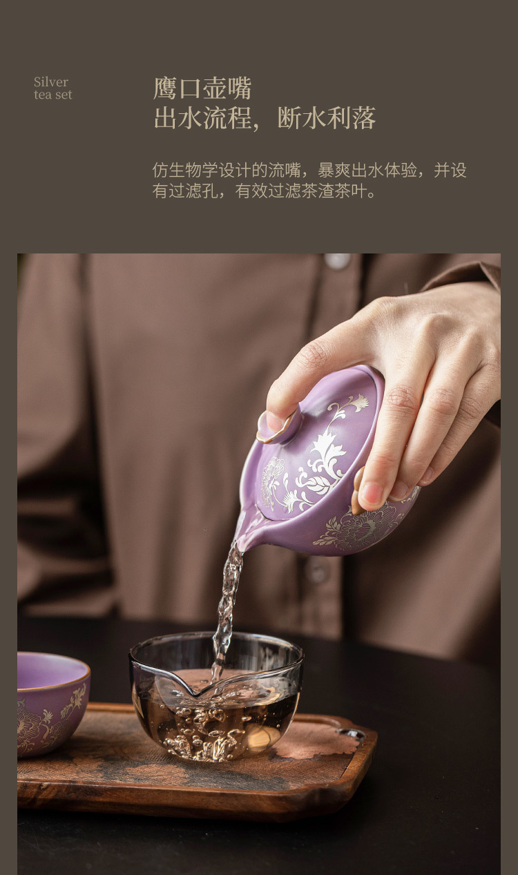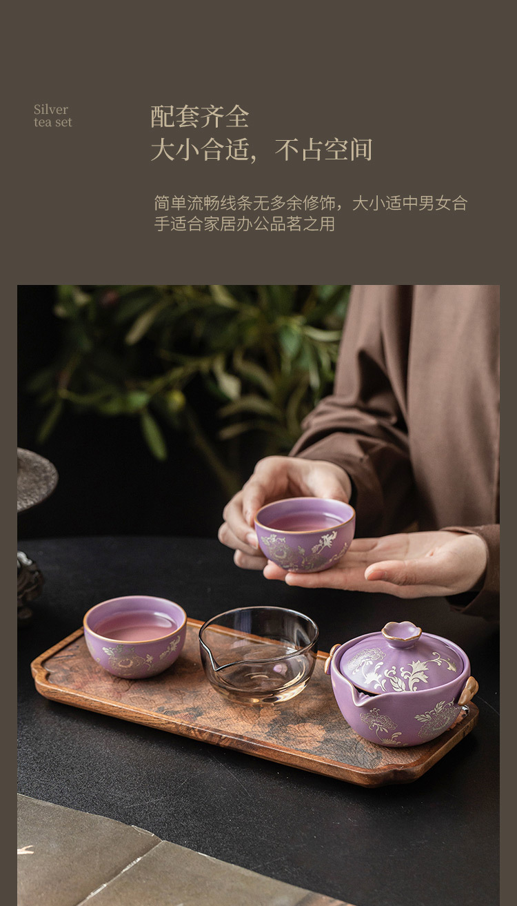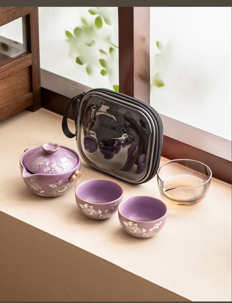 Bộ trà du lịch hoa mẫu đơn bạc bộ nhỏ Kung Fu cầm tay nhanh cốc cao cấp ấm trà một ấm hai cốc