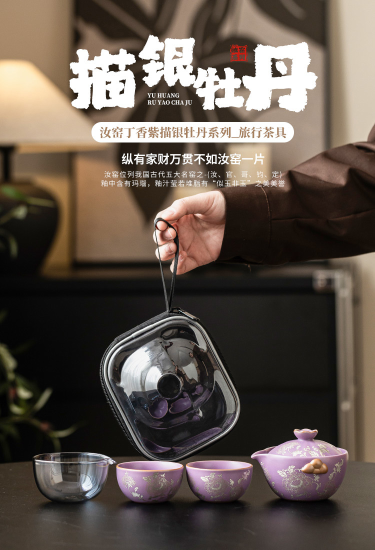 - Bộ trà du lịch hoa mẫu đơn bạc bộ nhỏ Kung Fu cầm tay nhanh cốc cao cấp ấm trà một ấm hai cốc