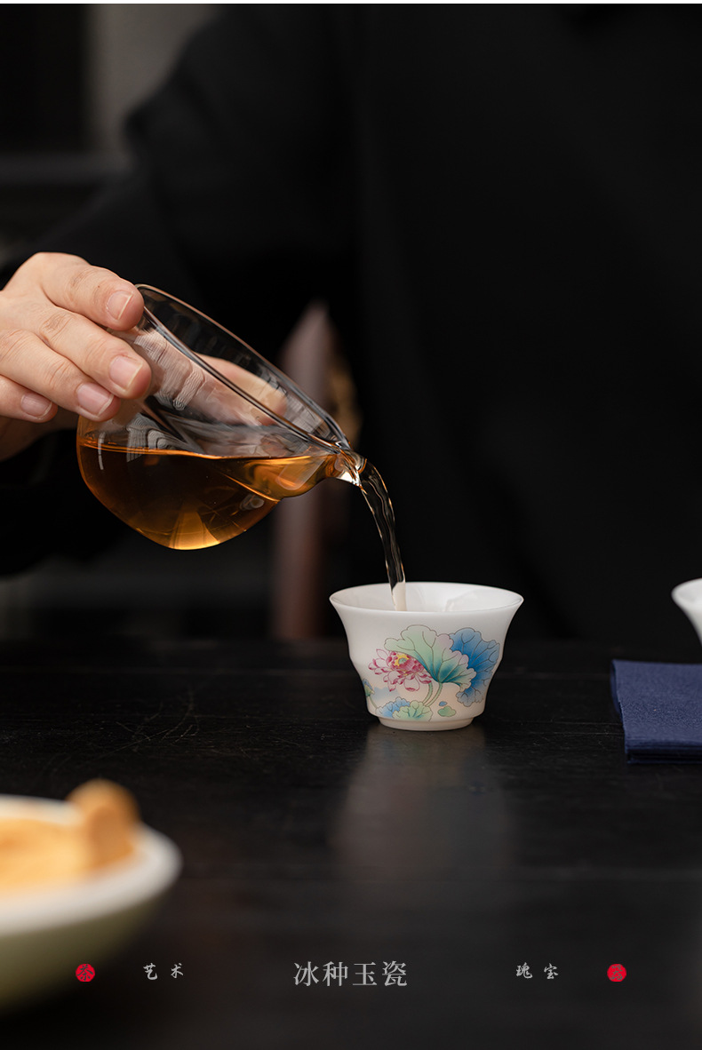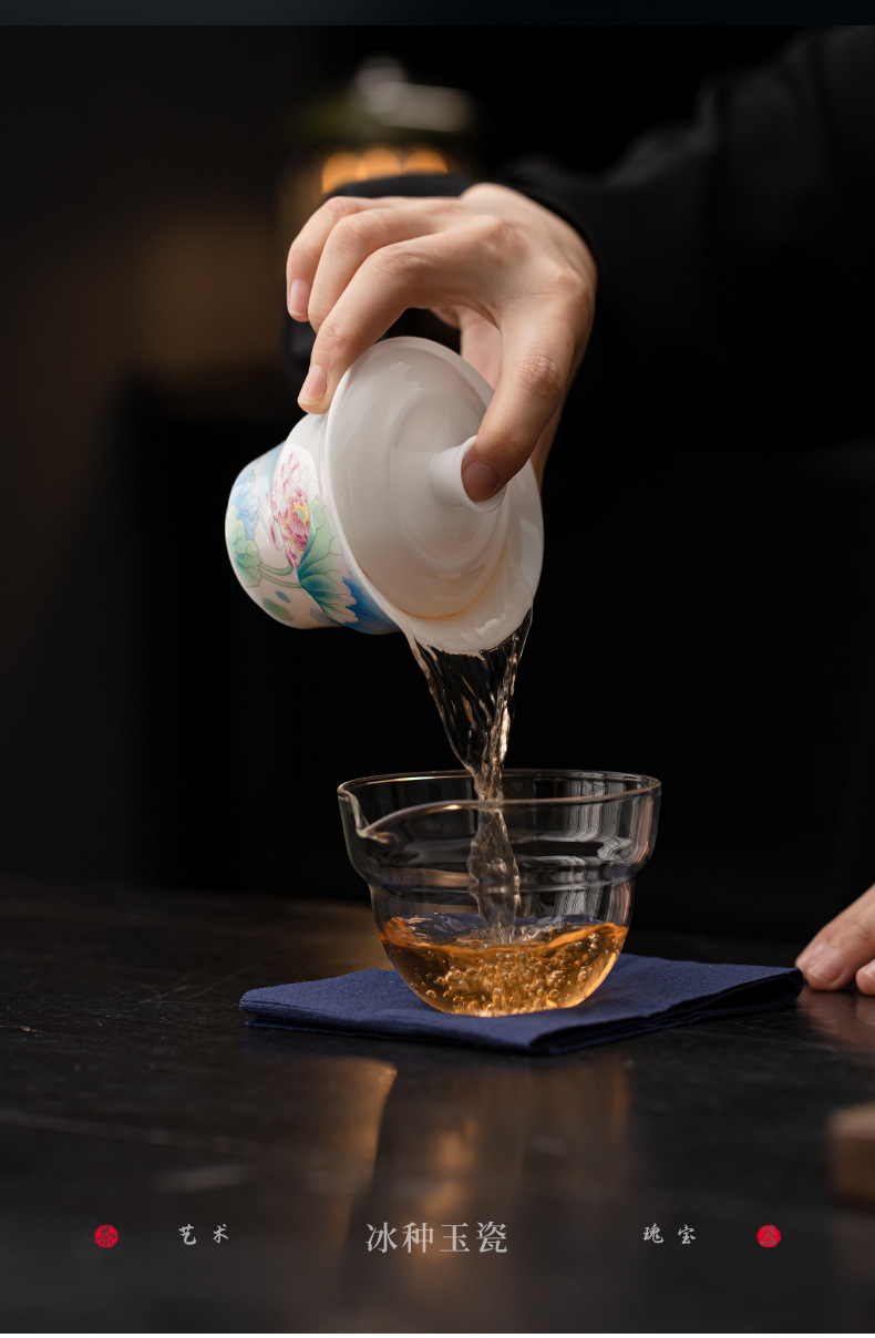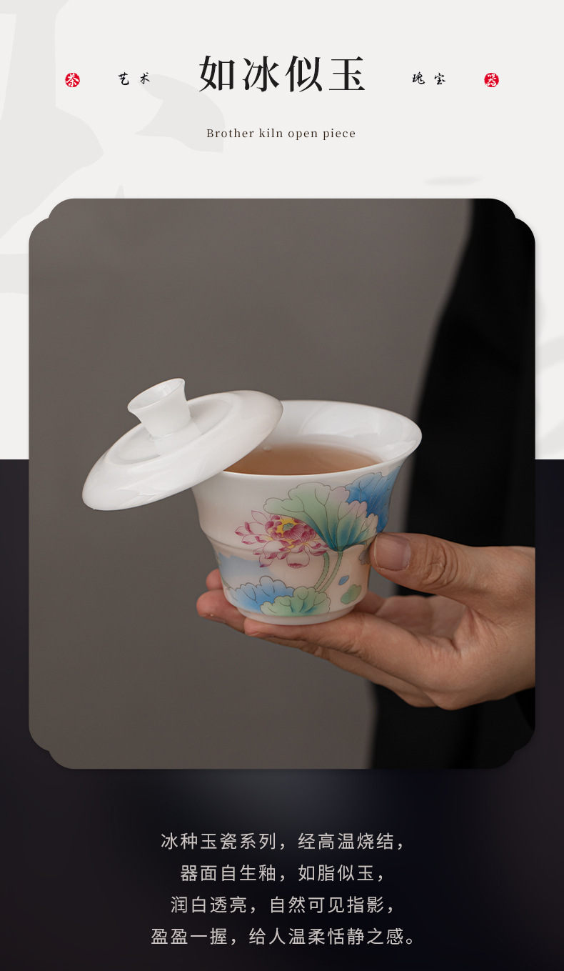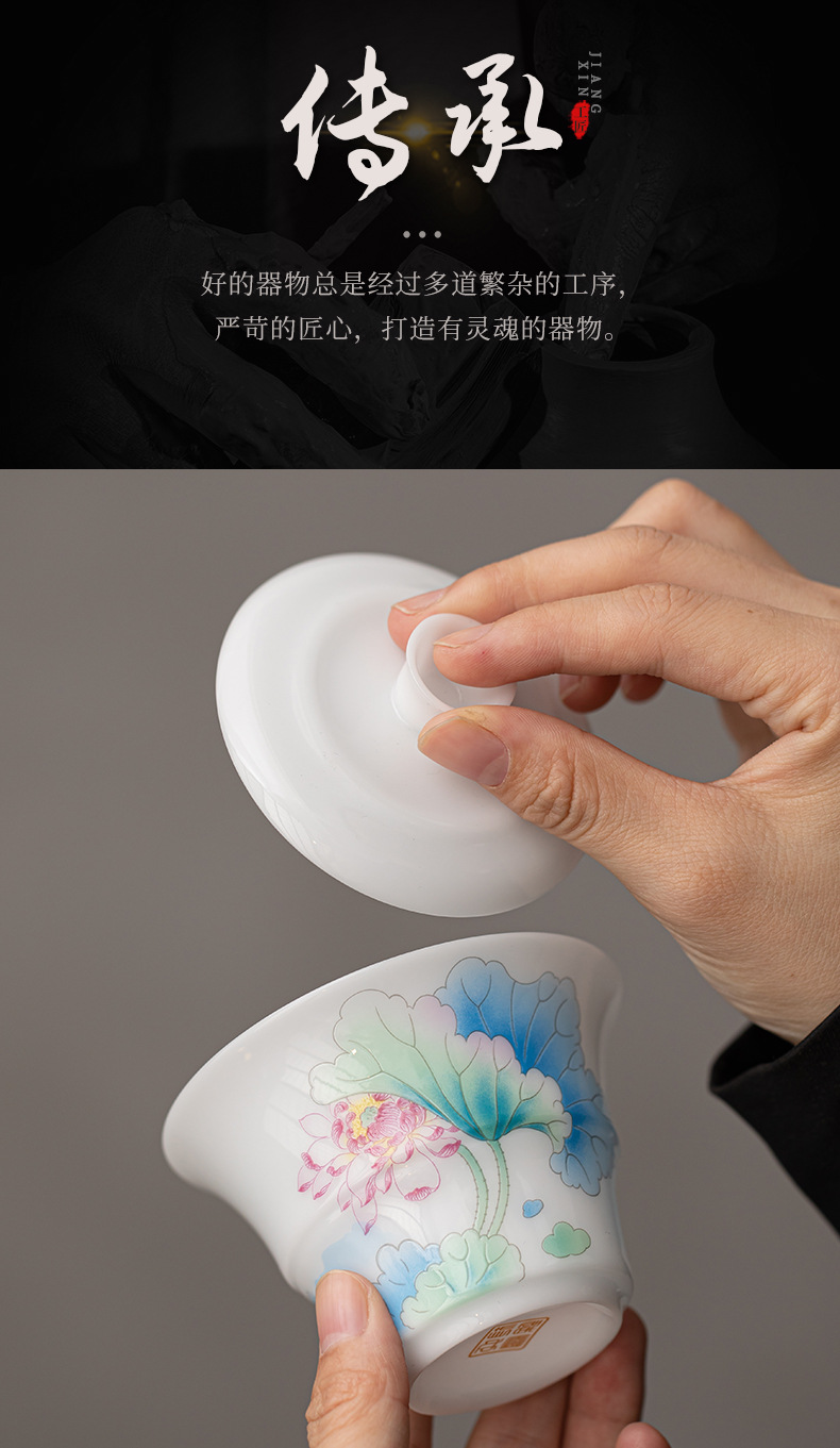 - Bộ trà du lịch hoa sen bằng sứ ngọc bích phong cách Trung Quốc mới ngoài trời di động nhanh cốc gốm sứ một bát ba cốc trà