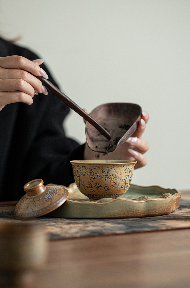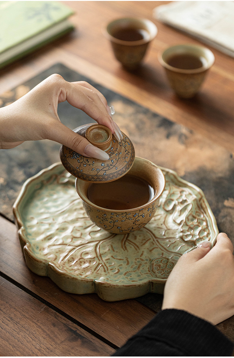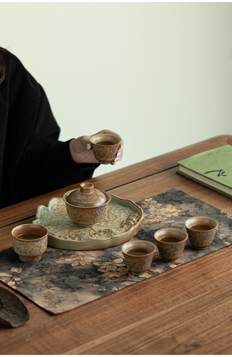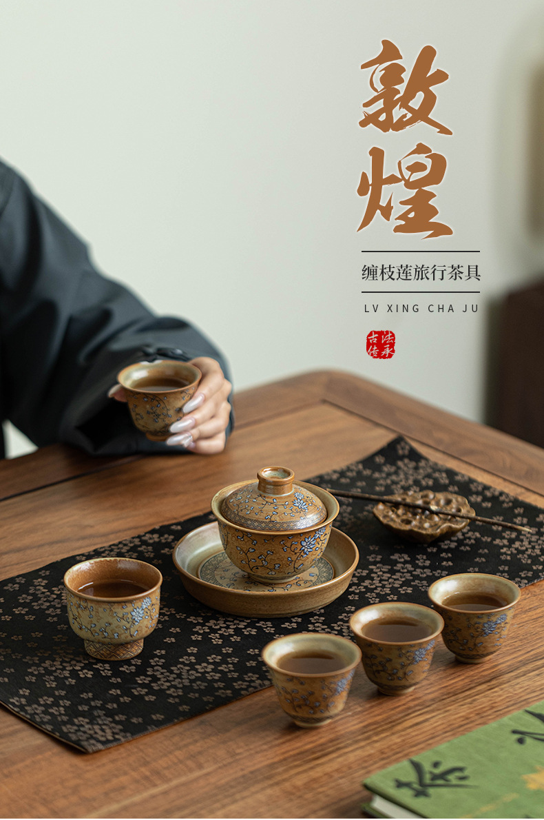 - Bộ trà du lịch hoa sen xanh và trắng Bộ trà Kung Fu gốm cắm trại di động Một ấm ba cốc