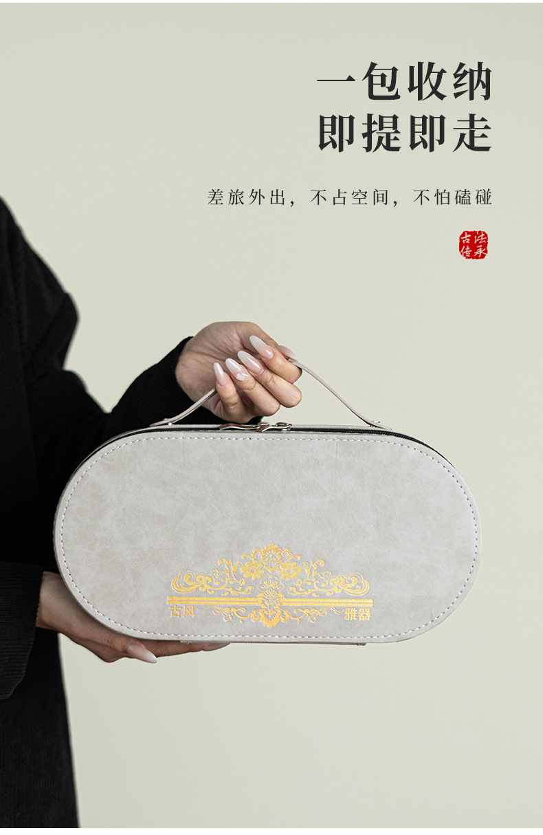 Bộ trà du lịch hoa sen xanh và trắng Bộ trà Kung Fu gốm cắm trại di động Một ấm ba cốc