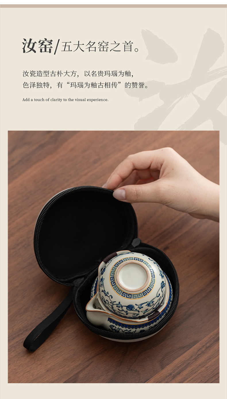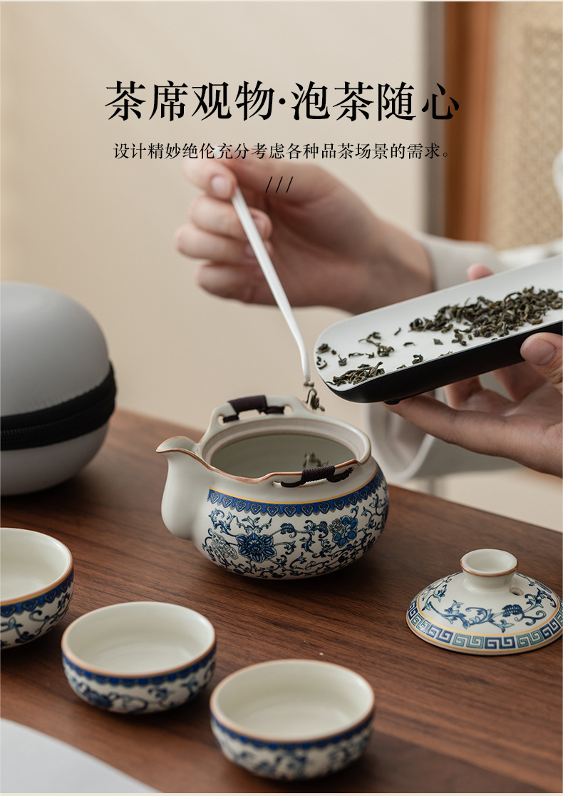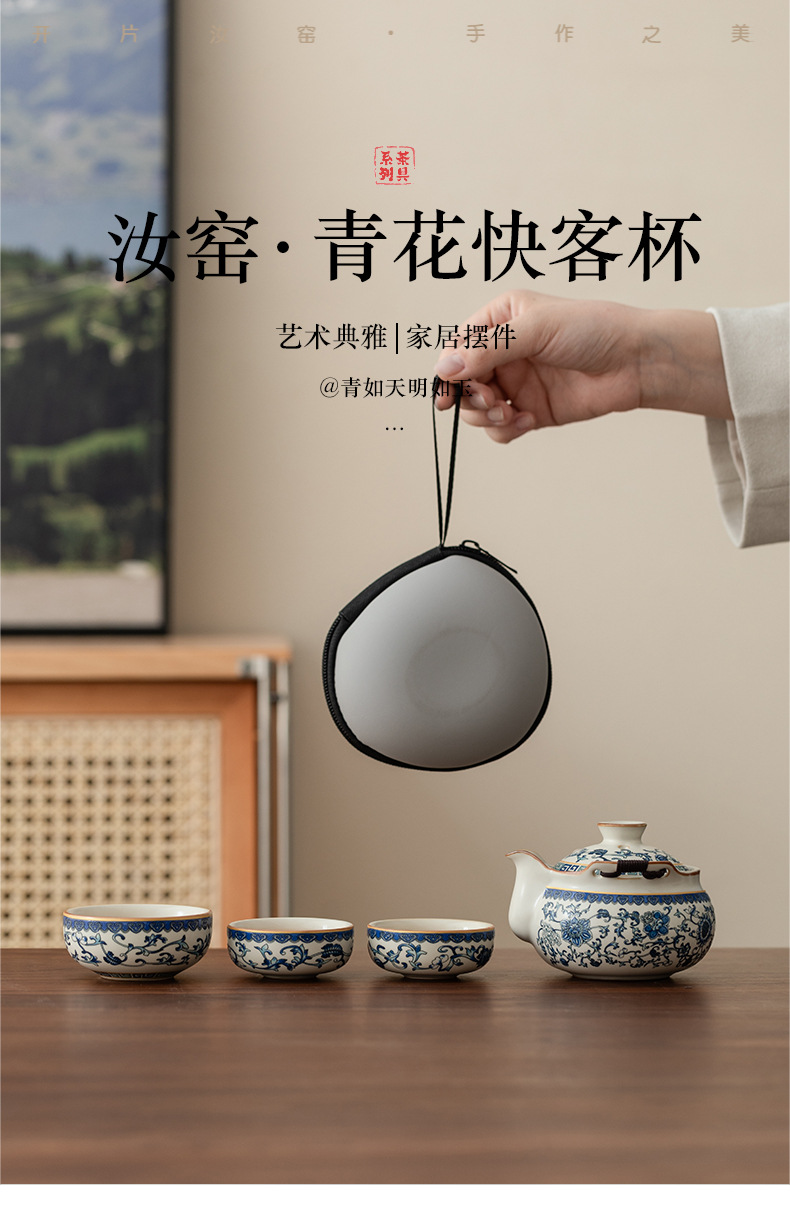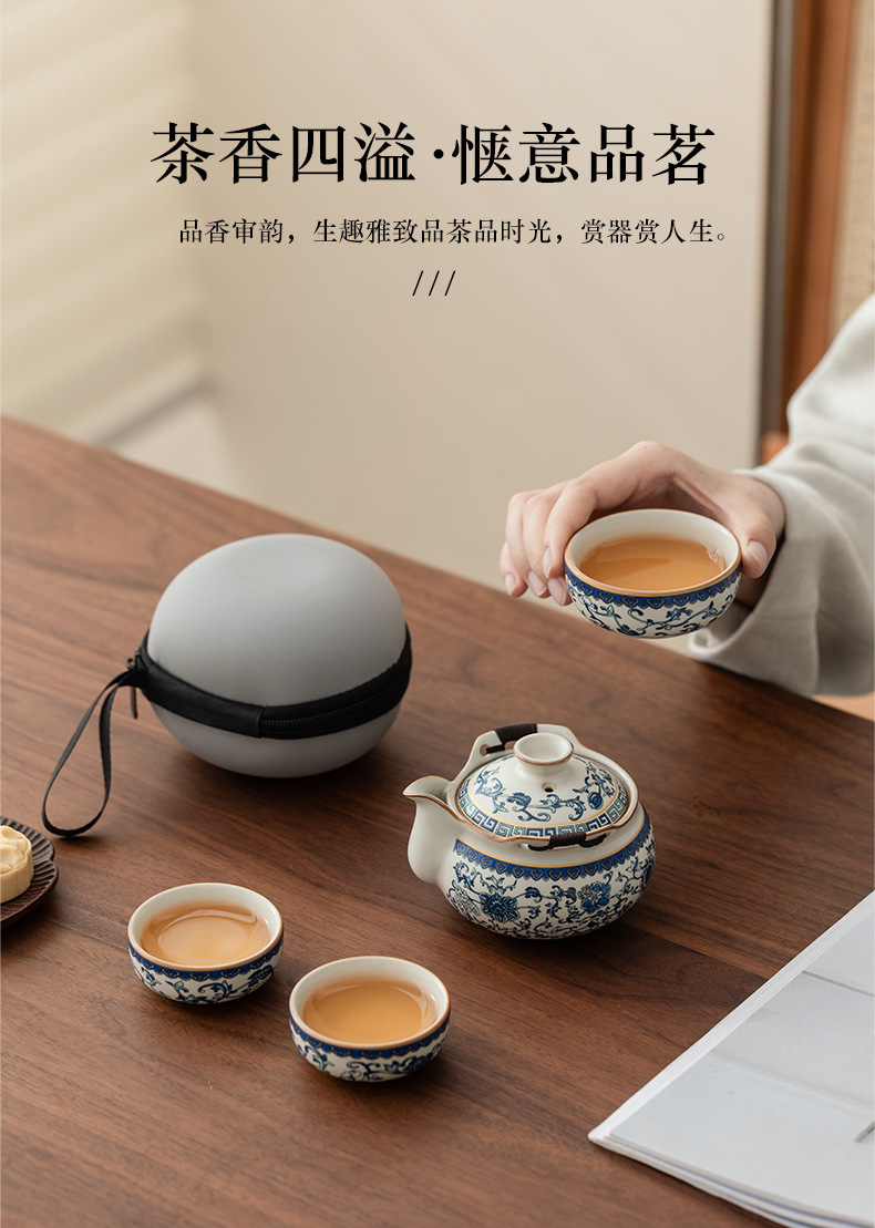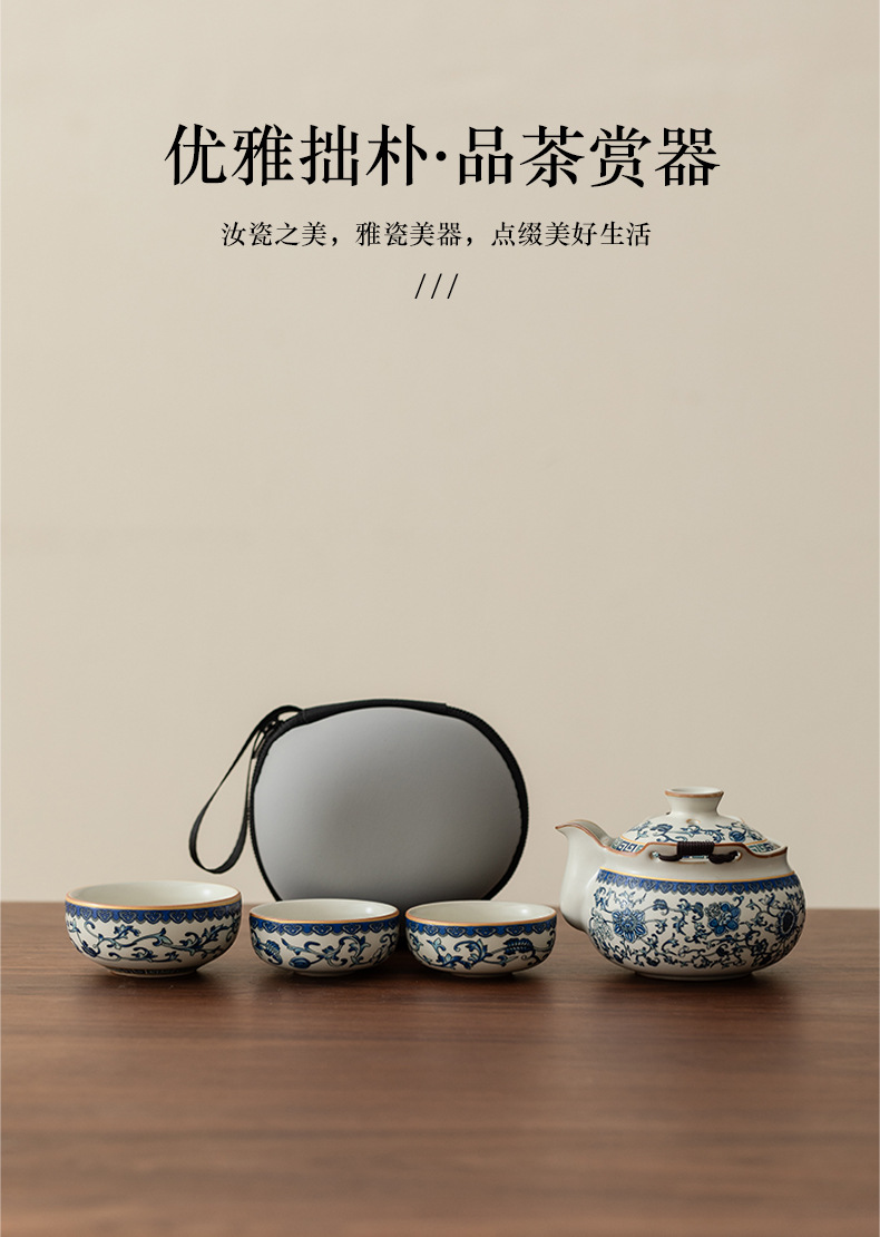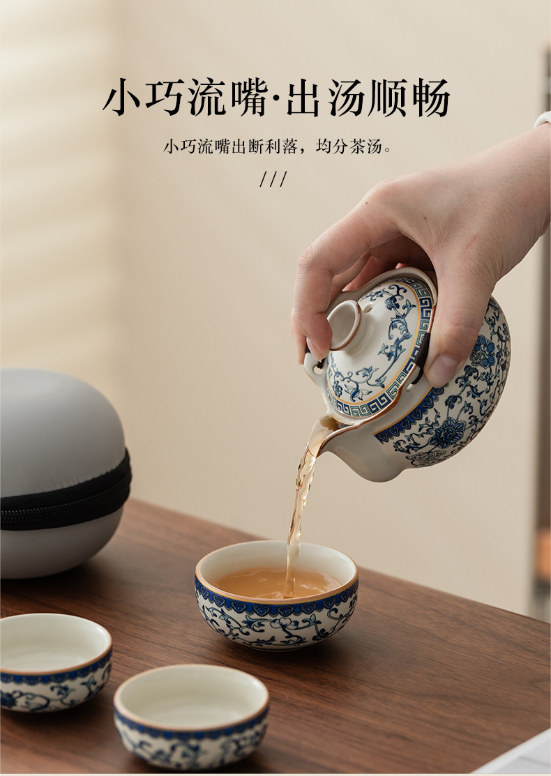 Bộ trà du lịch lò Ru màu be trắng xanh một ấm ba cốc gốm sứ cốc pha trà cốc pha trà ngoài trời bát trà có nắp