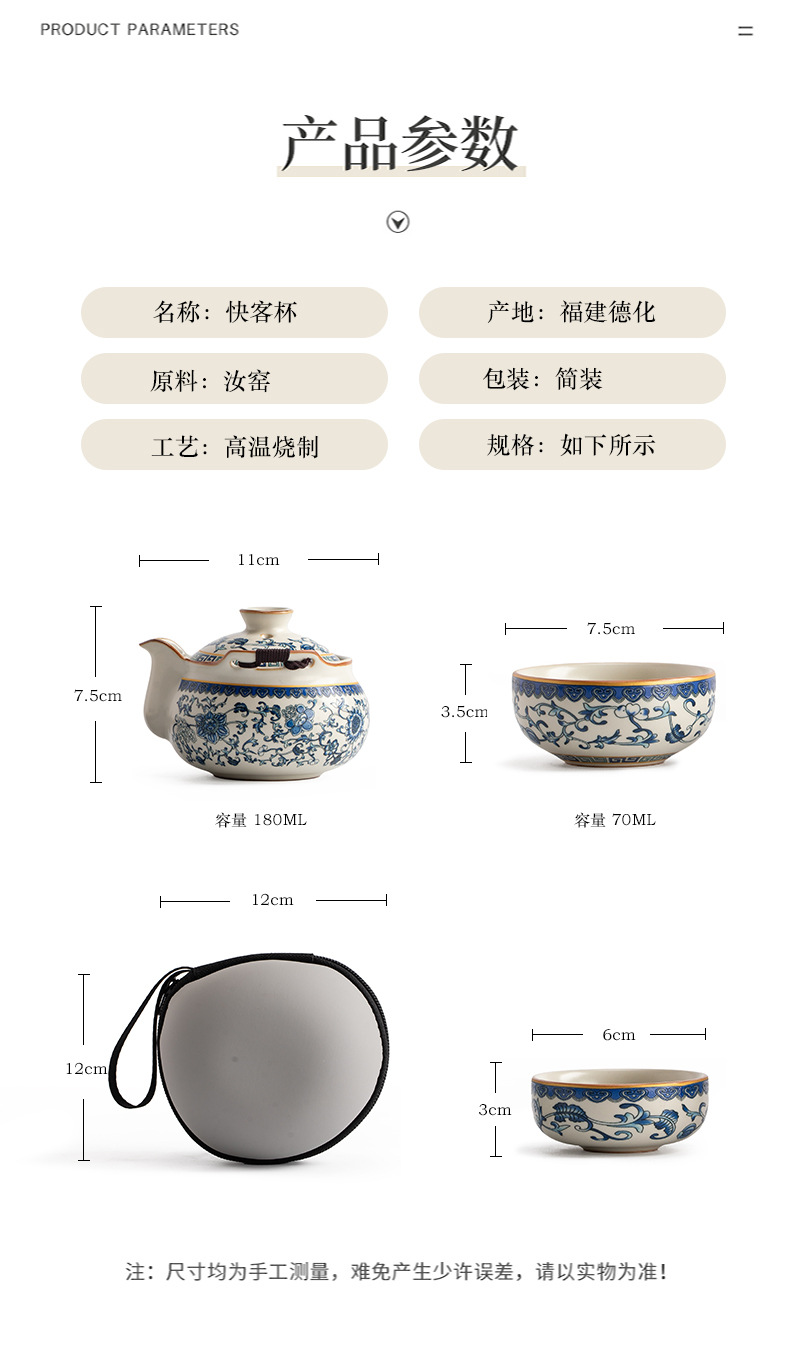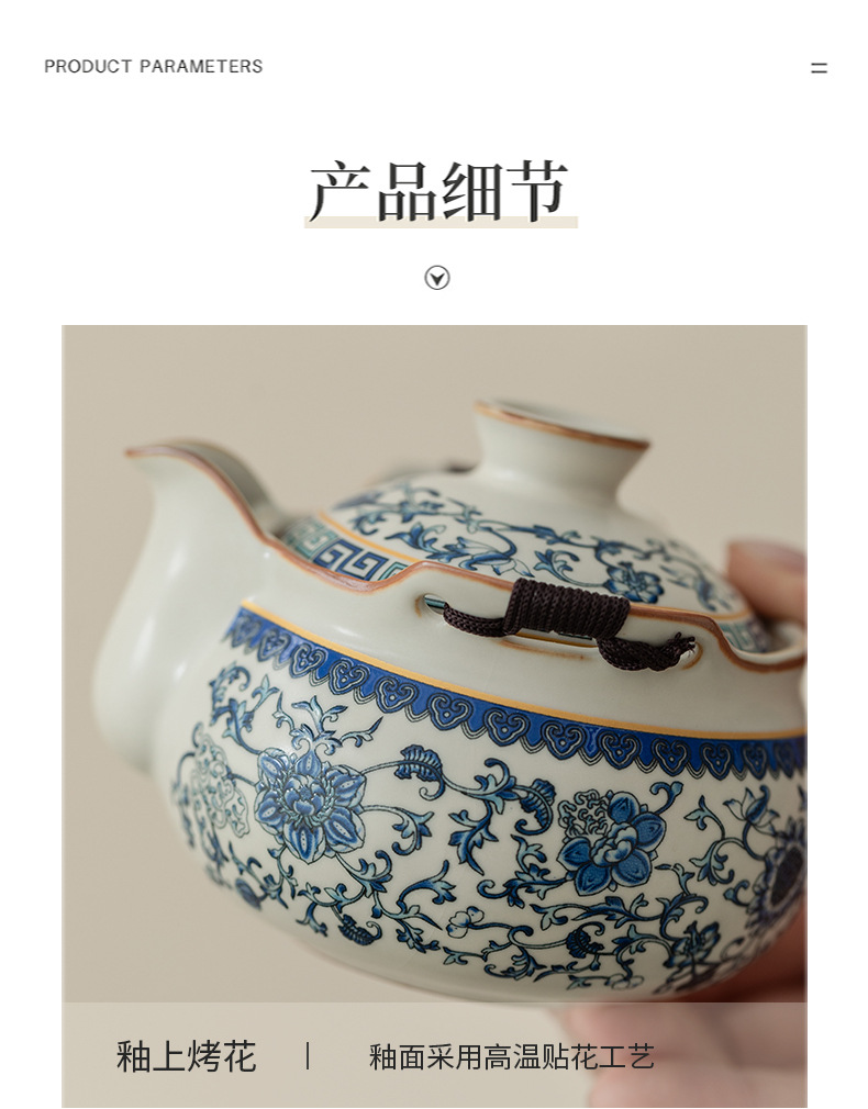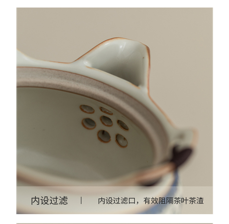 - Bộ trà du lịch lò Ru màu be trắng xanh một ấm ba cốc gốm sứ cốc pha trà cốc pha trà ngoài trời bát trà có nắp
