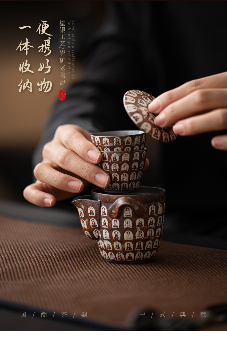 - Bộ trà du lịch mạ bạc hoa bùn đá cũ, một ấm hai cốc, bộ pha trà Kung Fu tiện dụng trên xe cắm trại ngoài trời