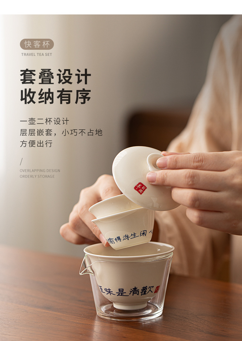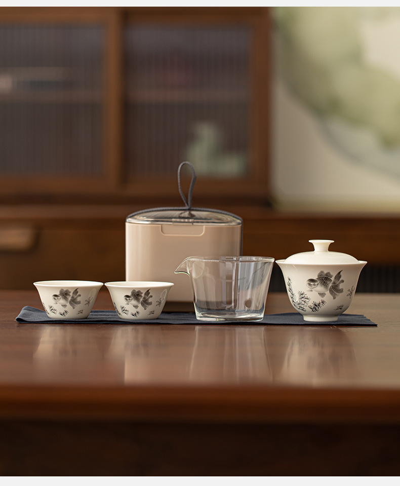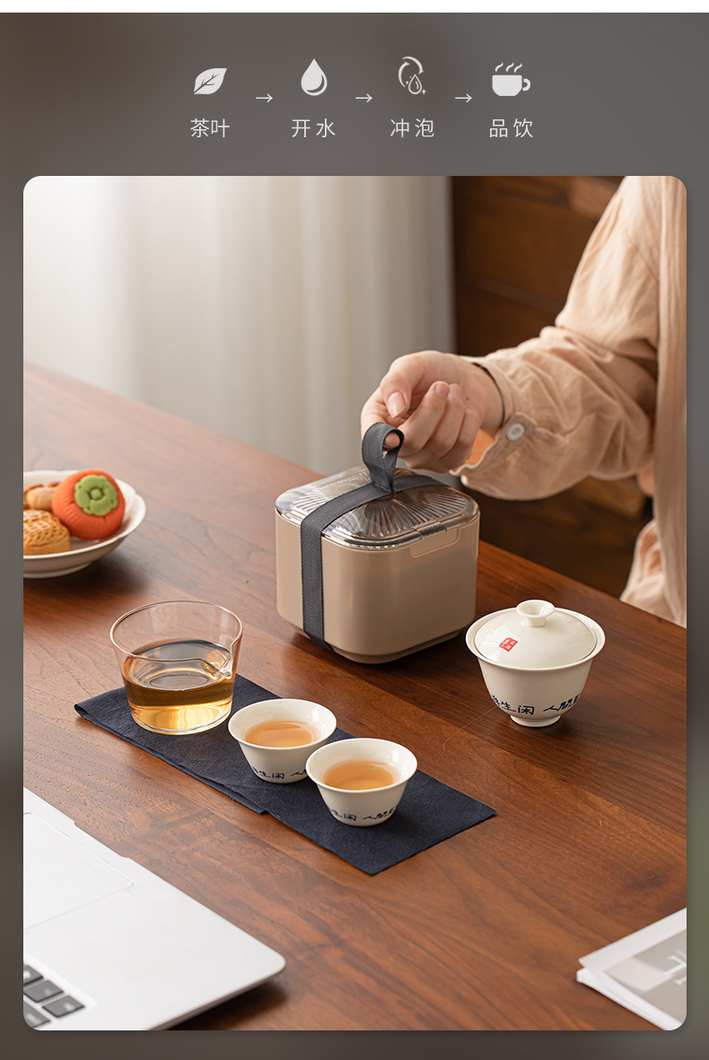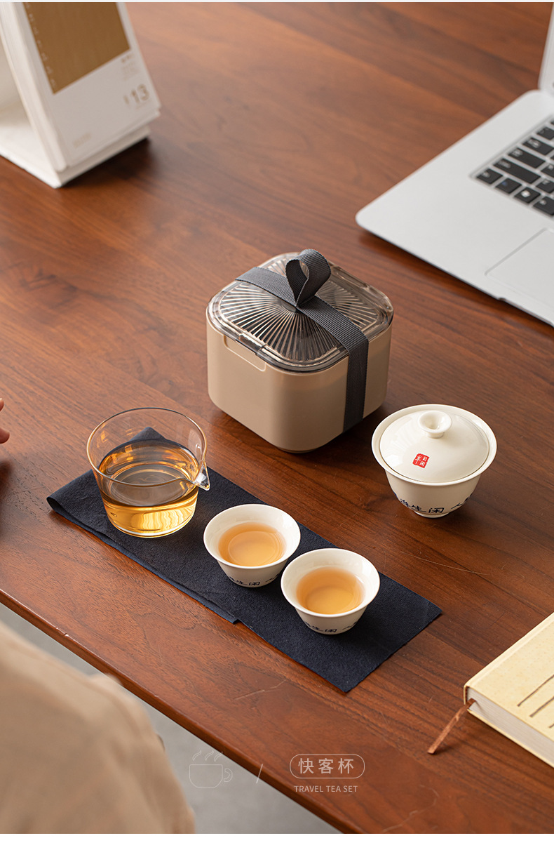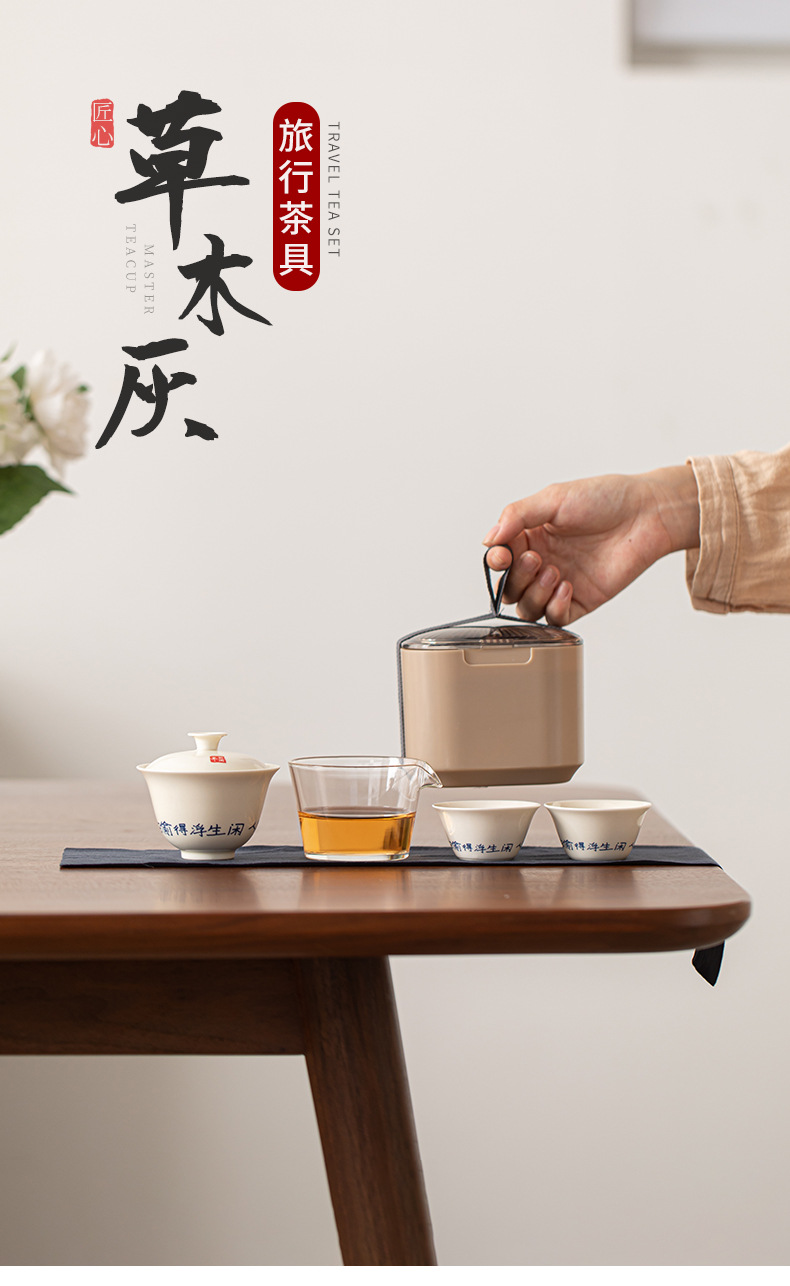 - Bộ trà du lịch màu xám thực vật Bộ trà gốm sứ tiện lợi Một ấm hai cốc