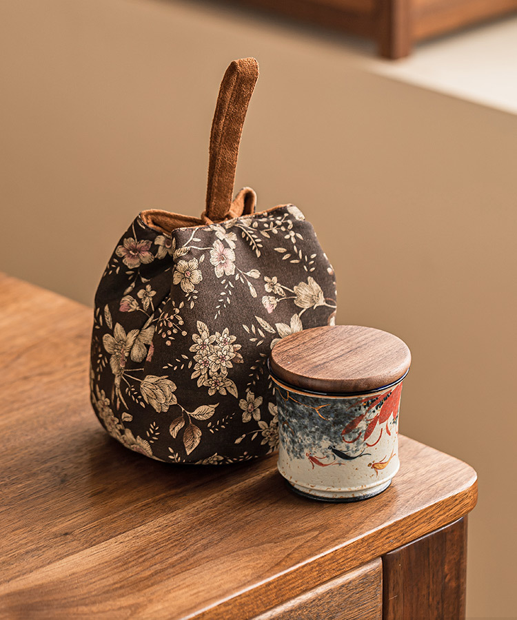 Bộ trà du lịch màu xanh và trắng đá lửa đỏ di động vẽ tay hoa sen vần hoa sen koi cốc khách nhanh cốc trà Kung Fu cho một người uống