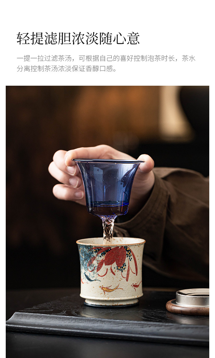 - Bộ trà du lịch màu xanh và trắng đá lửa đỏ di động vẽ tay hoa sen vần hoa sen koi cốc khách nhanh cốc trà Kung Fu cho một người uống