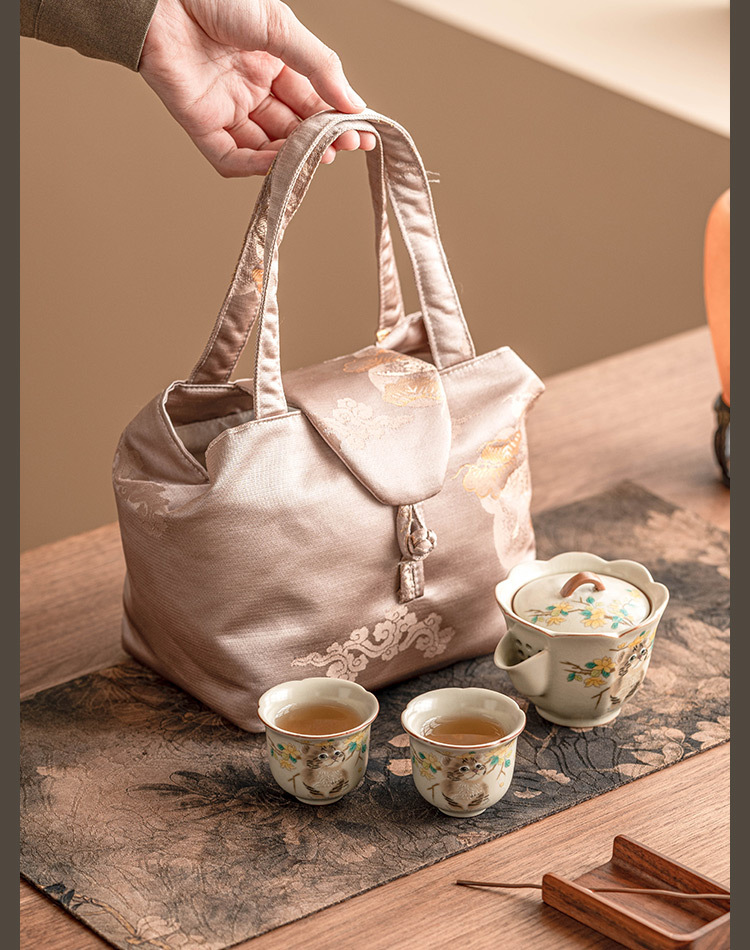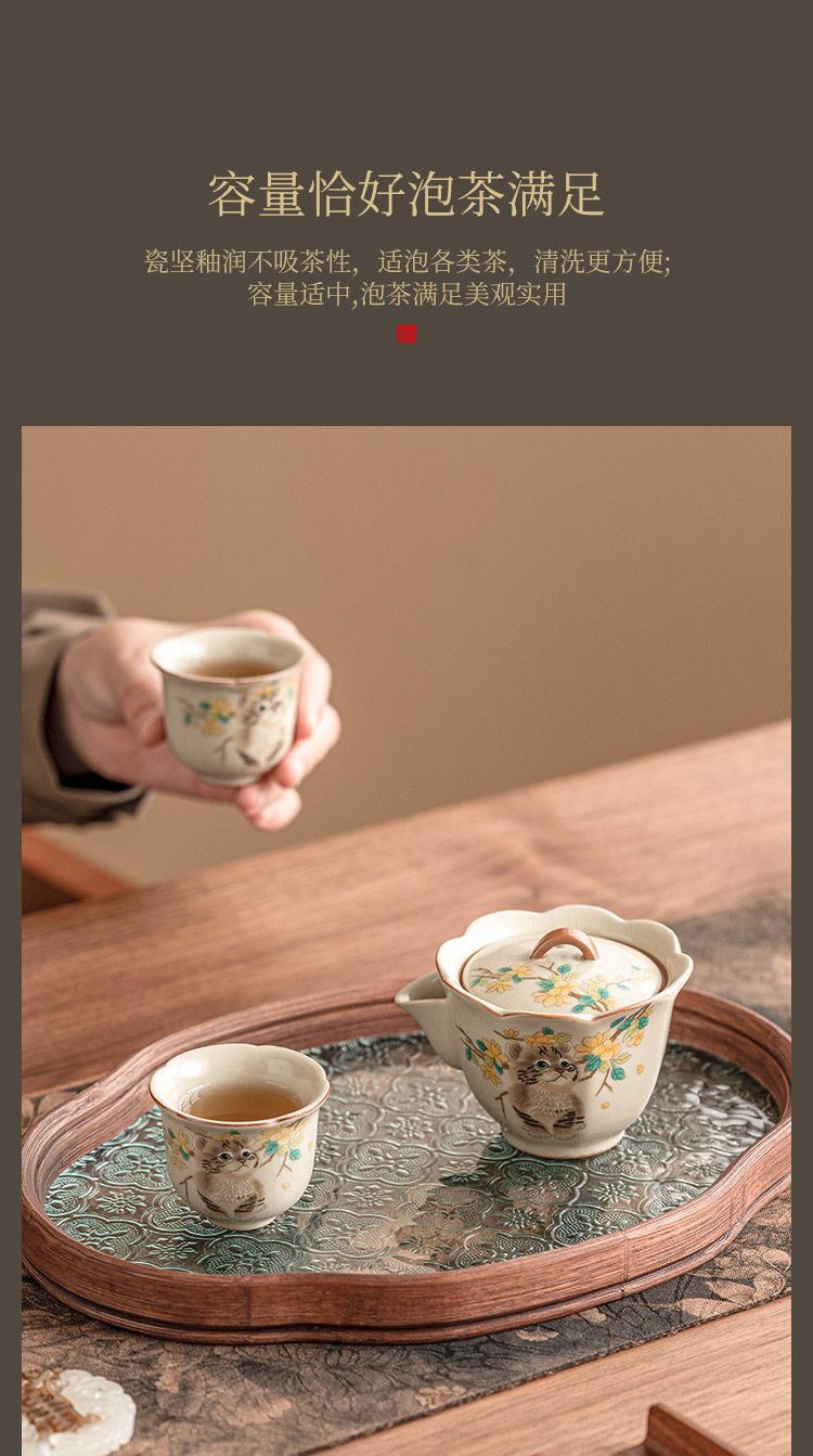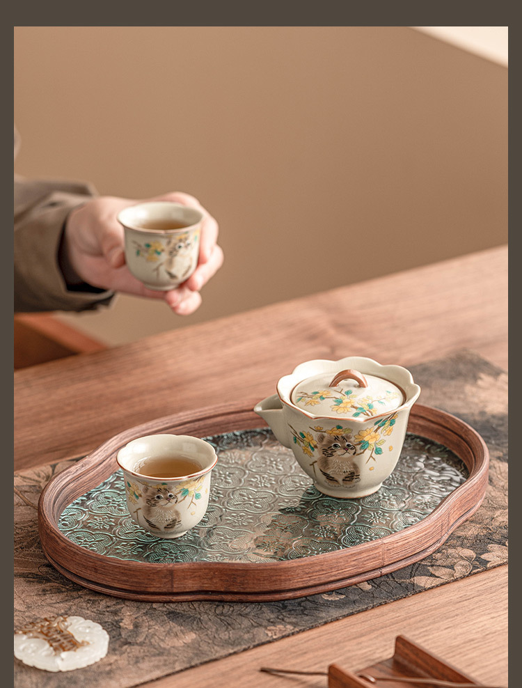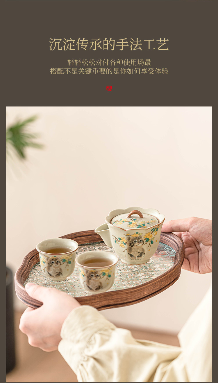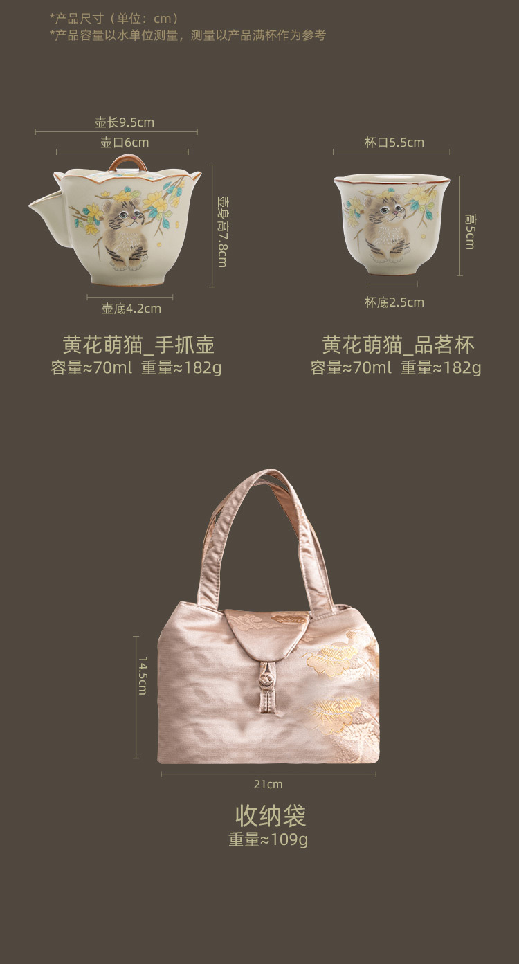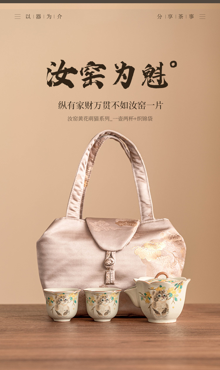 Bộ trà du lịch mèo dễ thương hoa vàng sứ Ru bộ trà gốm sứ di động tách trà pha trà ngoài trời một bình hai cốc bộ nhỏ