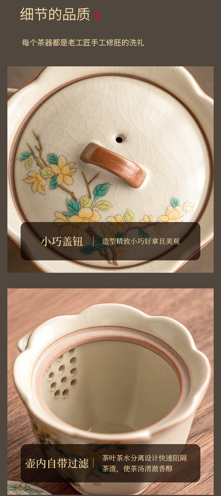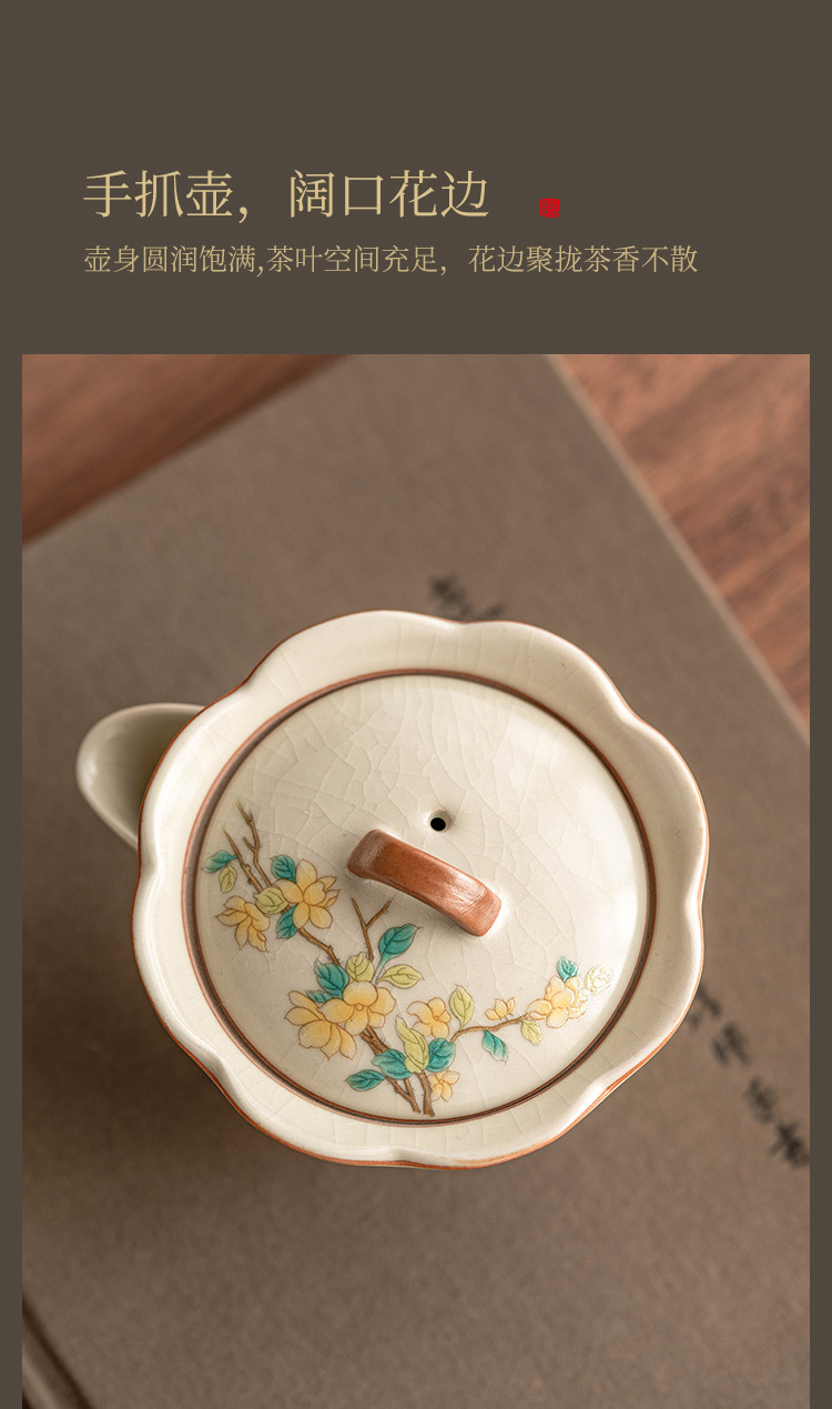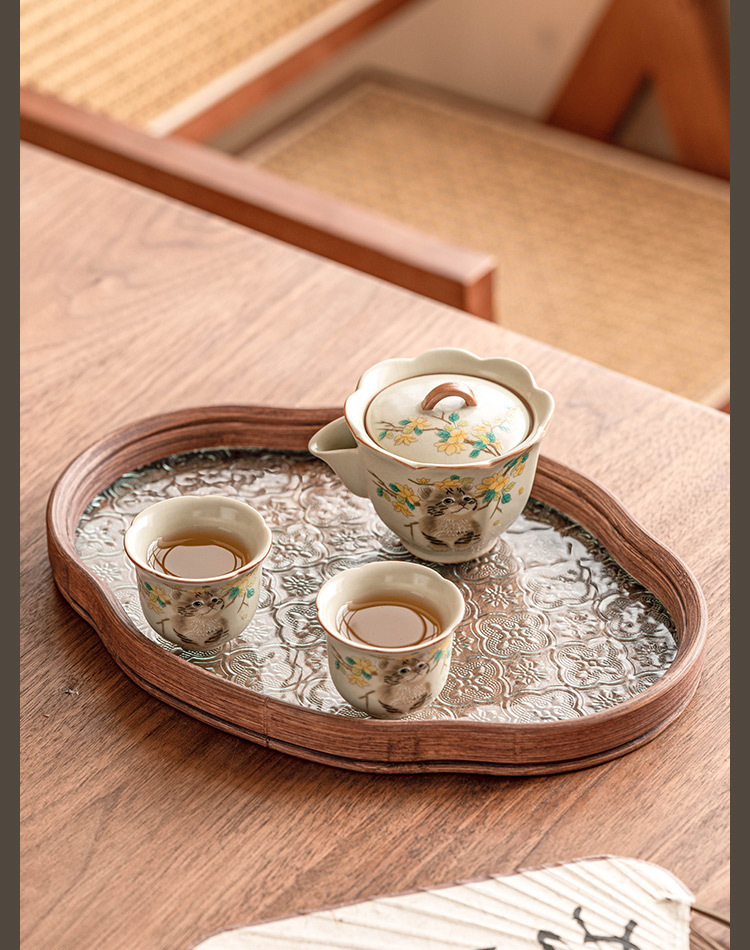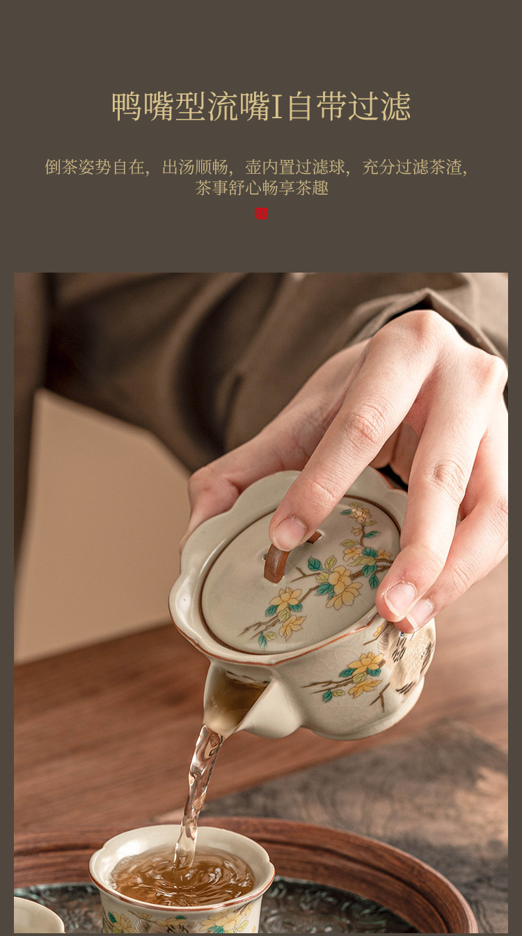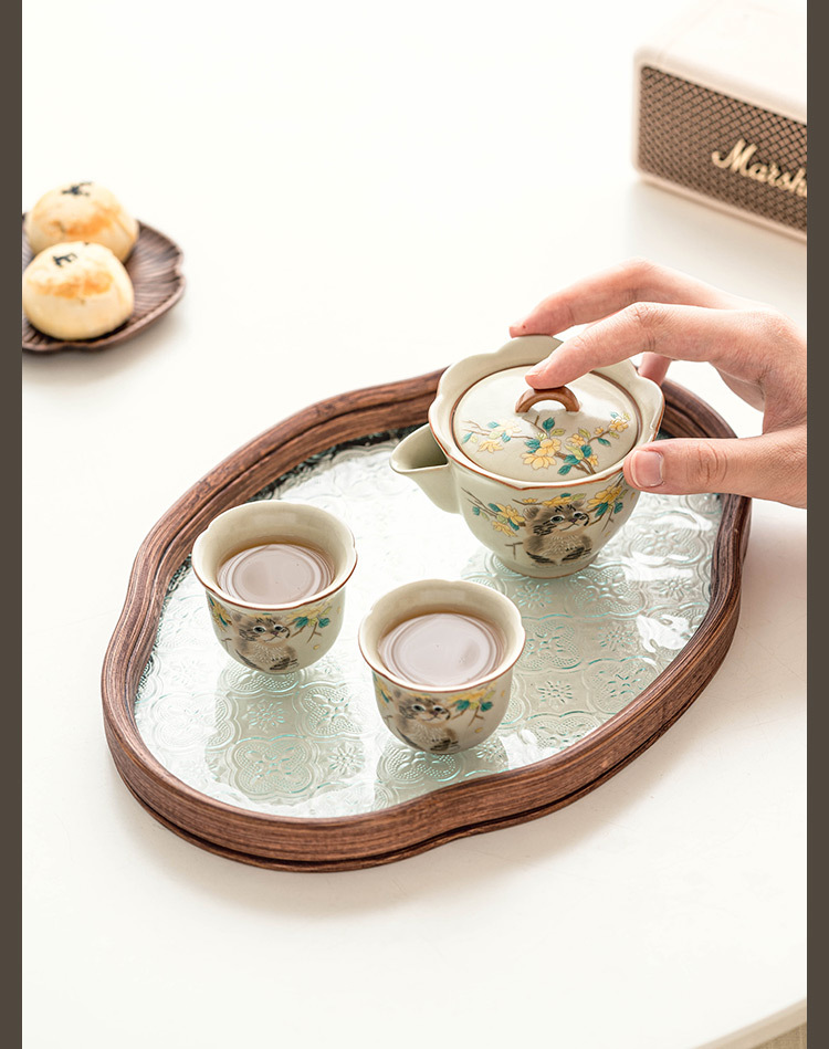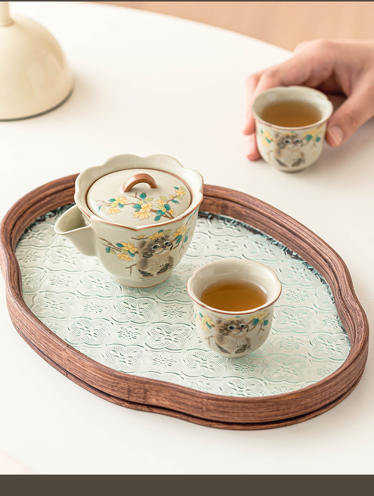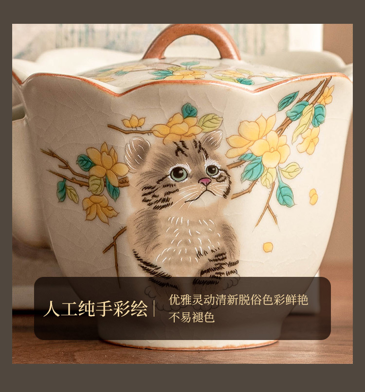Bộ trà du lịch mèo dễ thương hoa vàng sứ Ru bộ trà gốm sứ di động tách trà pha trà ngoài trời một bình hai cốc bộ nhỏ