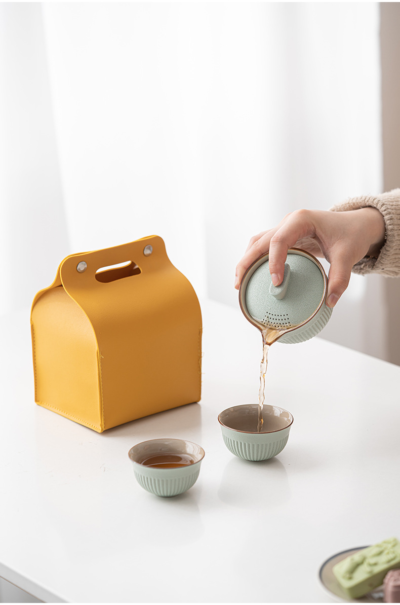 - Bộ trà du lịch một ấm hai cốc Bộ trà Kungfu gốm sứ Đồ lưu niệm lễ hội Đồ pha trà lười cắm trại