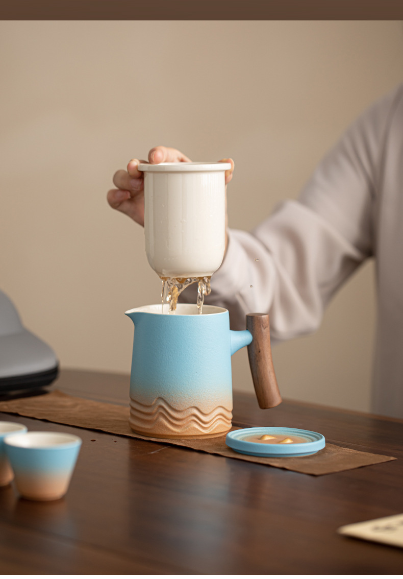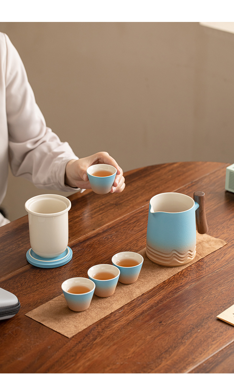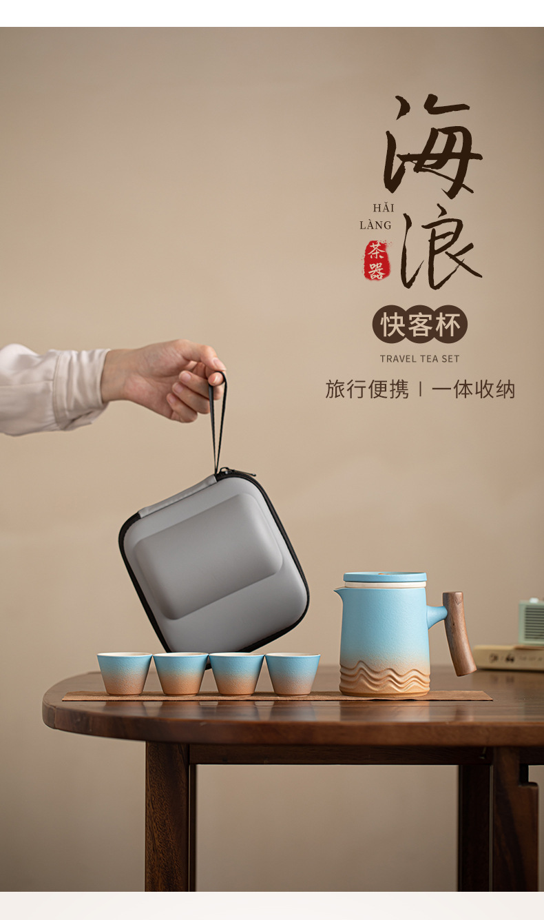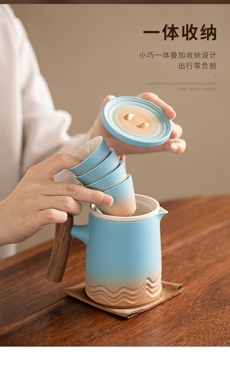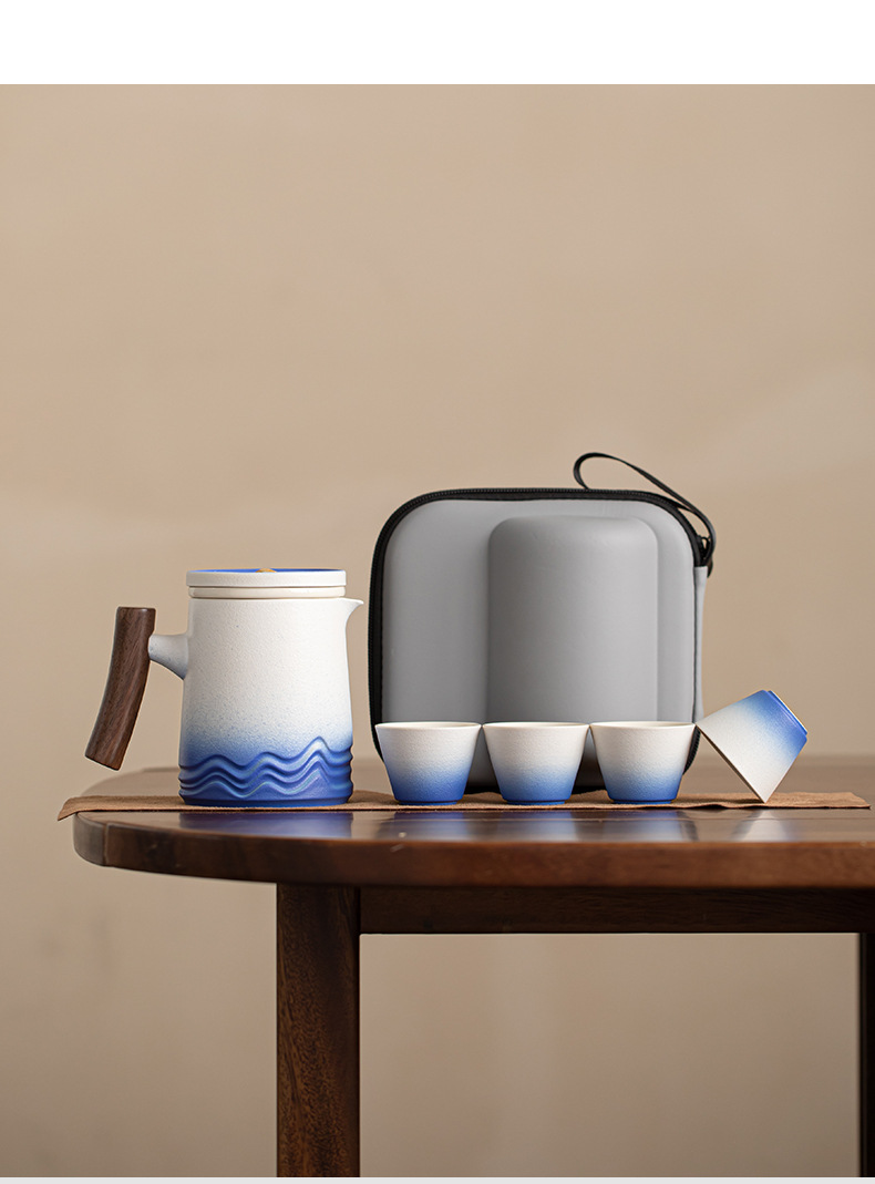- Bộ trà du lịch một bình bốn cốc di động Bộ trà pha trà Kung Fu đơn giản tiện mang theo cắm trại ngoài trời