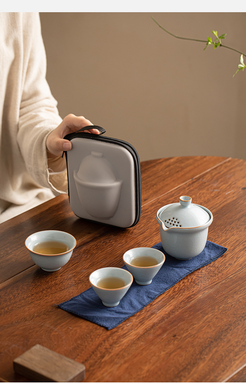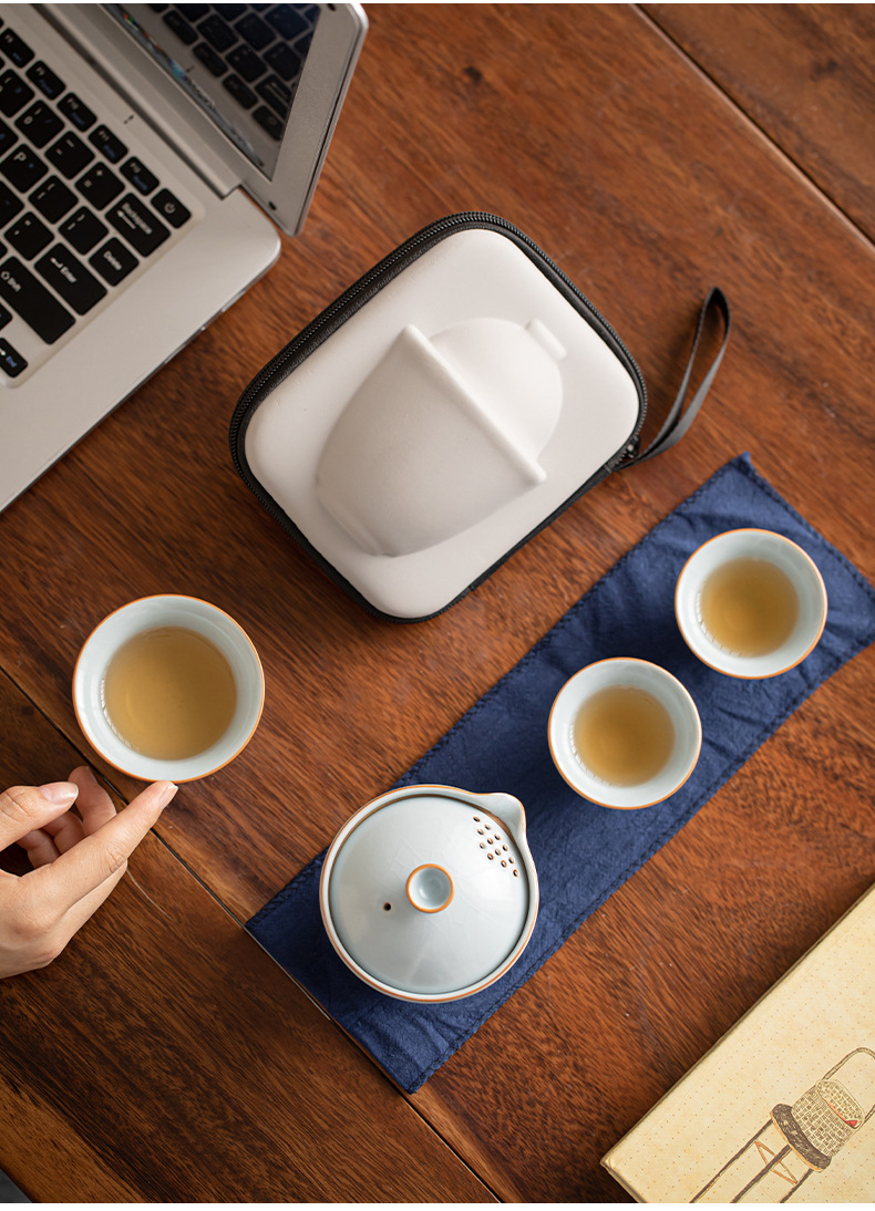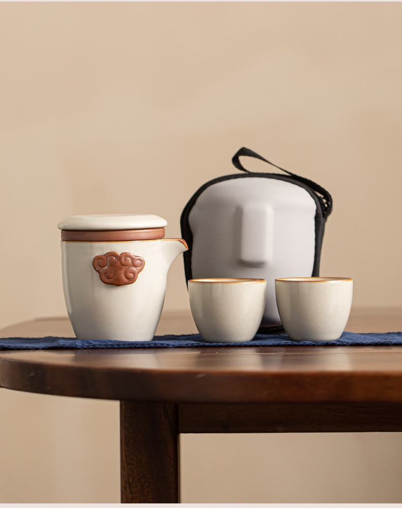 - Bộ trà du lịch Ruyao, cốc khách nhanh, một ấm hai cốc, Bộ trà pha trà lưu trữ ngoài trời nhỏ, Bộ trà Kung Fu cầm tay
