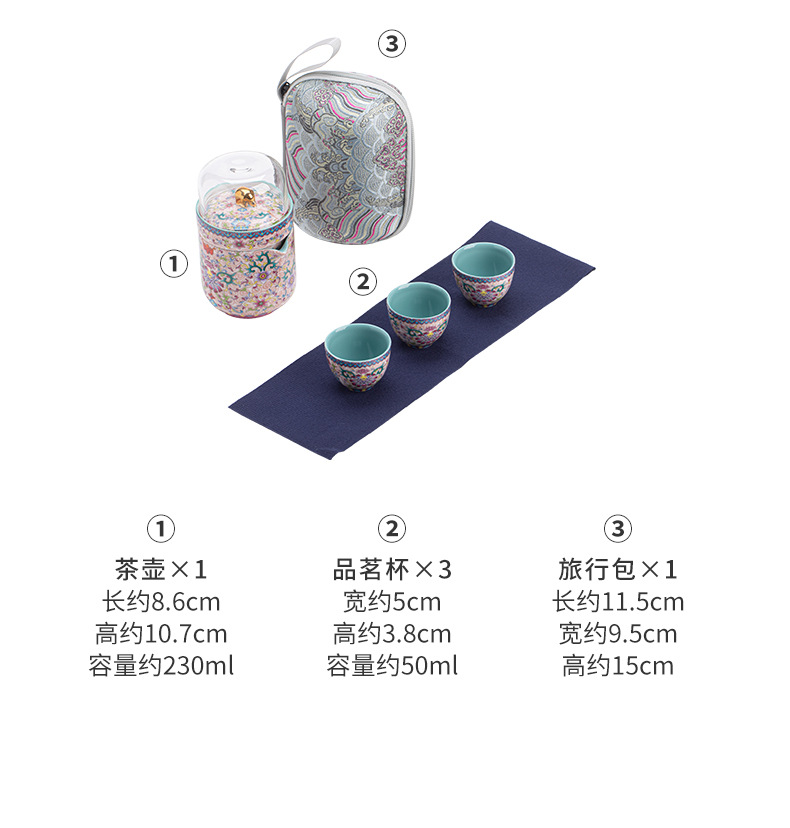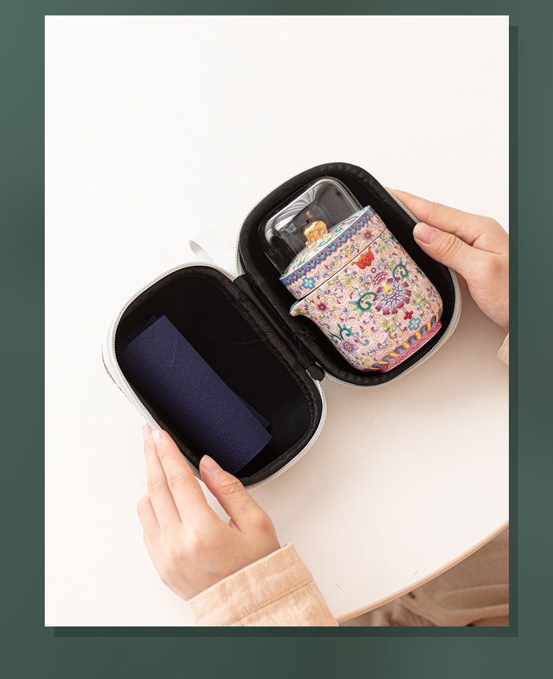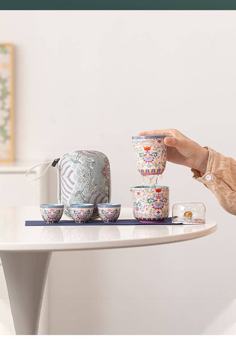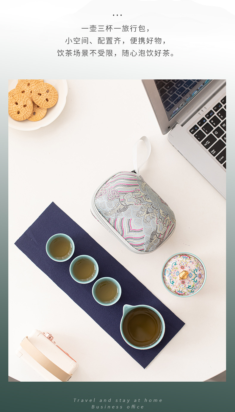 Bộ trà du lịch tráng men phong cách Trung Quốc Bộ trà một ấm ba cốc Bộ quà tặng Bộ pha trà tiện dụng cắm trại