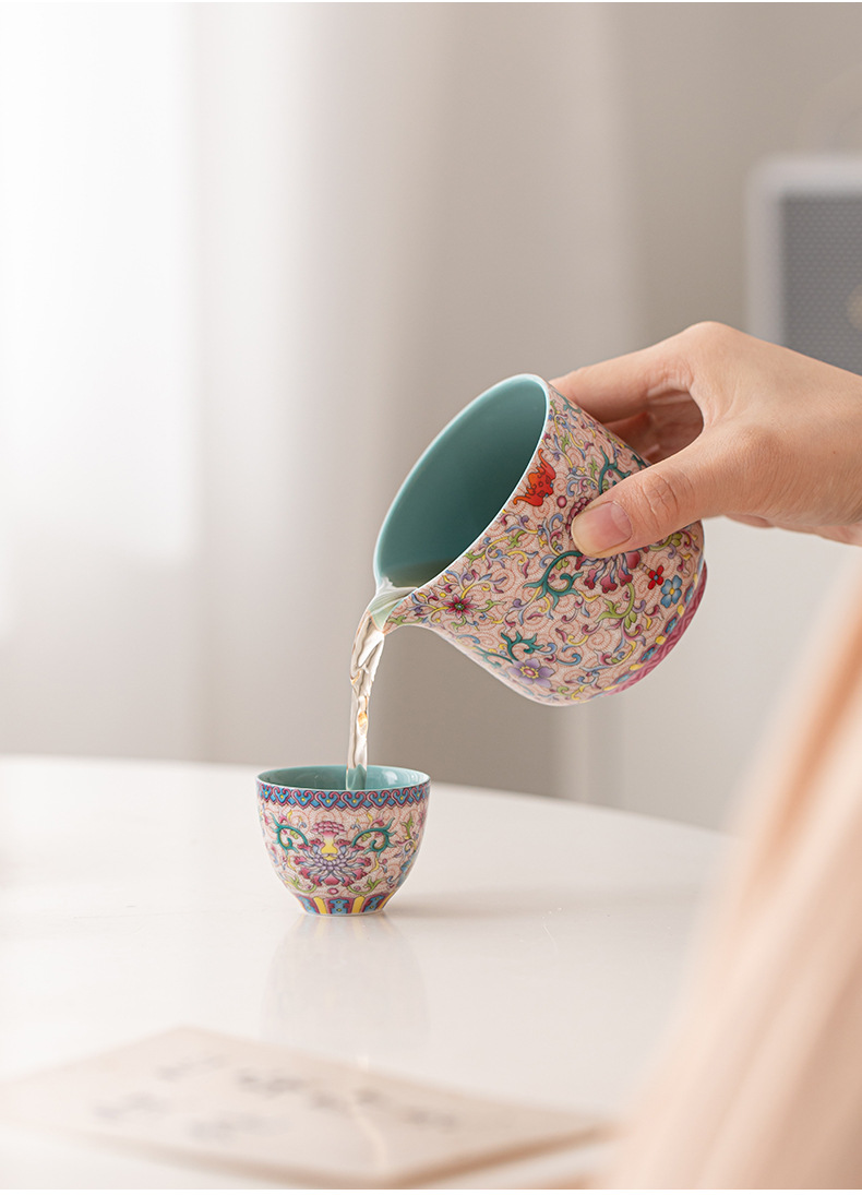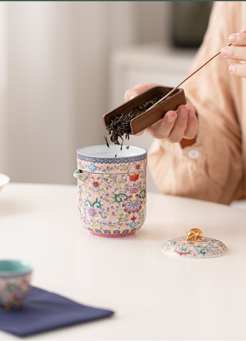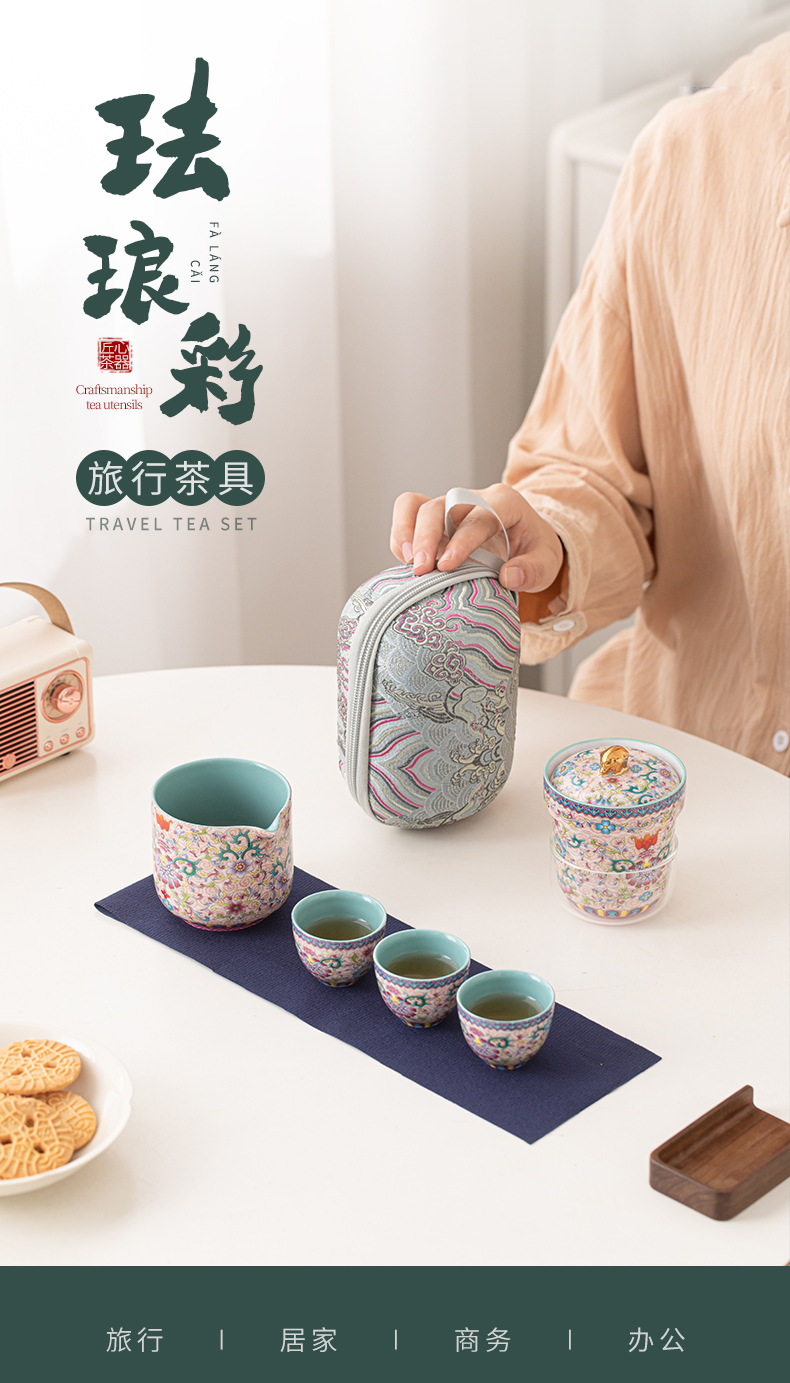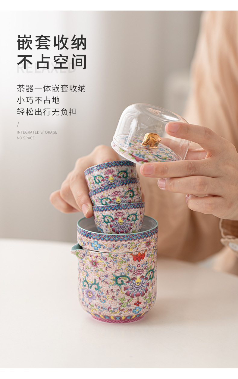 Bộ trà du lịch tráng men phong cách Trung Quốc Bộ trà một ấm ba cốc Bộ quà tặng Bộ pha trà tiện dụng cắm trại