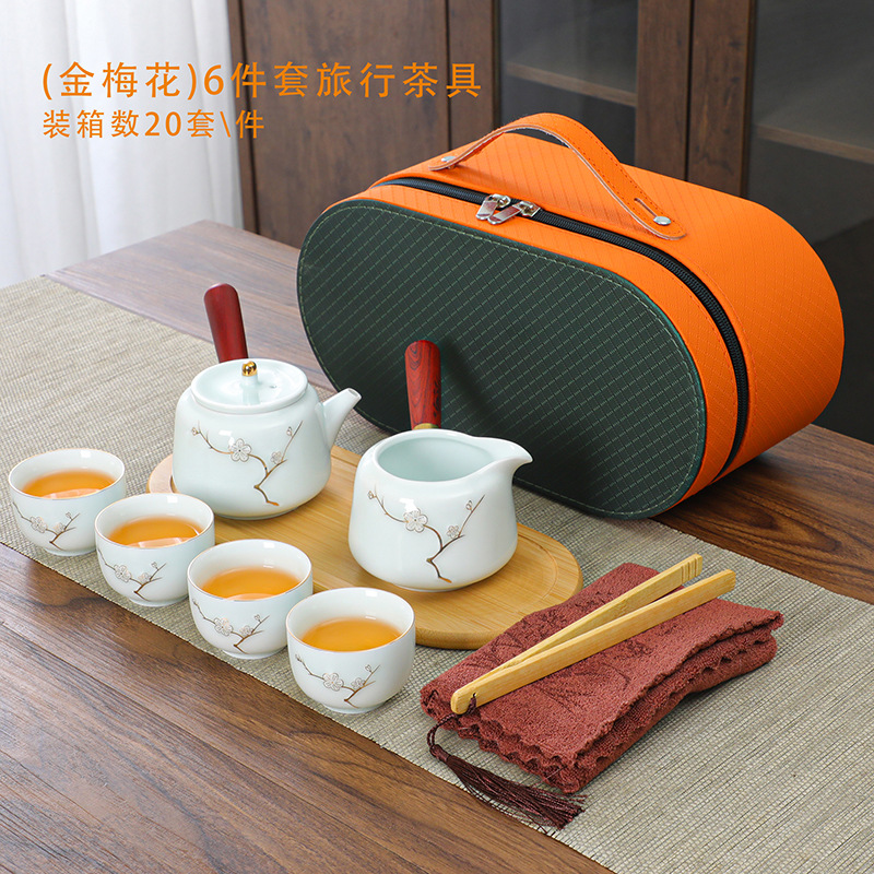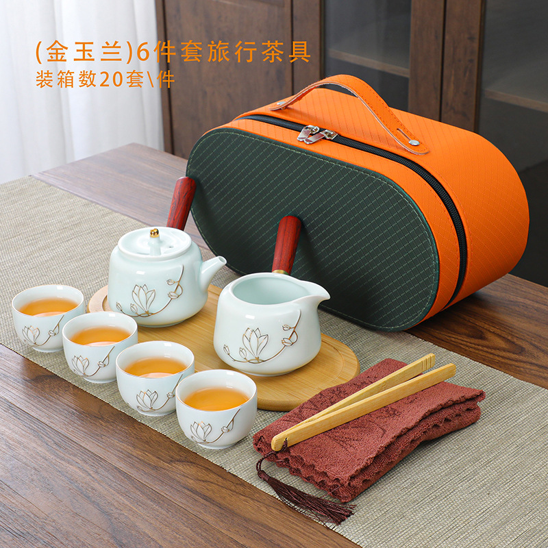 Bộ trà du lịch túi đựng đồ xách tay ngoài trời bát có nắp gốm cốc trà một ấm bốn cốc bộ nhỏ khách nhanh kinh doanh