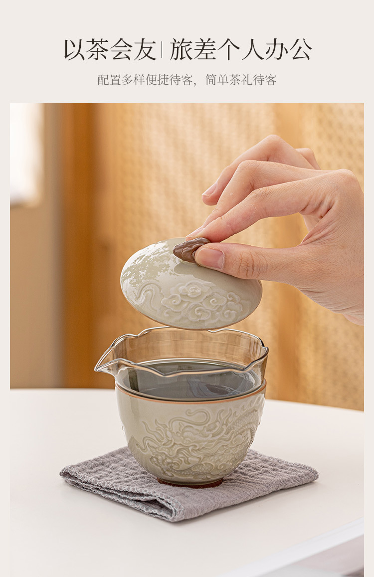 - Bộ trà du lịch Xiangyunlong cốc khách nhanh gốm du lịch ngoài trời di động ấm trà đơn bộ nhỏ tách trà