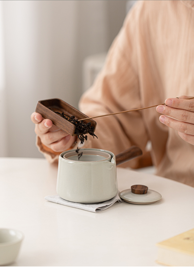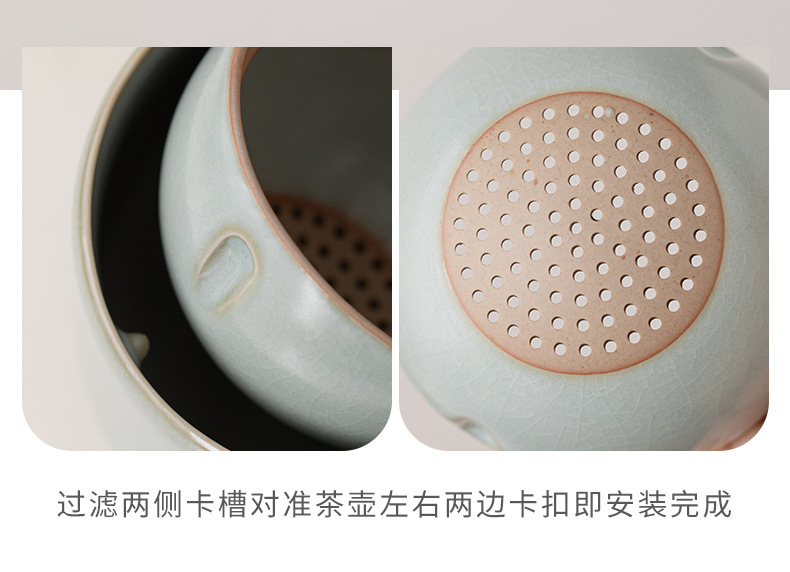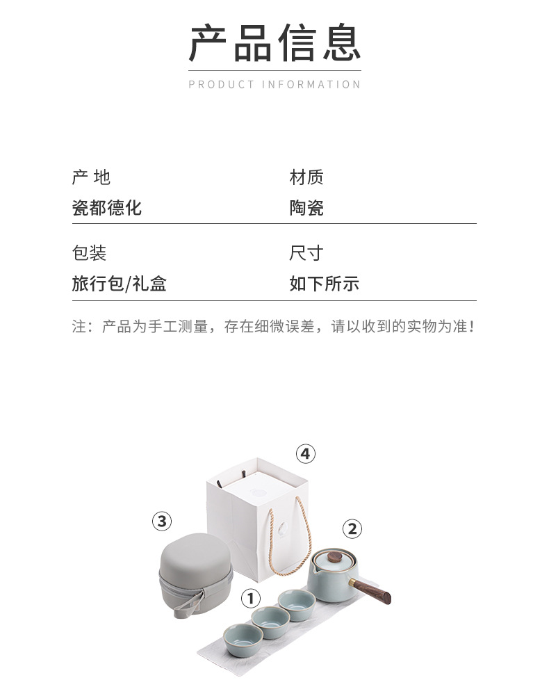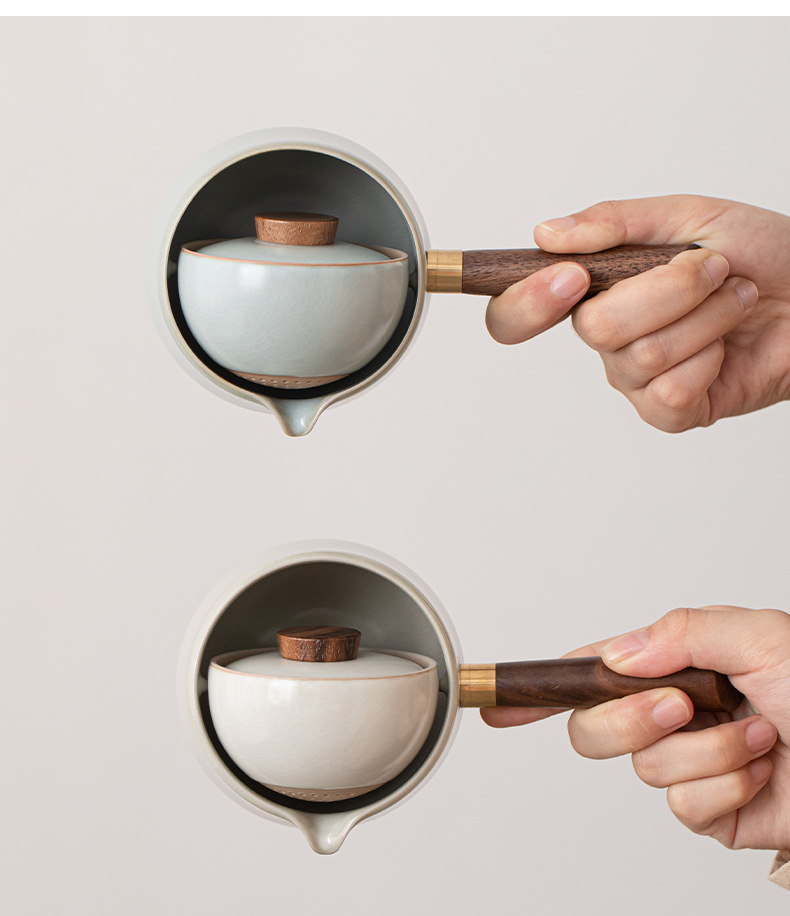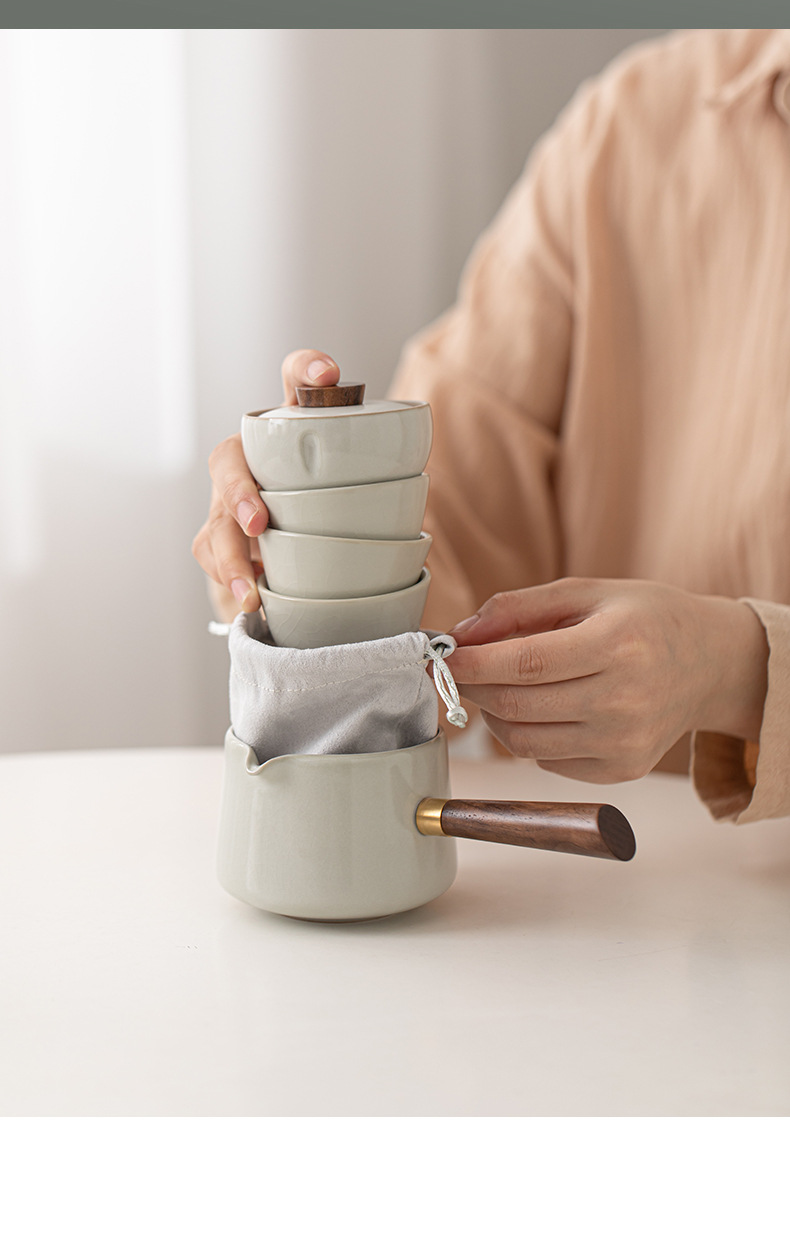 - Bộ trà du lịch Xiaoyao Bộ trà gốm sứ Ru Kiln một ấm ba cốc cốc chở khách di động Bộ trà xe hơi ngoài trời có khay trà