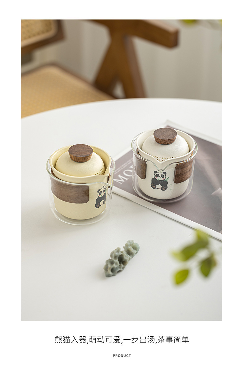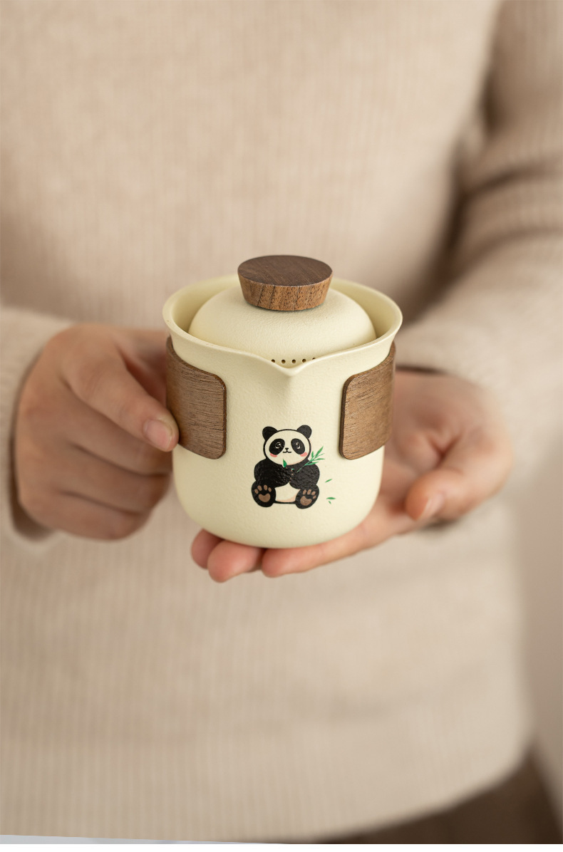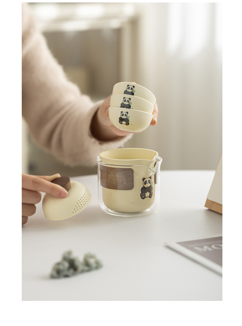 - Bộ trà gấu trúc di động phong cách kem bộ trà du lịch ấm pha trà cốc nhanh thiết bị uống trà cắm trại ngoài trời