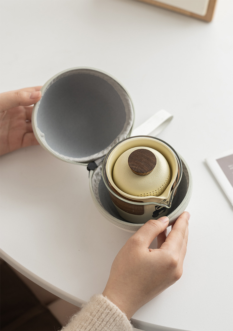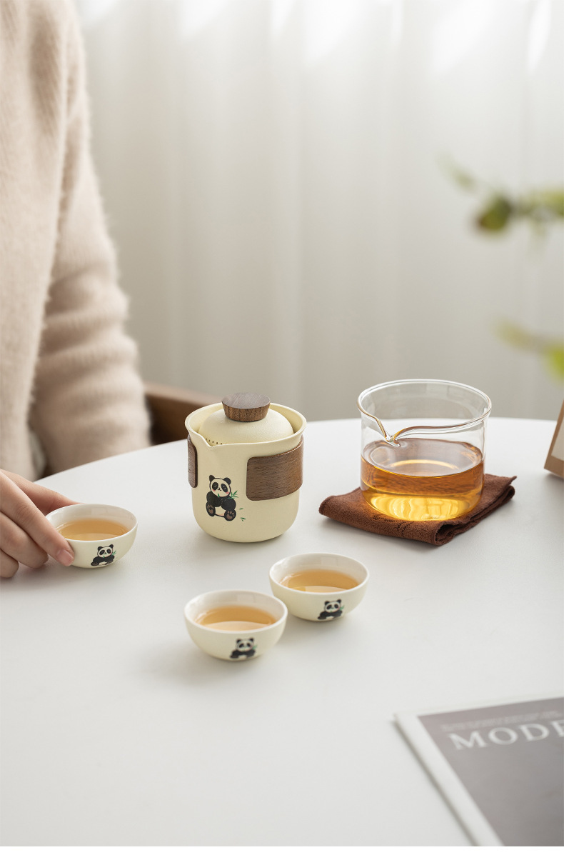 Bộ trà gấu trúc di động phong cách kem bộ trà du lịch ấm pha trà cốc nhanh thiết bị uống trà cắm trại ngoài trời