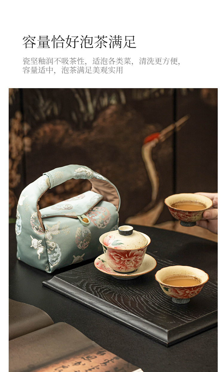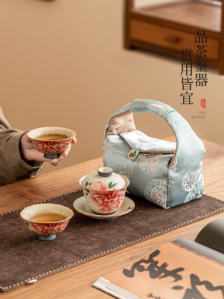 Bộ trà gốm sứ đỏ đá lửa trắng xanh có nắp bát du lịch ngoài trời bộ nhỏ túi đựng đồ xách tay quốc triều cốc khách nhanh
