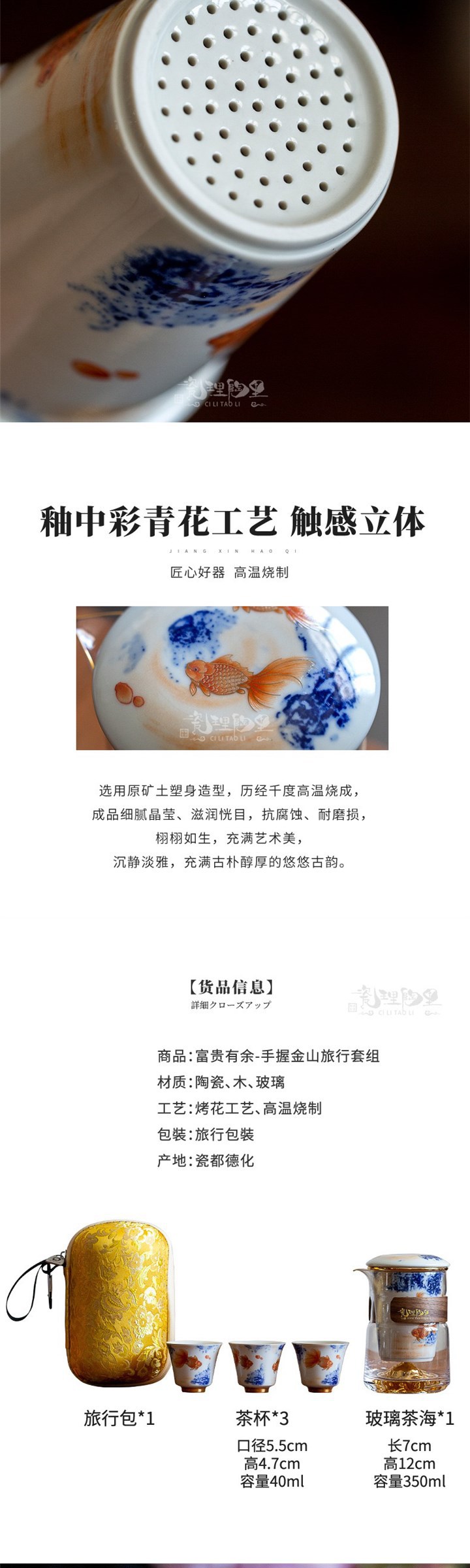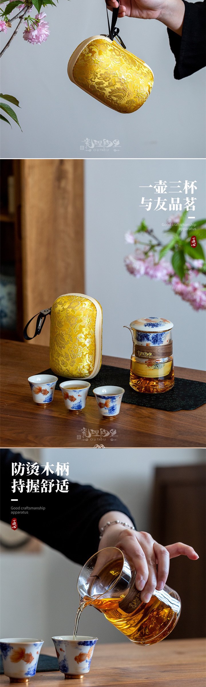 - Bộ trà gốm sứ đồ sứ, bộ trà Kung Fu kiểu Trung Quốc, cốc khách nhanh gia dụng, một ấm ba cốc, túi đựng đồ xách tay du lịch