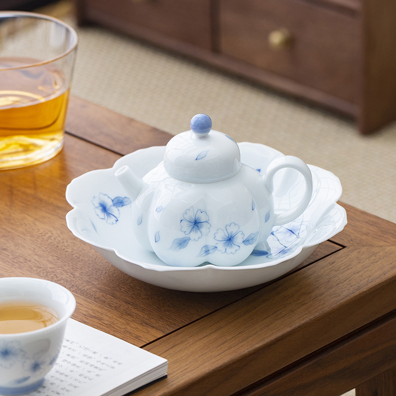 Bộ trà gốm sứ vẽ tay tráng men màu ấm pha trà bộ lọc đồ nhỏ ấm trà Kung Fu bộ ấm trà đơn giản gia dụng