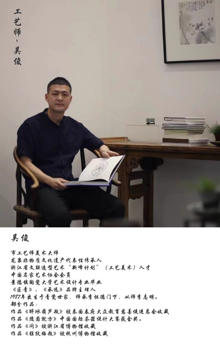 - Bộ trà Kung Fu bằng men ngọc Wu Jun Long Tuyền mẫu mới năm 2025, ấm trà cao cấp hoàn toàn thủ công, ấm đơn, hộp quà