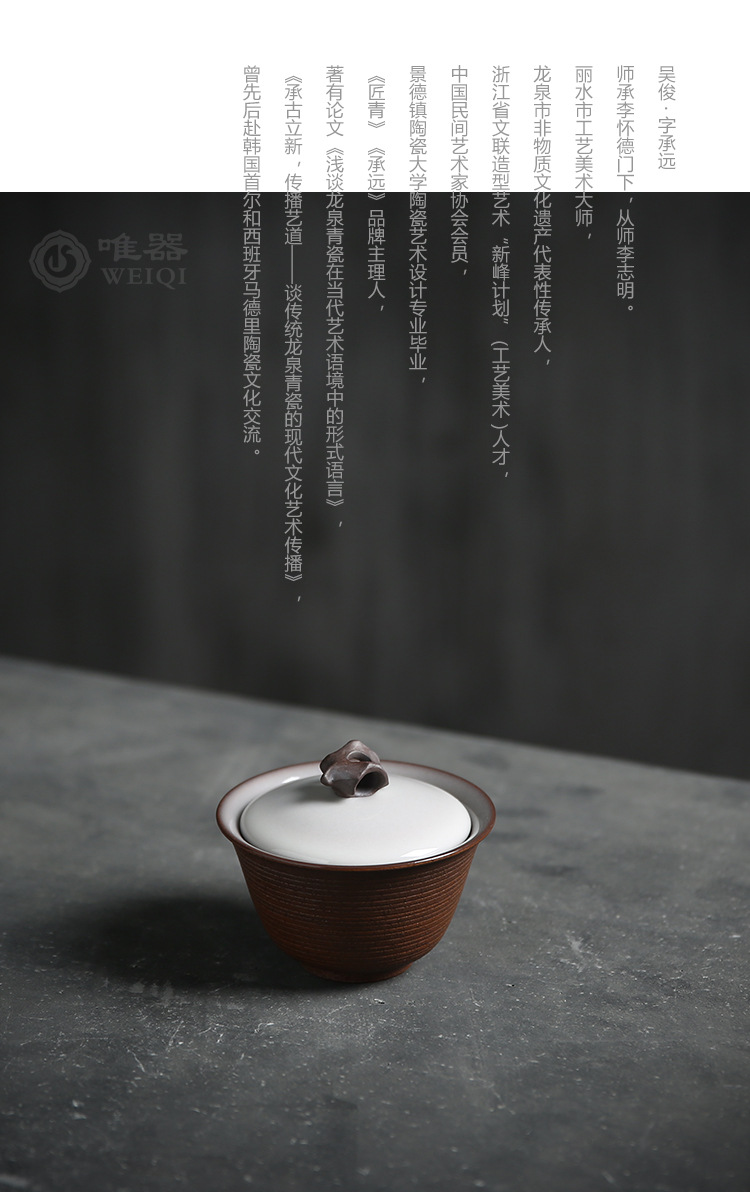 - Bộ trà Kung Fu gốm sứ Wu Junquan làm thủ công Xuan Shi Er Cai có nắp bát đơn gia dụng pha trà đá bát nhỏ