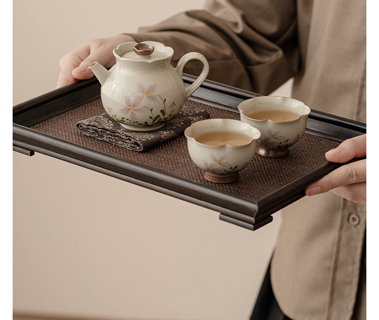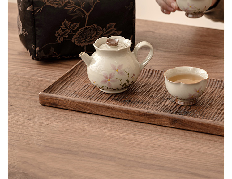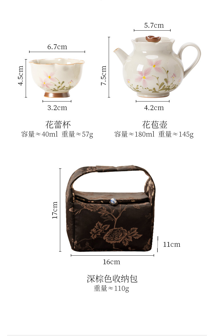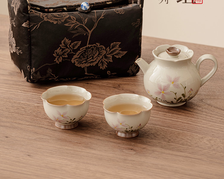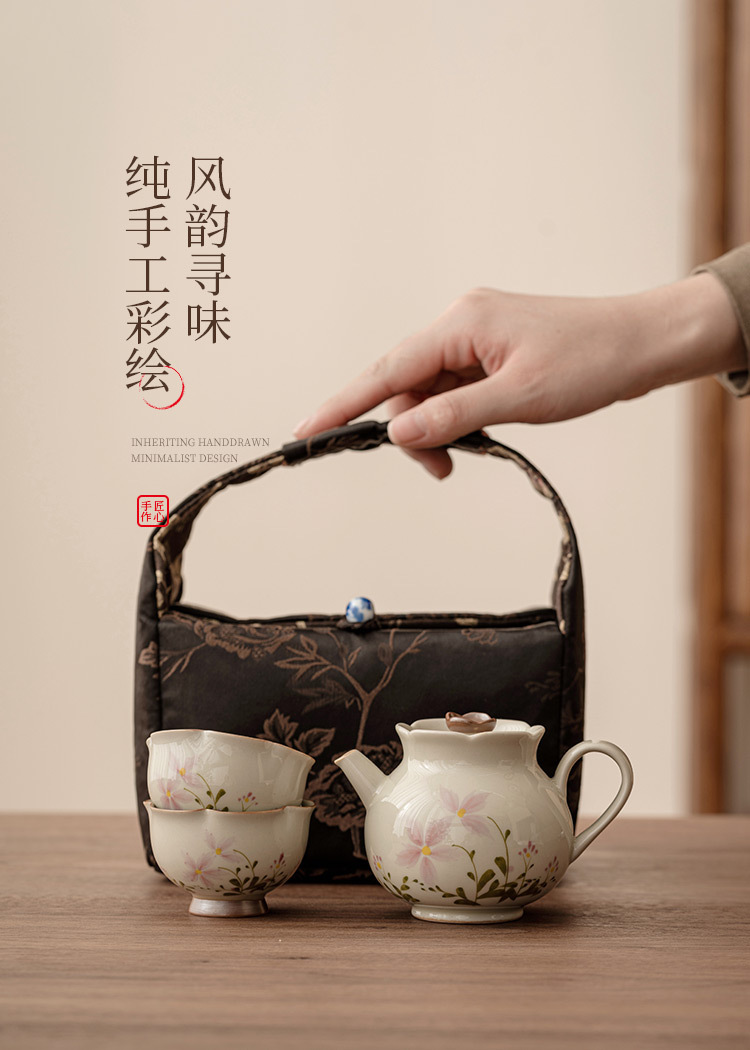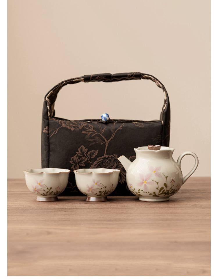 Bộ trà Kung Fu gốm sứ xám hoa cúc nhỏ gia dụng bộ trà du lịch xách tay ngoài trời một bình hai cốc