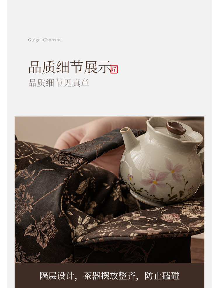 - Bộ trà Kung Fu gốm sứ xám hoa cúc nhỏ gia dụng bộ trà du lịch xách tay ngoài trời một bình hai cốc