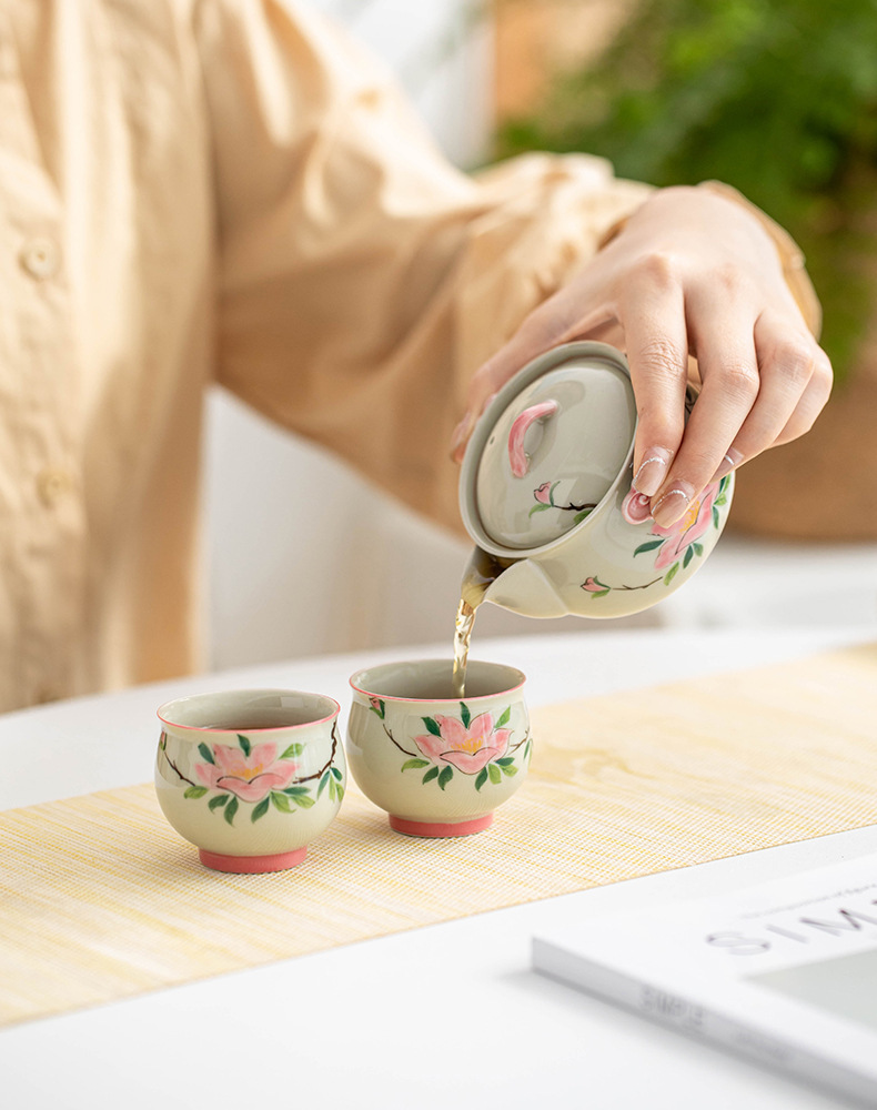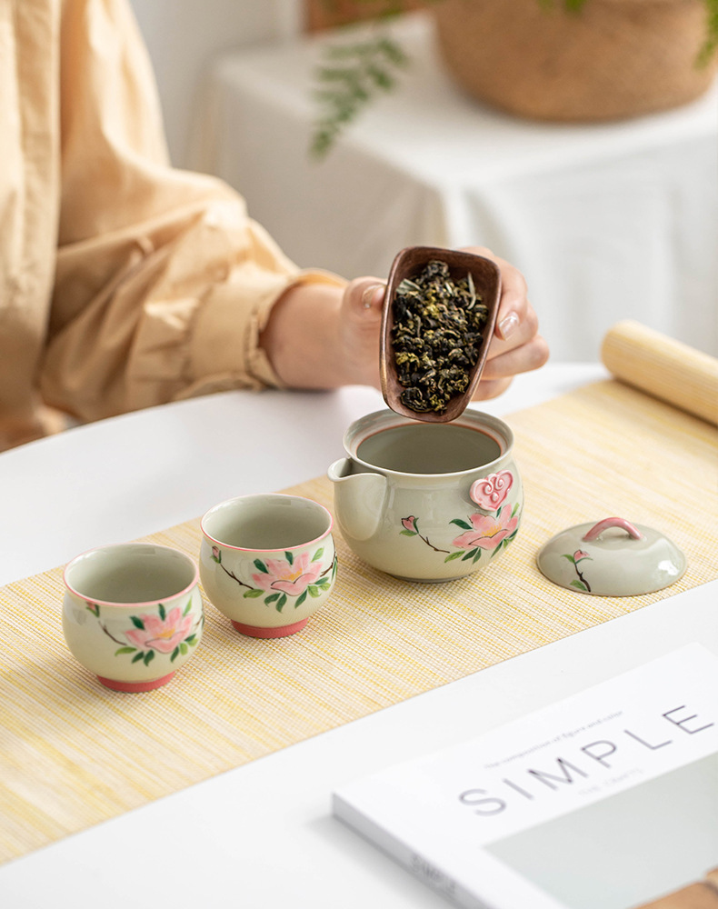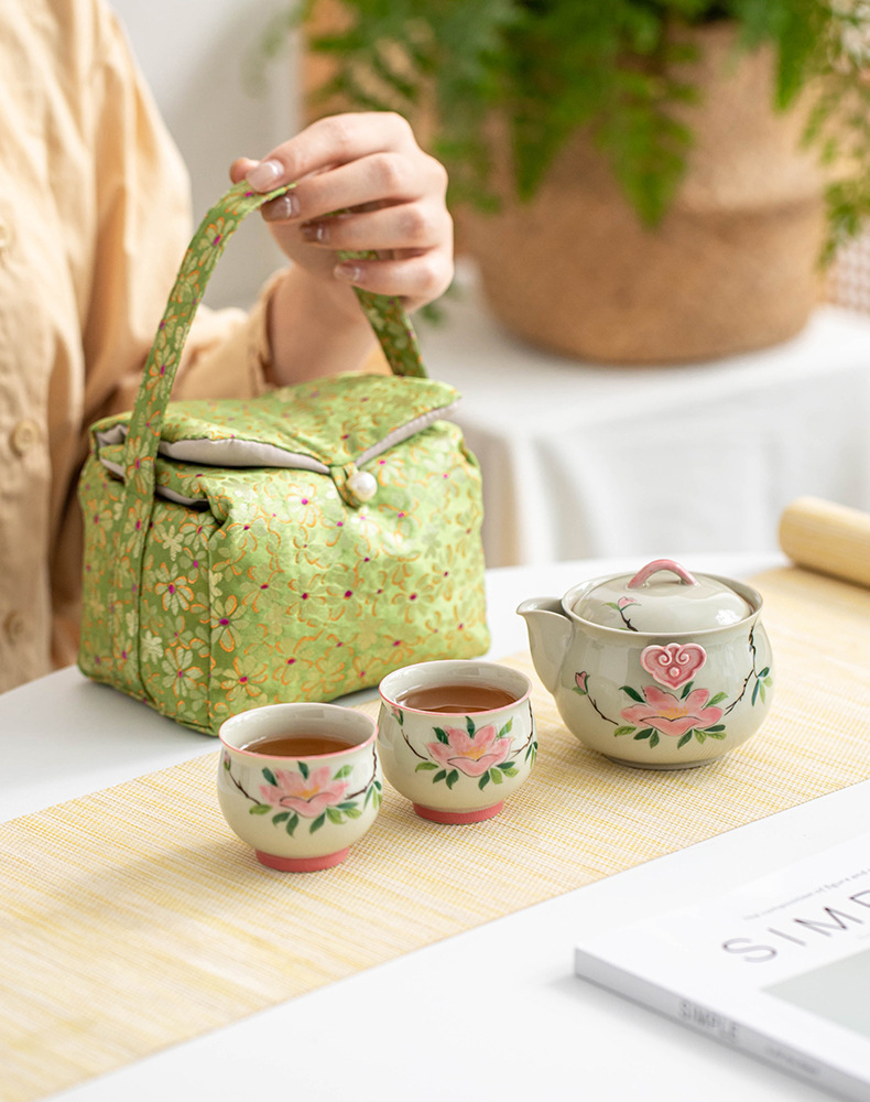 Bộ trà Kung Fu hoa trà vẽ tay túi đựng đồ du lịch ngoài trời cốc khách nhanh tay một bình hai cốc trà gốm sứ ấm trà
