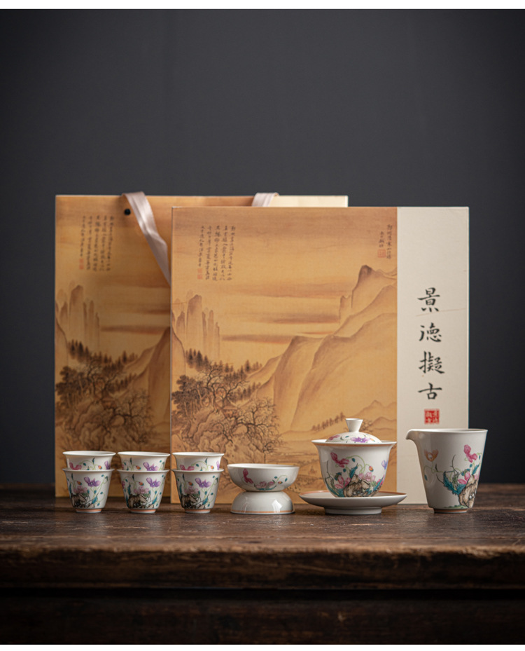 - Bộ trà Kung Fu màu bùn cổ Bộ trà bát có nắp sang trọng nhẹ gia dụng cao cấp Bộ trà Kung Fu hộp quà bán buôn