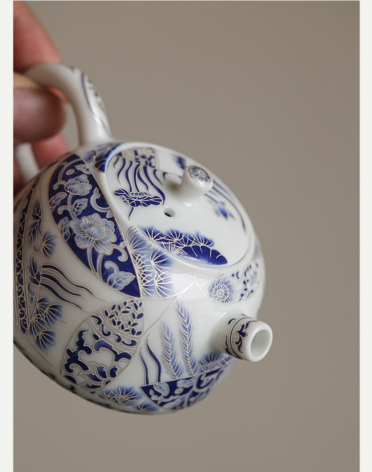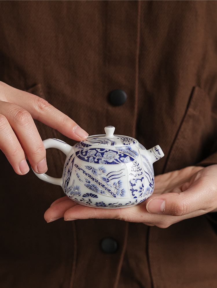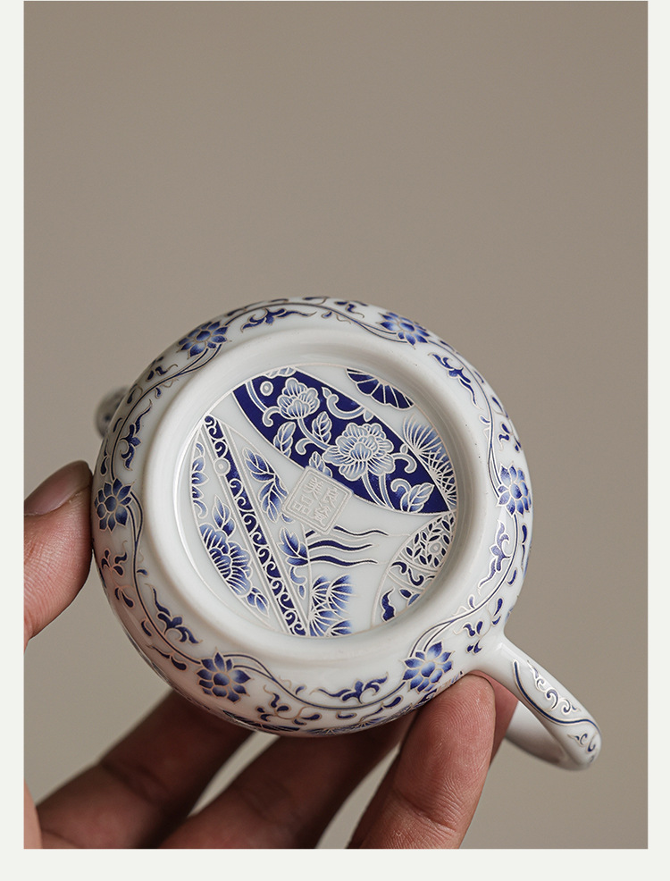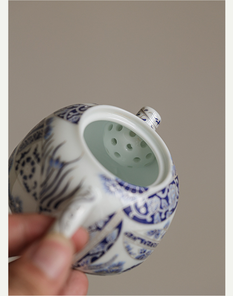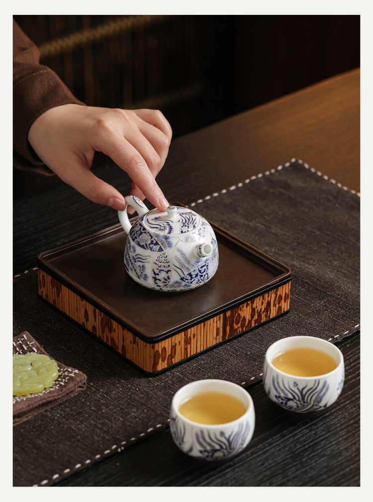 - Bộ trà Kung Fu một ấm hai tách hoa văn tảo cá bạc cloisonné hộp quà gốm sứ quà tặng khách hàng lớn tuổi quà tặng