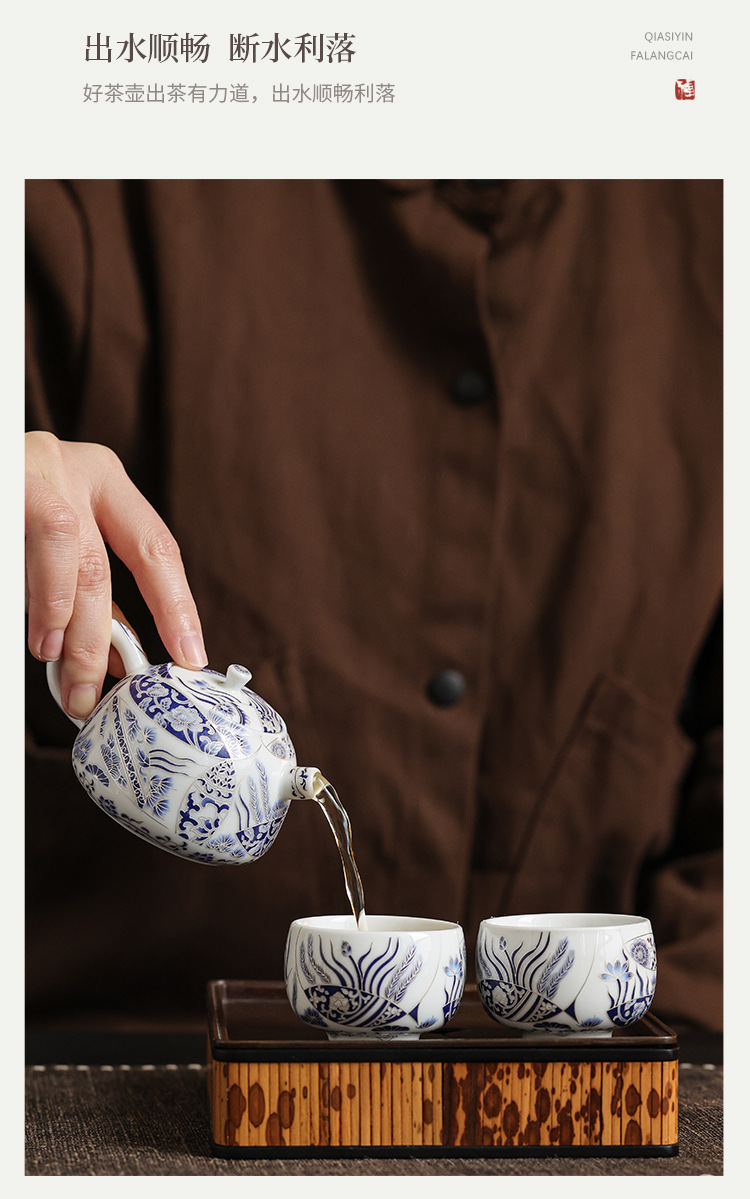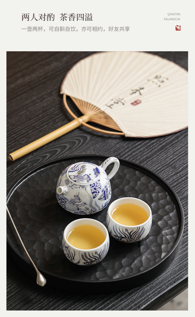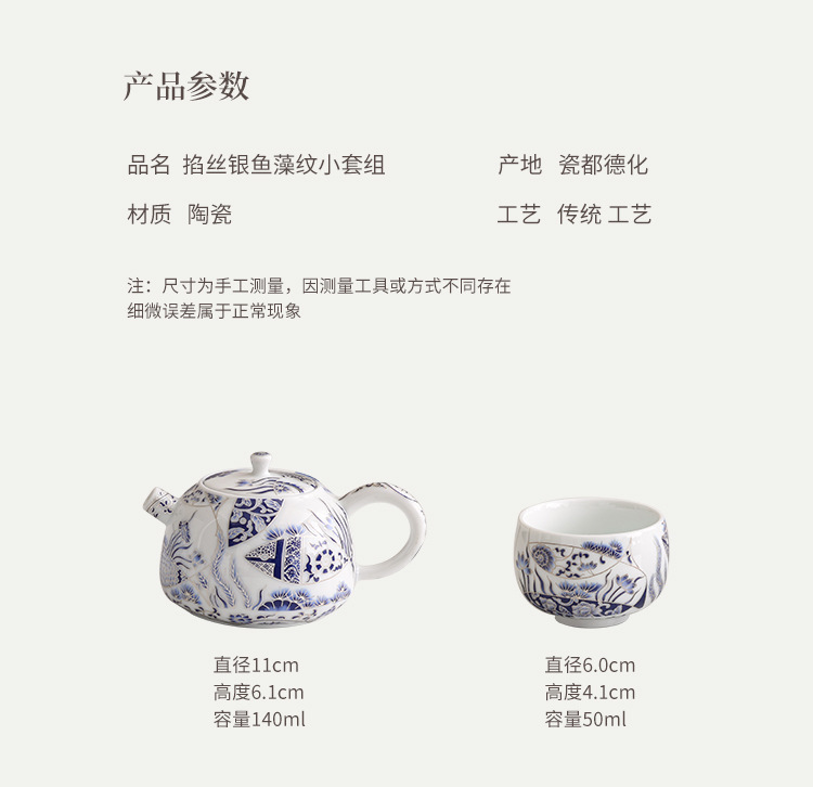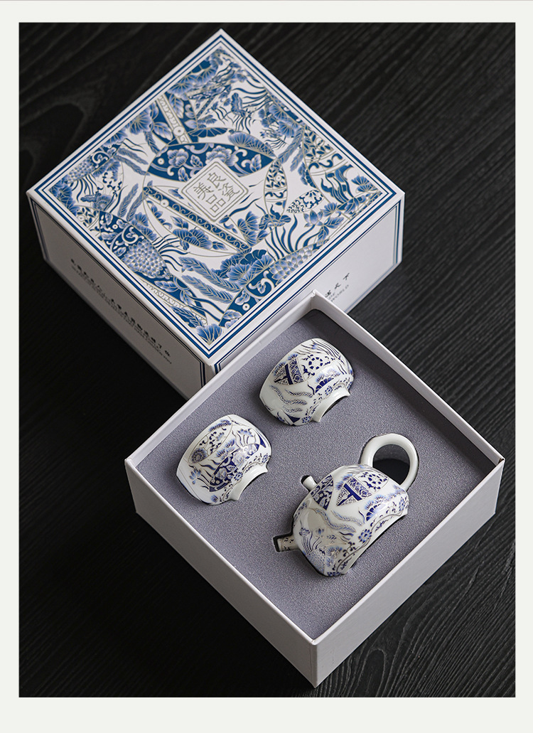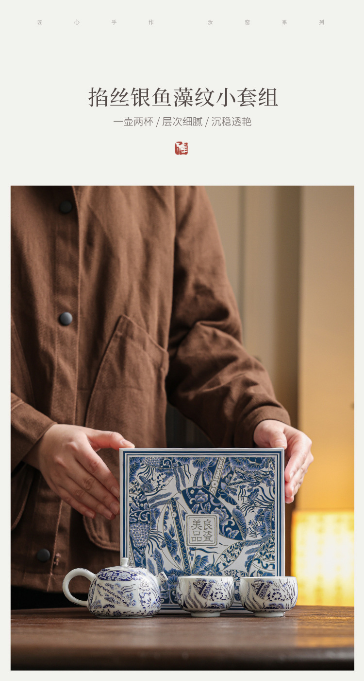 Bộ trà Kung Fu một ấm hai tách hoa văn tảo cá bạc cloisonné hộp quà gốm sứ quà tặng khách hàng lớn tuổi quà tặng