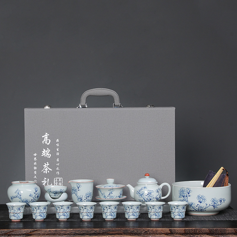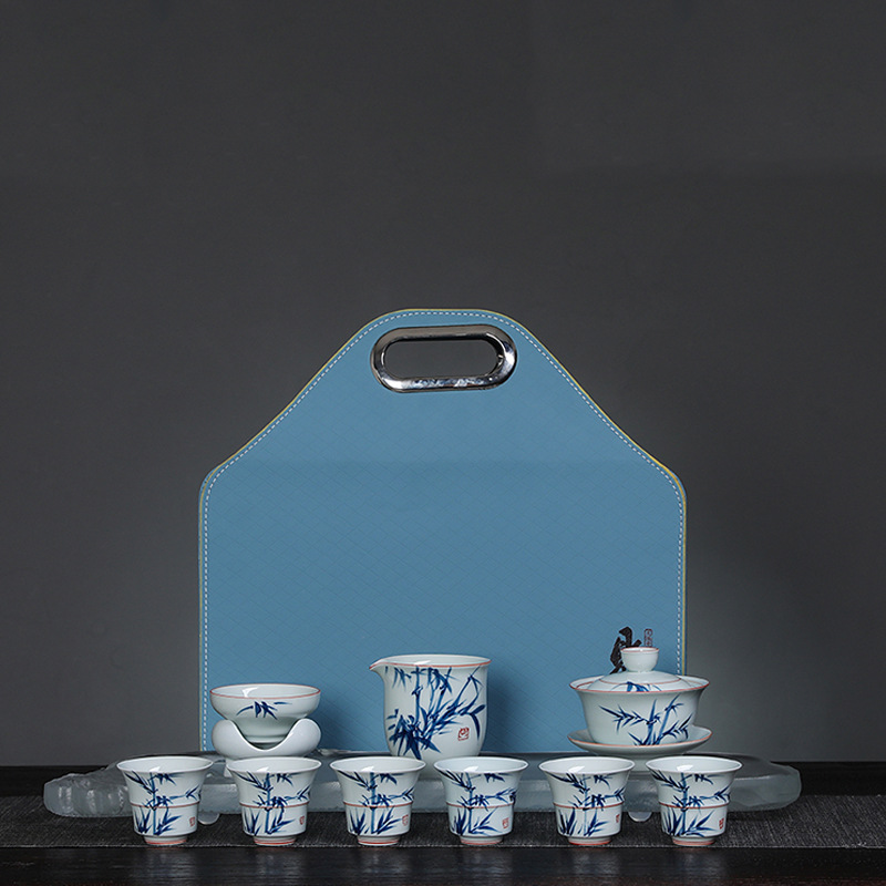 Bộ trà Kung Fu vẽ tay nguyên chất bằng tre men ngọc cổ