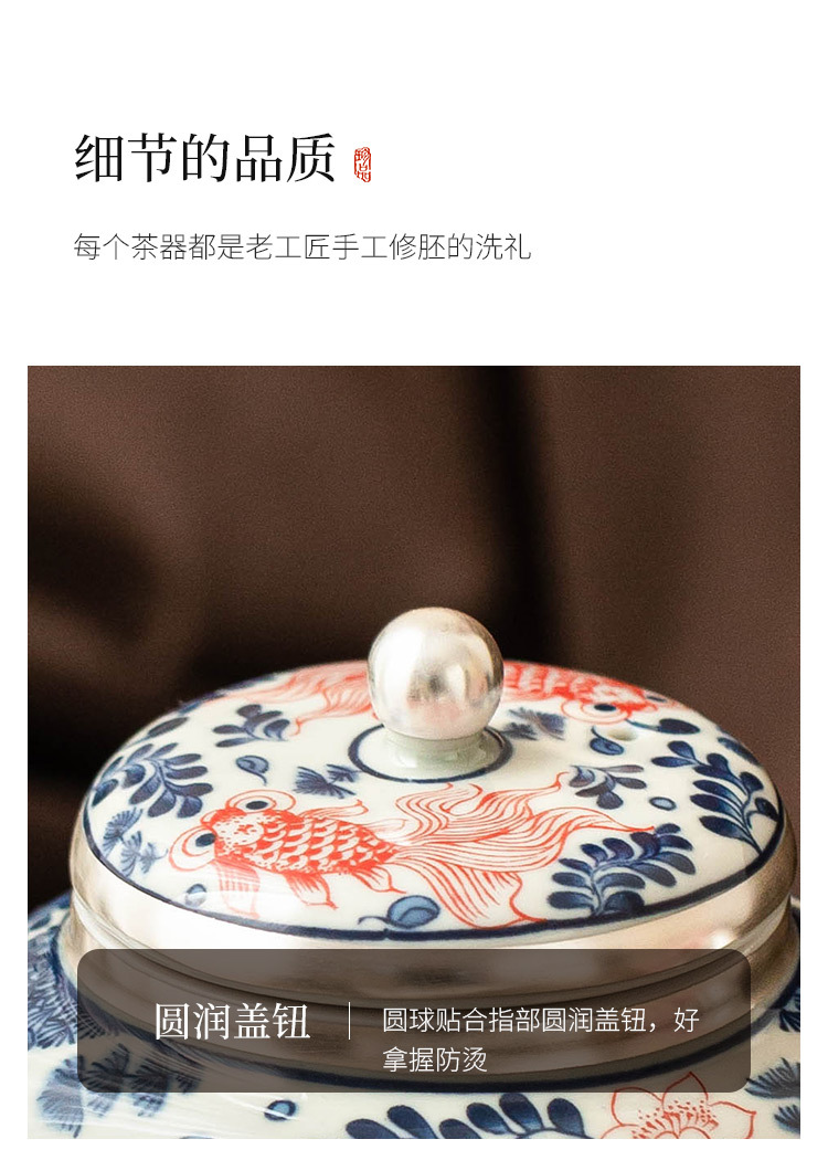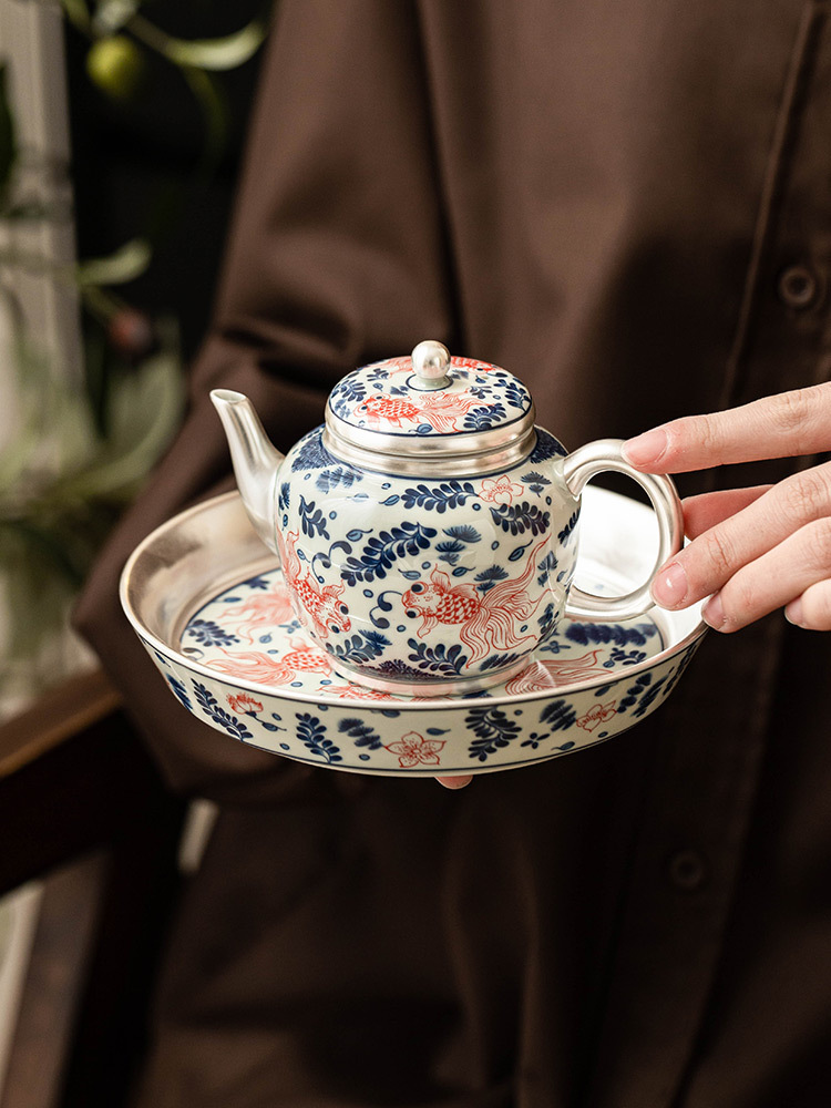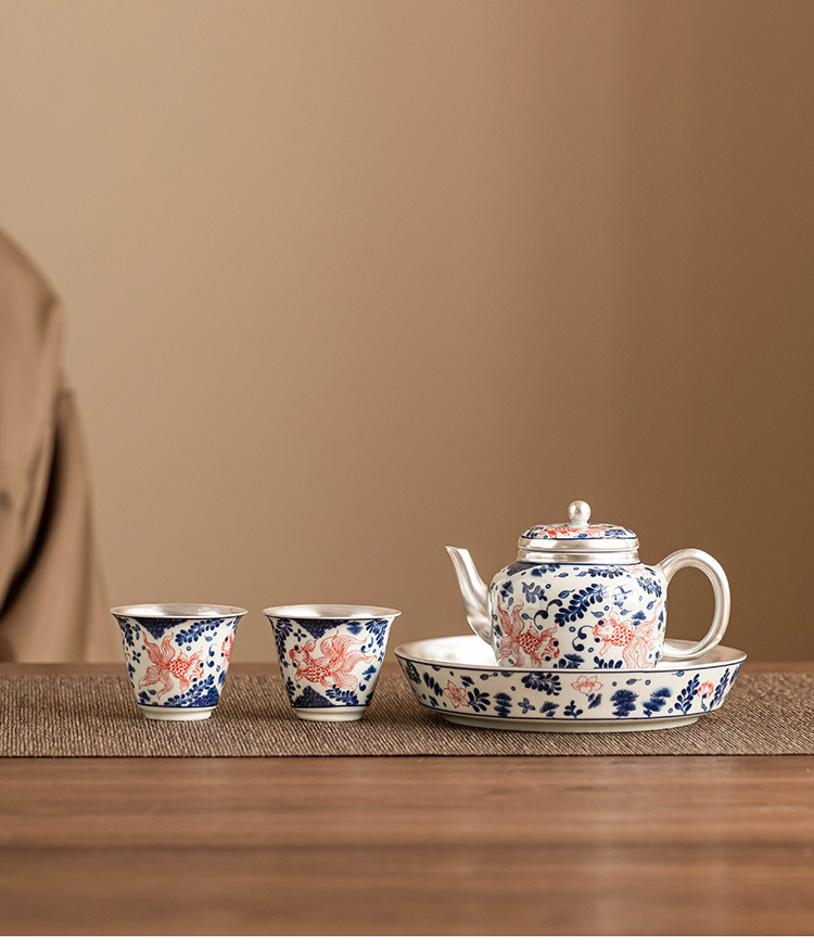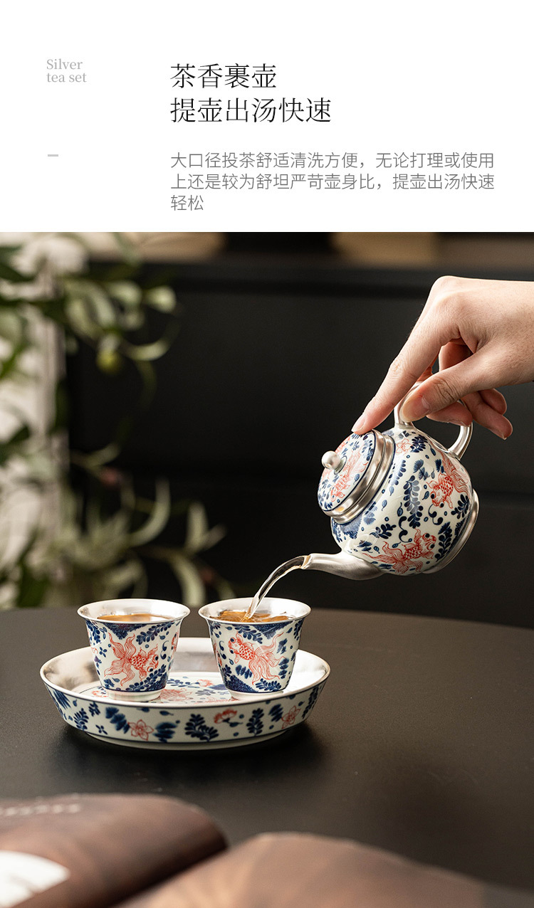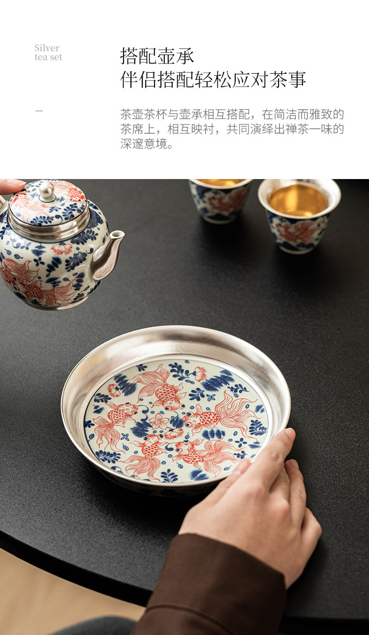 Bộ trà mạ bạc cá vàng chơi nước 999 hộp quà cao cấp một ấm hai chén ấm trà khay trà uống trà dụng cụ pha trà