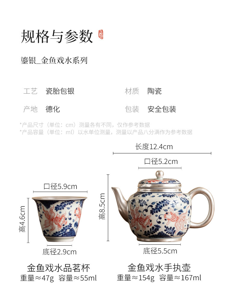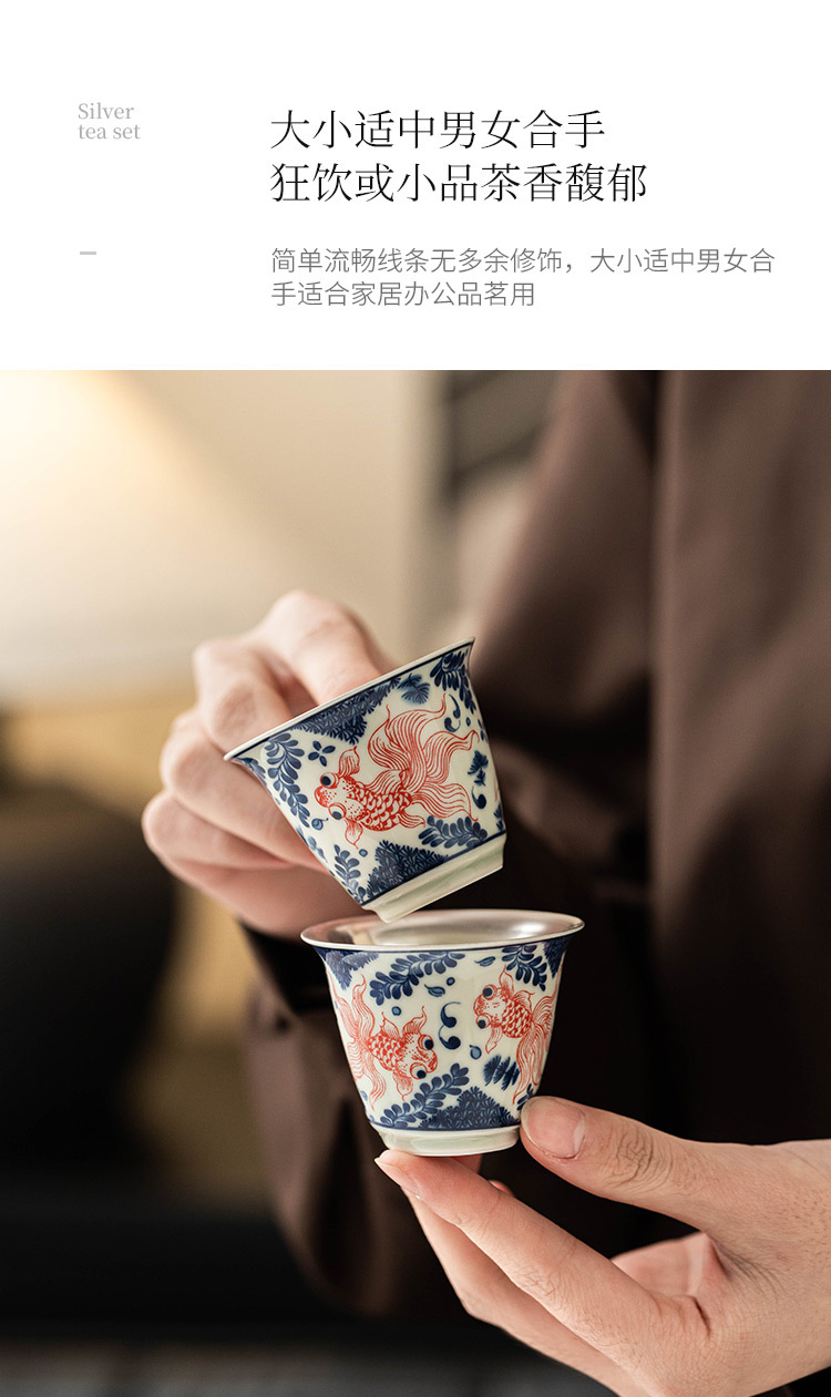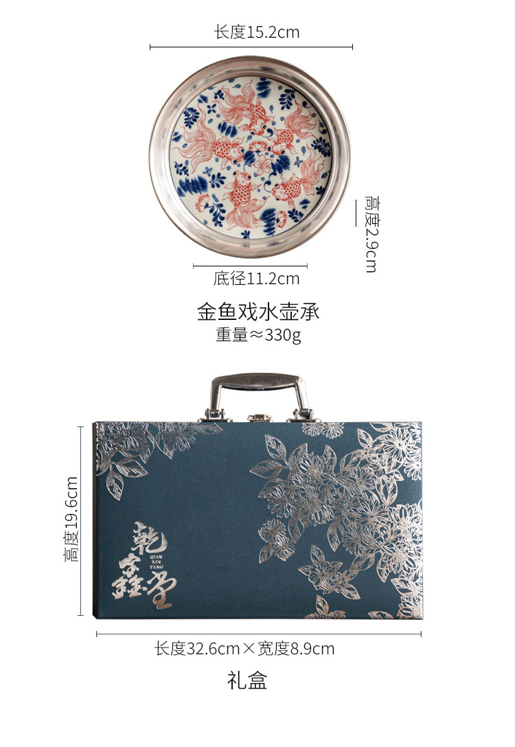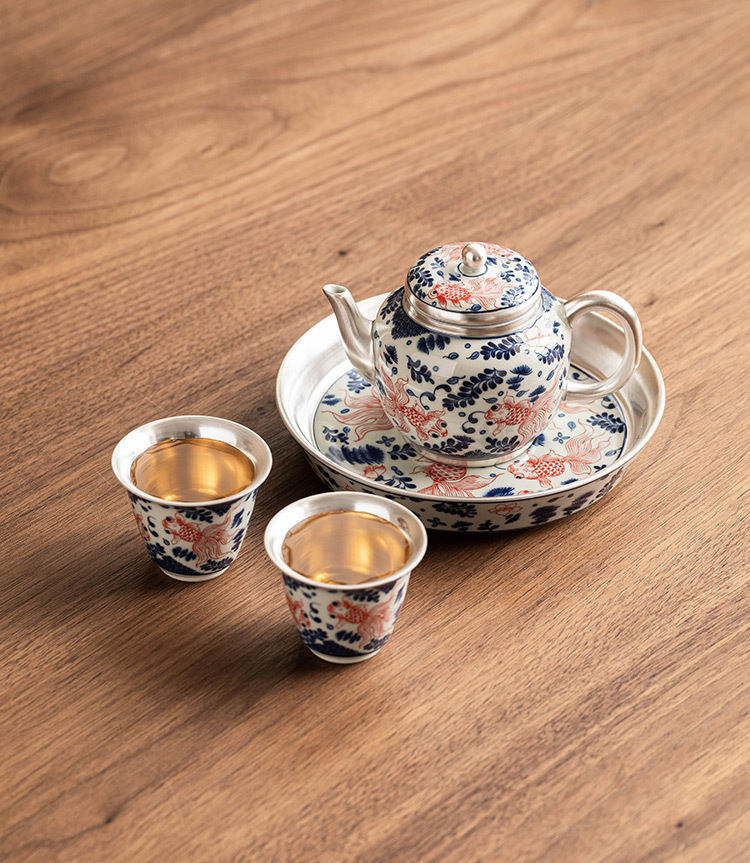 - Bộ trà mạ bạc cá vàng chơi nước 999 hộp quà cao cấp một ấm hai chén ấm trà khay trà uống trà dụng cụ pha trà