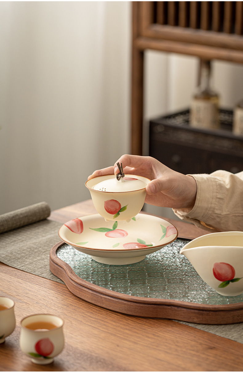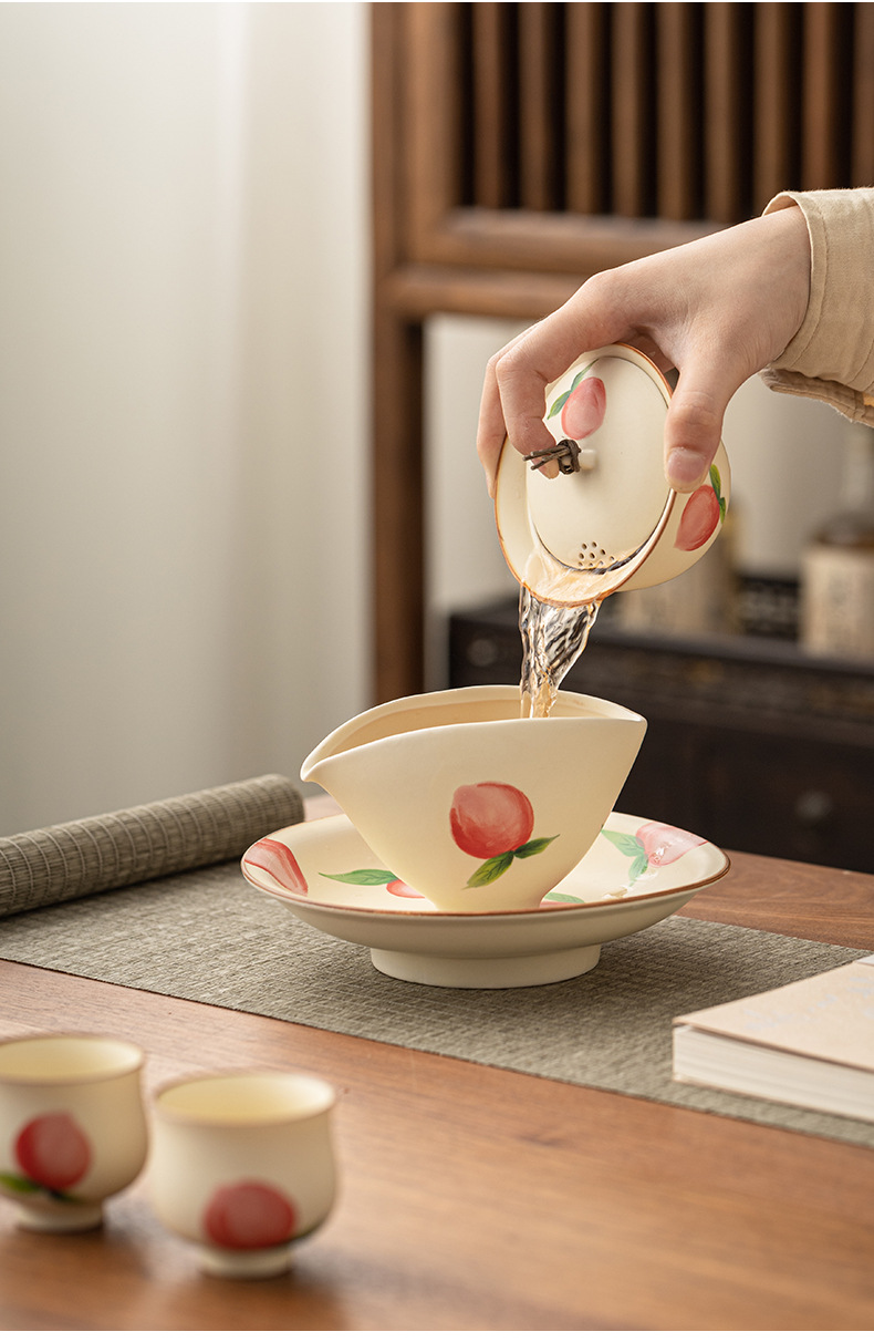 Bộ trà màu vàng kem đào vẽ tay dụng cụ trà Kung Fu sáng tạo gốm sứ gia dụng dễ thương bát trà cốc trà