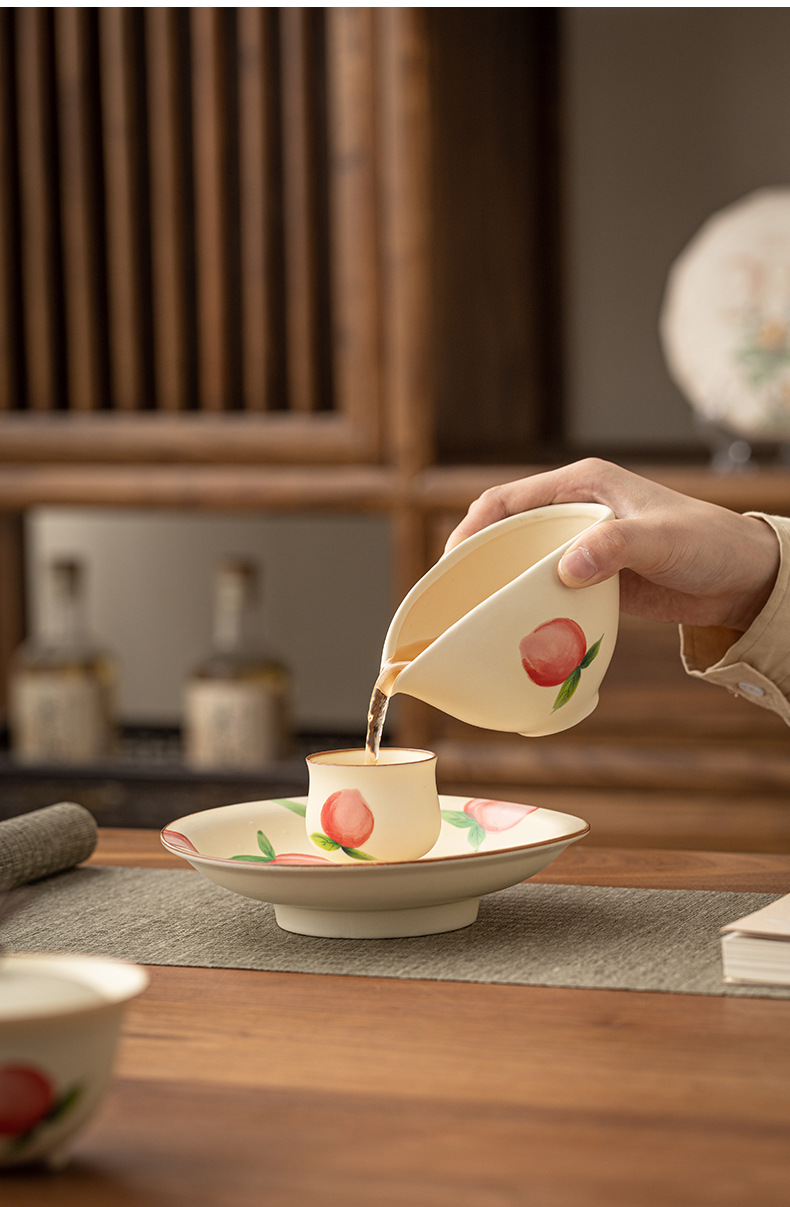 - Bộ trà màu vàng kem đào vẽ tay dụng cụ trà Kung Fu sáng tạo gốm sứ gia dụng dễ thương bát trà cốc trà