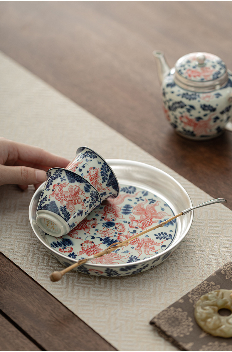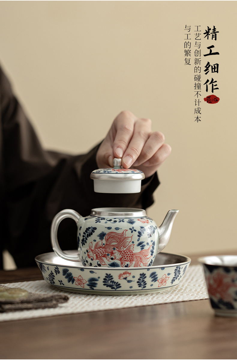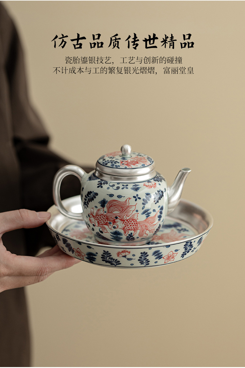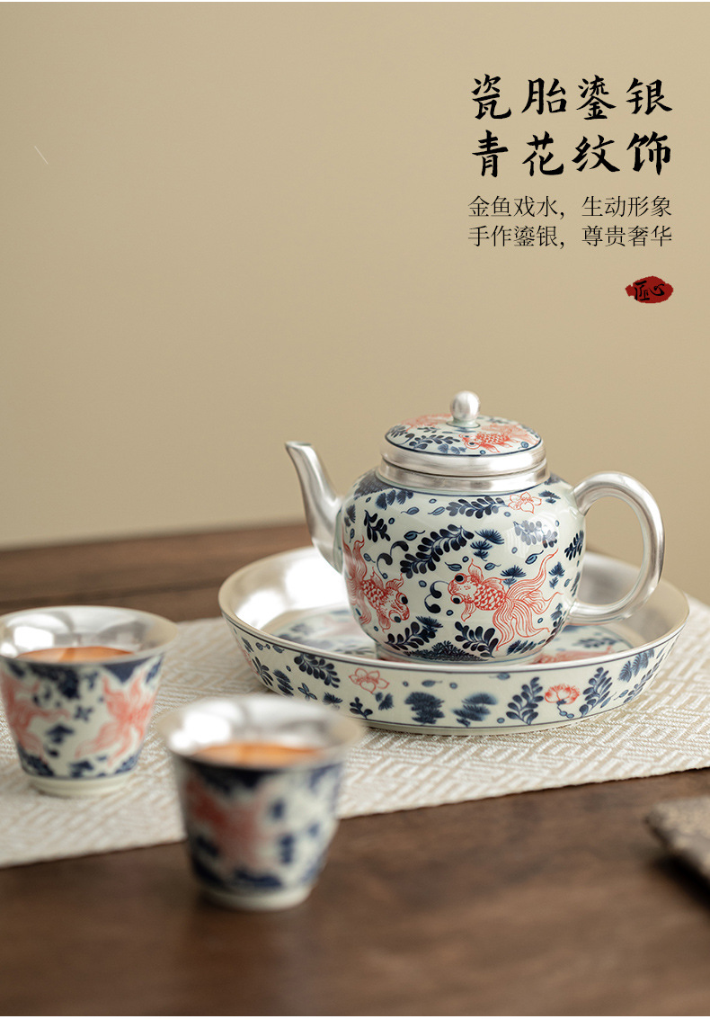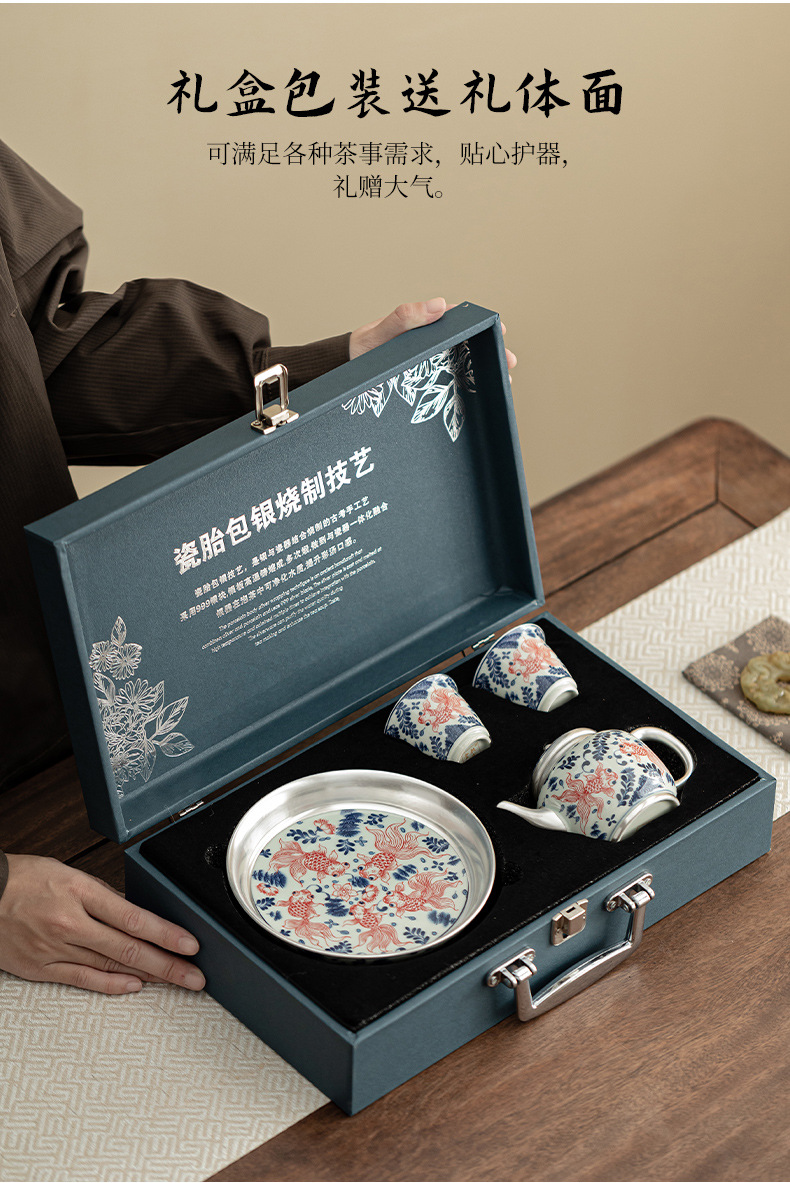 - Bộ trà một ấm hai tách cá bạc chơi trong nước Bộ trà gốm sứ gia dụng Trung Quốc tặng quà doanh nghiệp cho người lớn tuổi
