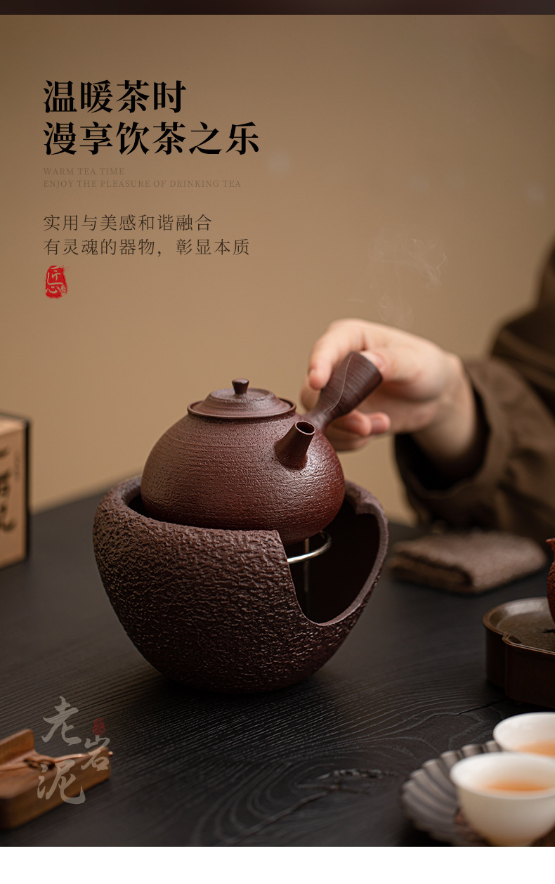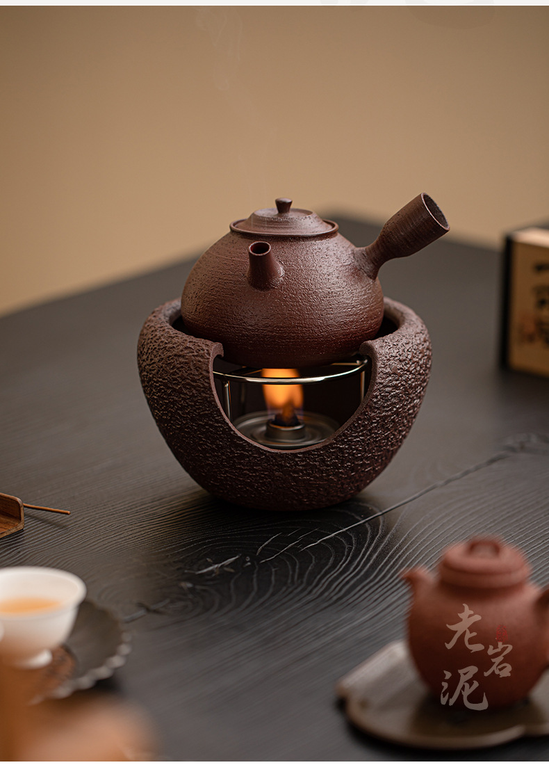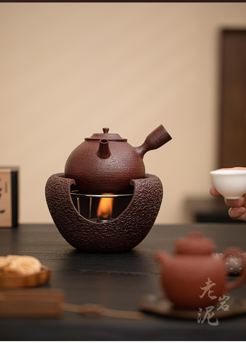 - Bộ trà nồi nấu rượu màu đỏ nâu bùn đá cũ Bộ trà ấm ấm áp ấm trà Kung Fu