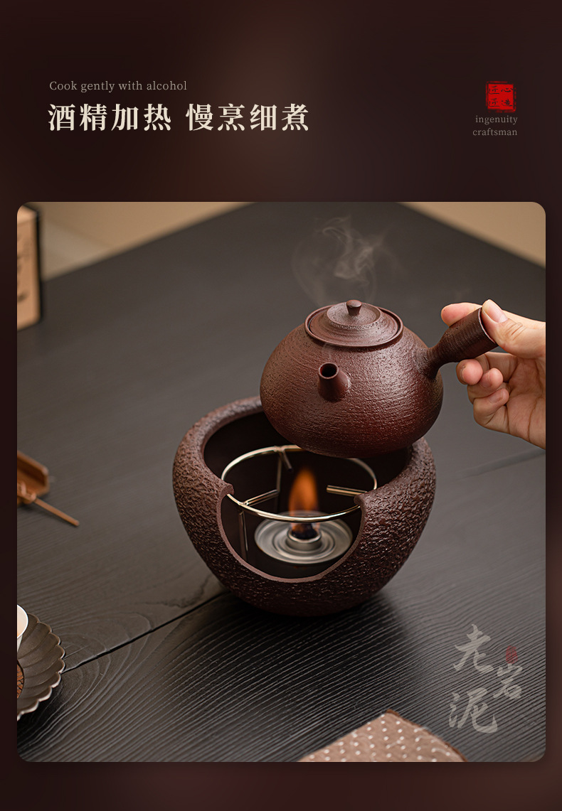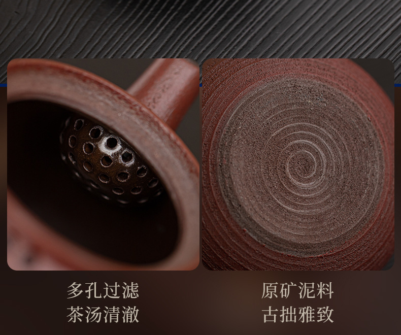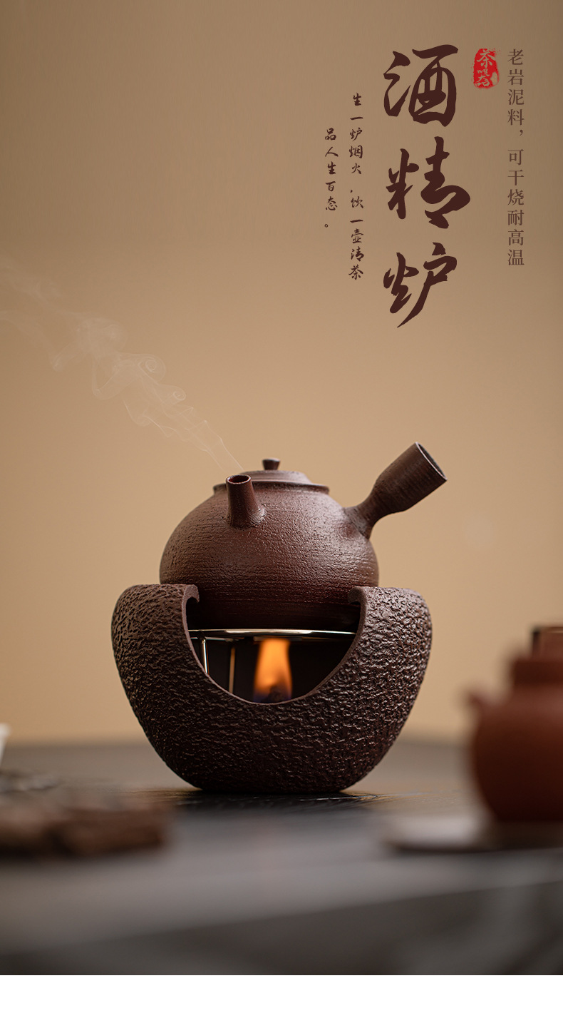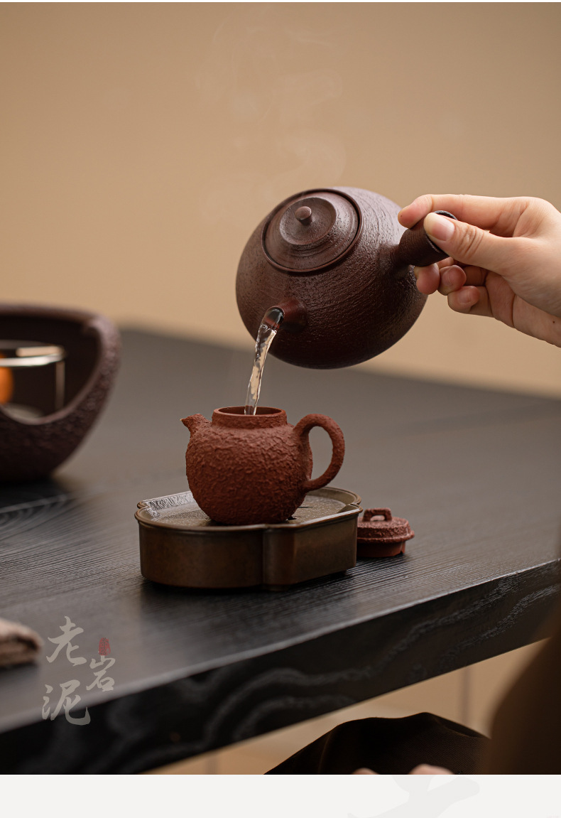 - Bộ trà nồi nấu rượu màu đỏ nâu bùn đá cũ Bộ trà ấm ấm áp ấm trà Kung Fu